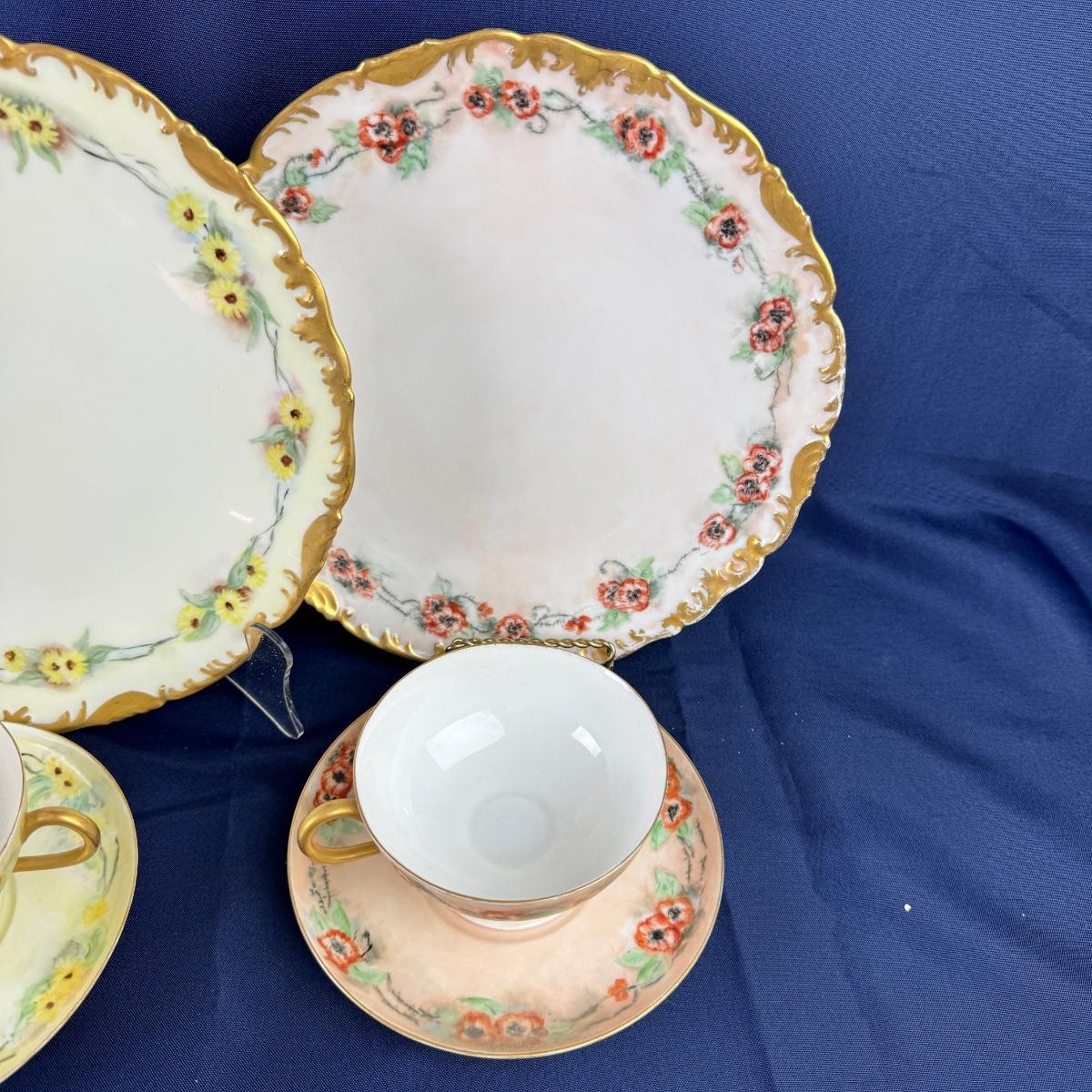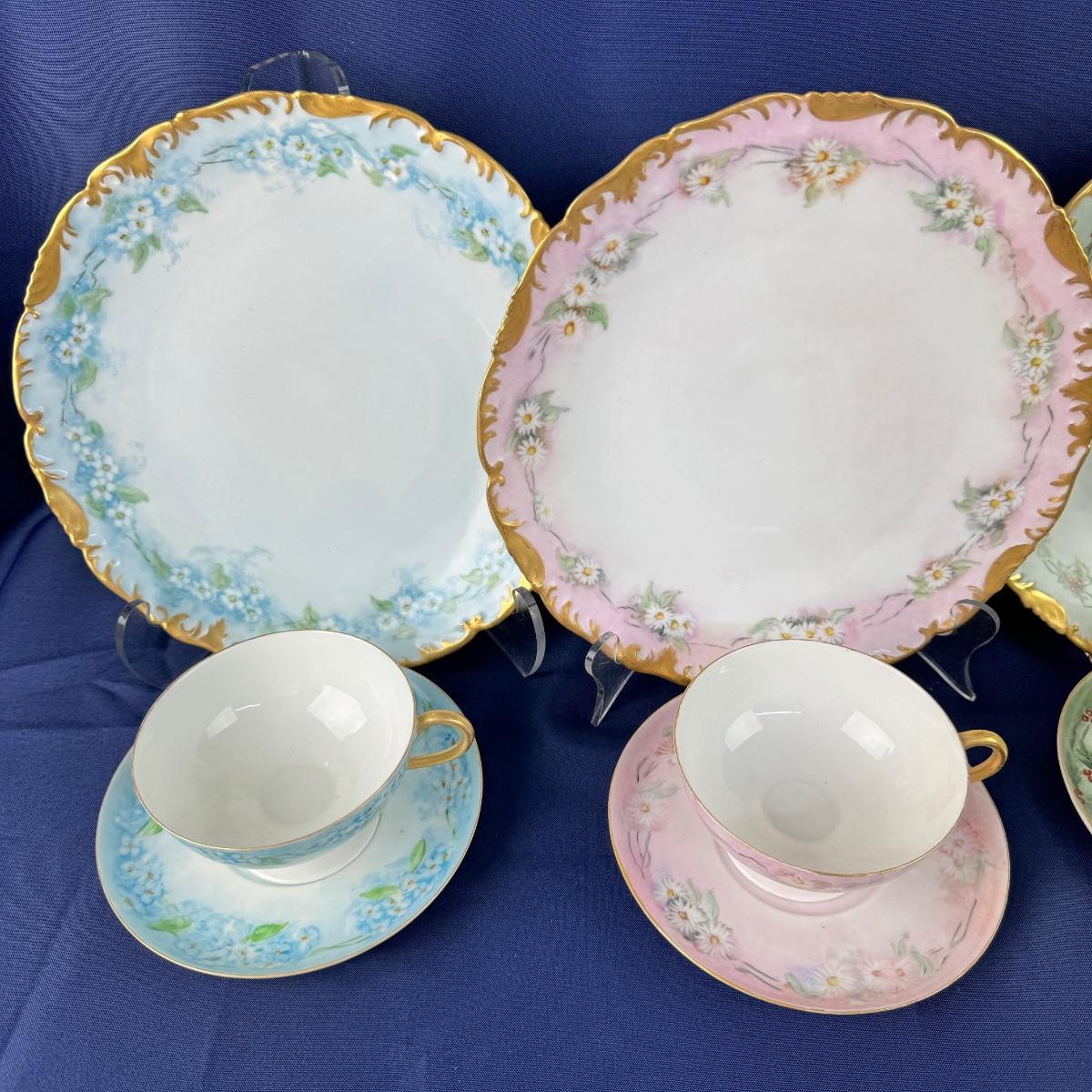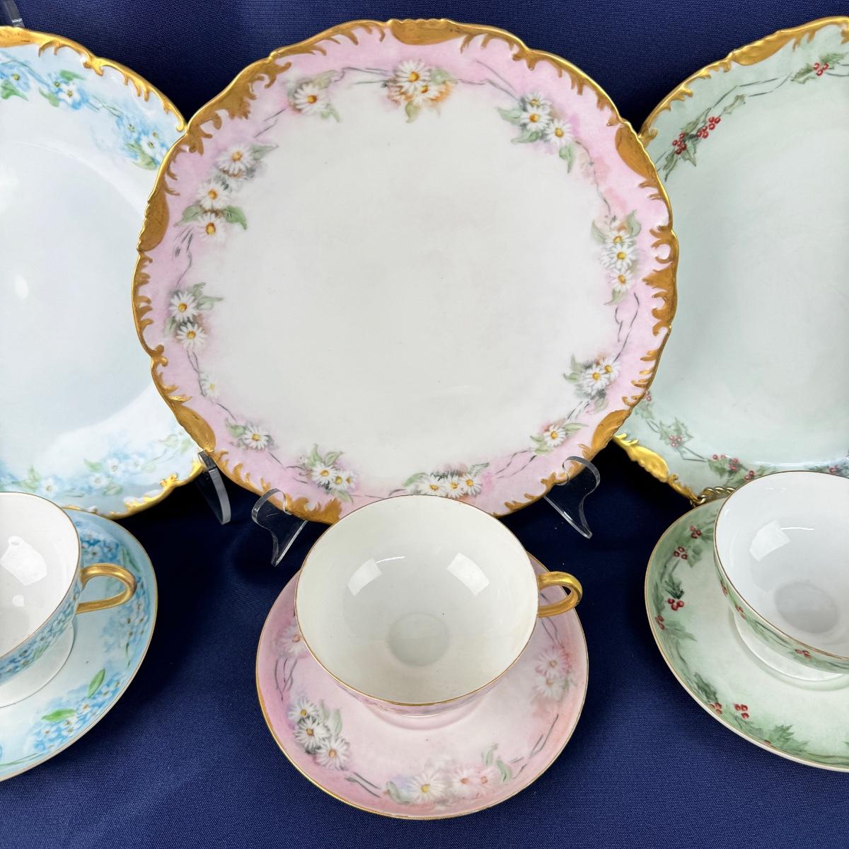 various floral limoge 3pc china dish set