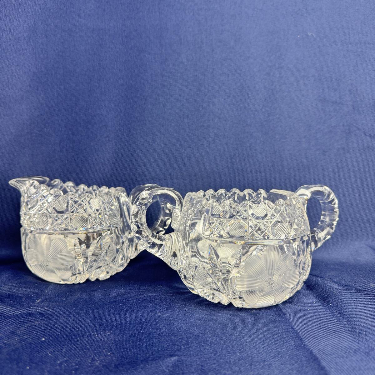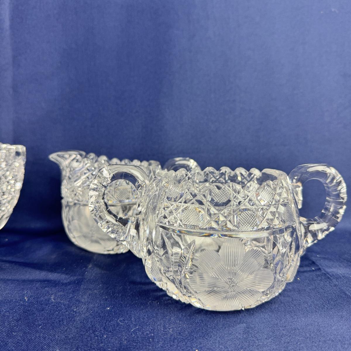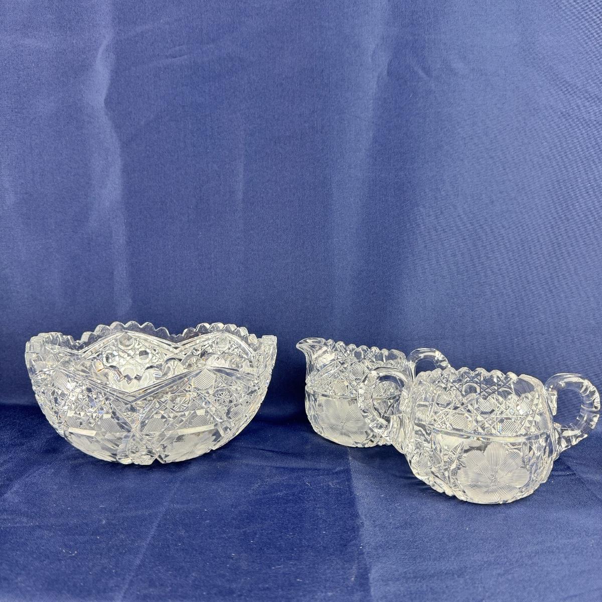 1013 American Brilliant Cut Crystal Bowl with Sugar and Creamer
