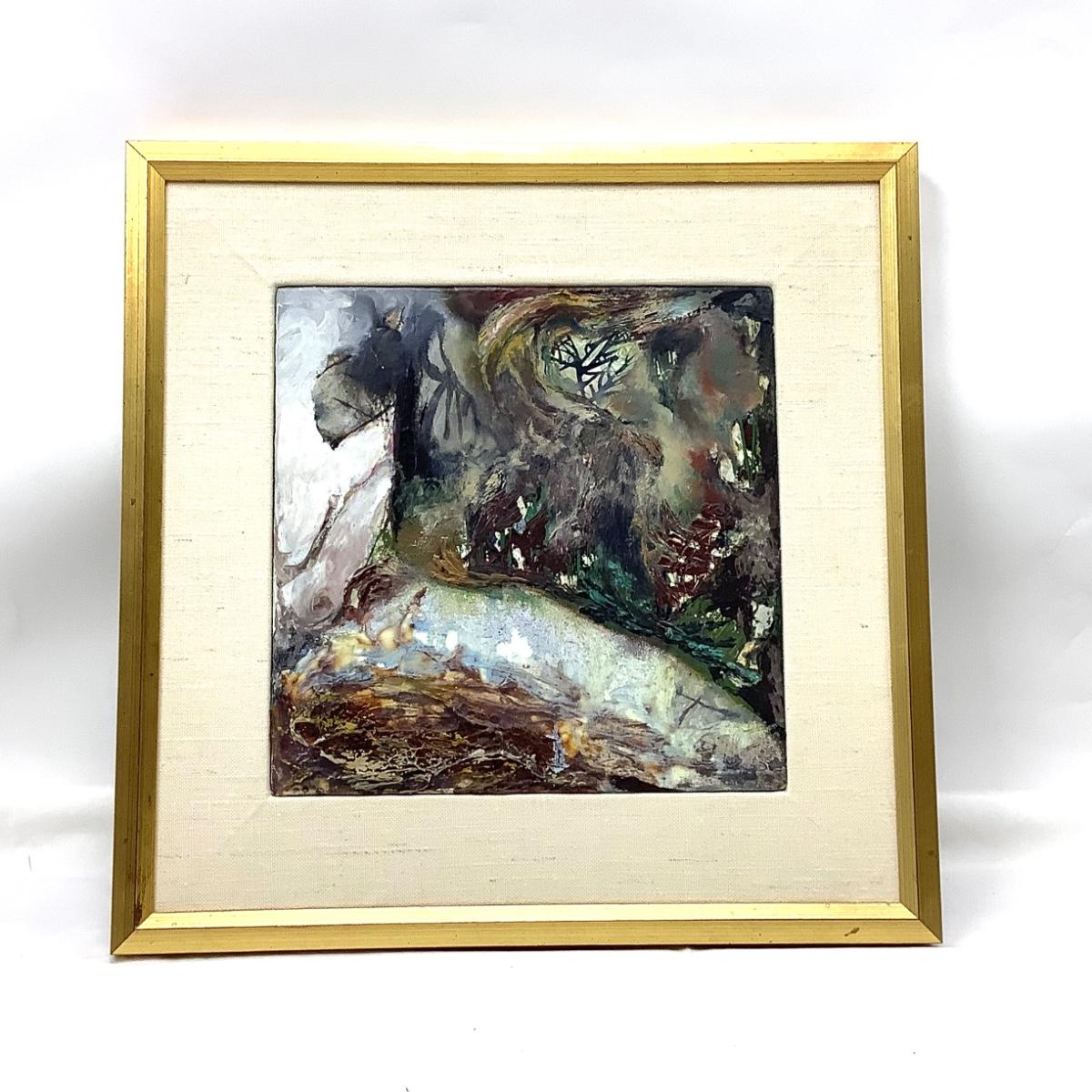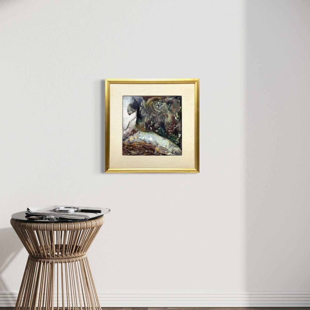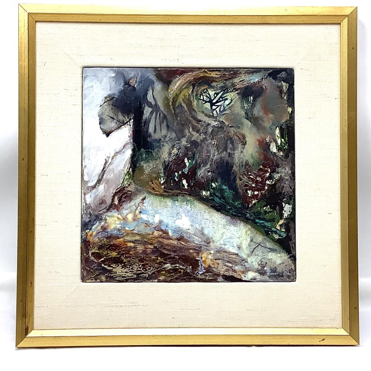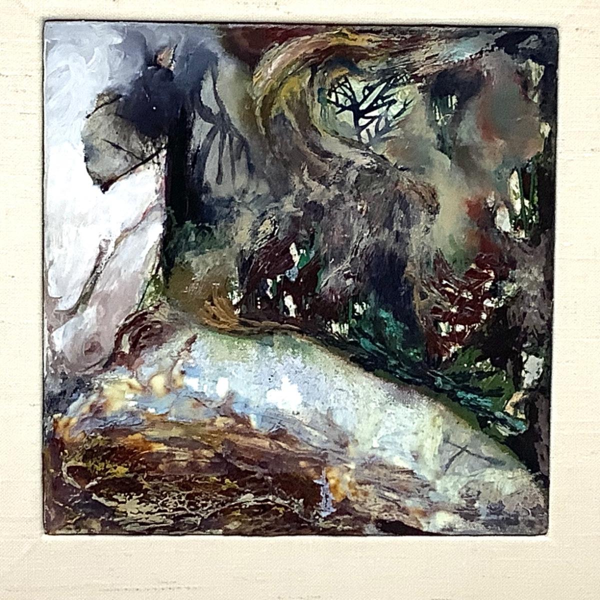 Mixed media painting is 17.5" x 17.5", signed by artist Marc Boone and dated 1990. The artist Marc Boone has had a long career spanning both the East and West coast. His paintings are interpretations of natural phenomena. He searches for the magic in nature-the Columbia Pacific region inspires his work.