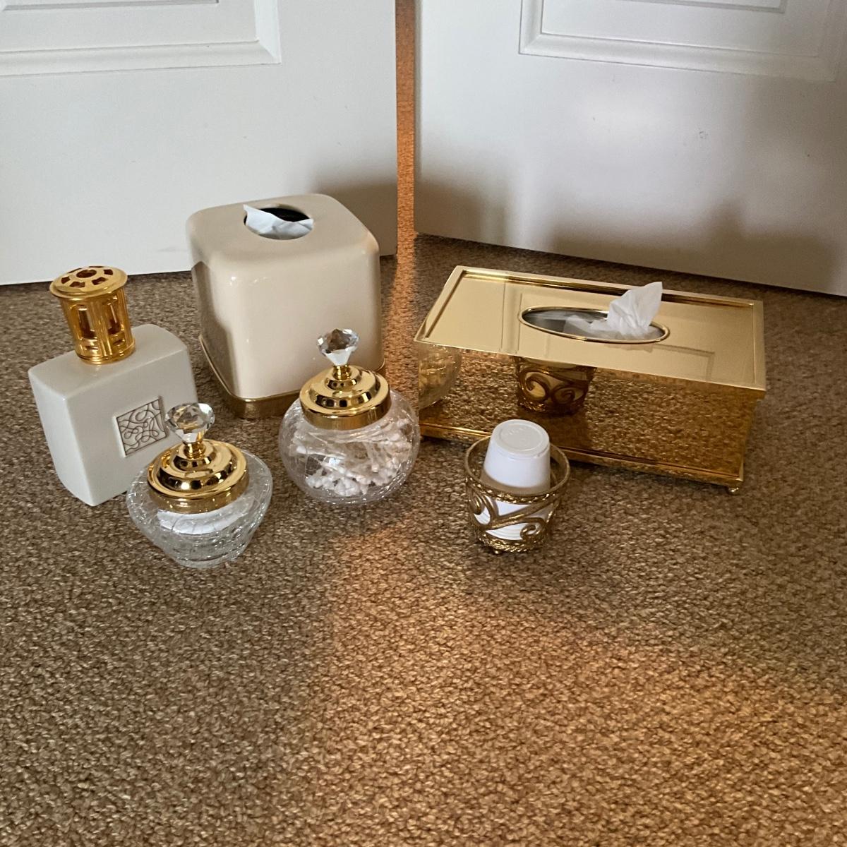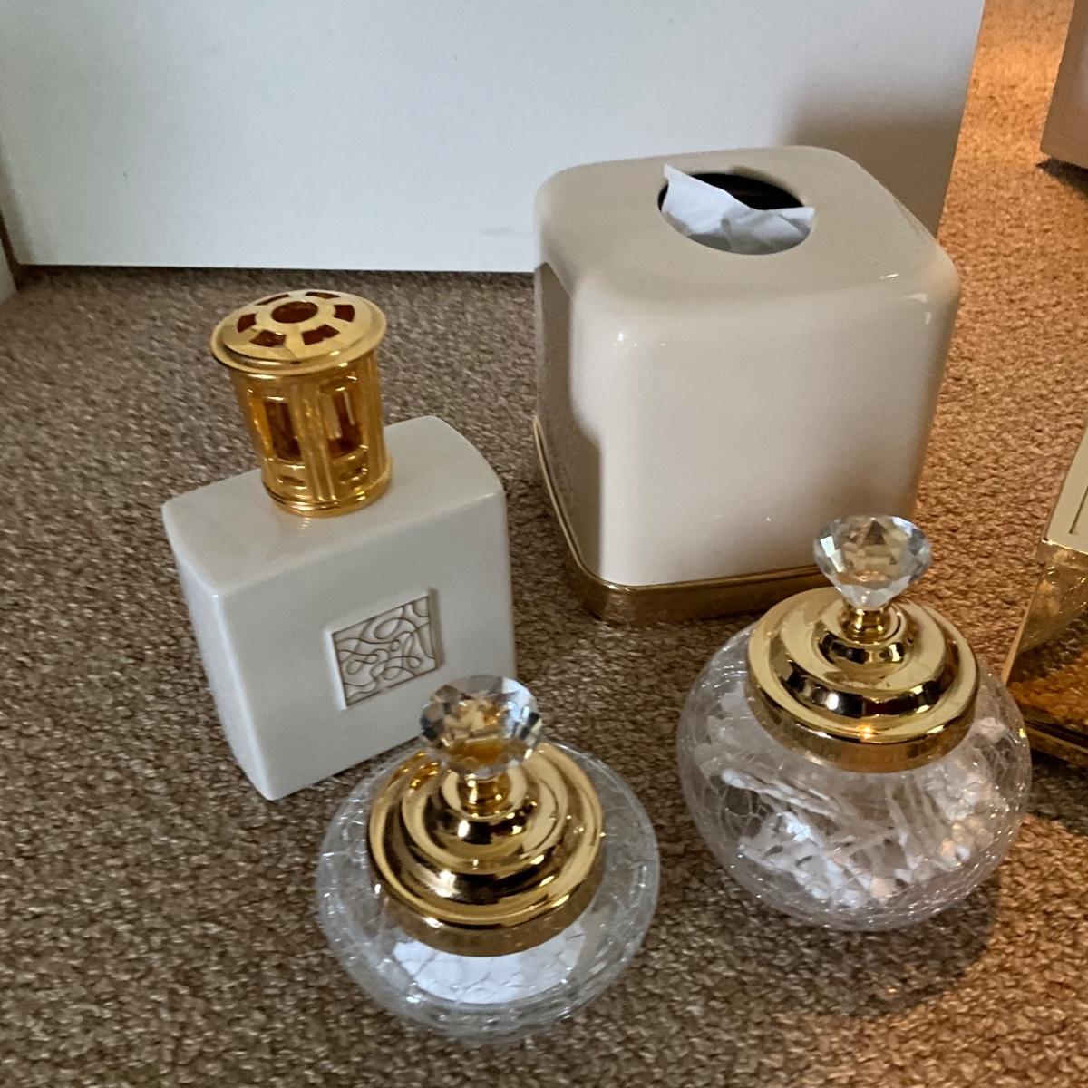6 pcs= tissue holders berger lamp , two glass covered dishes with candle