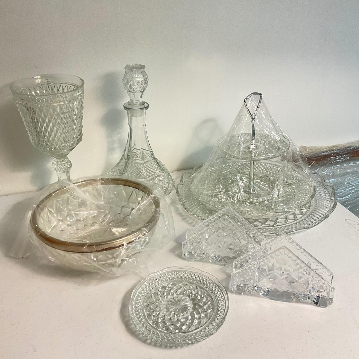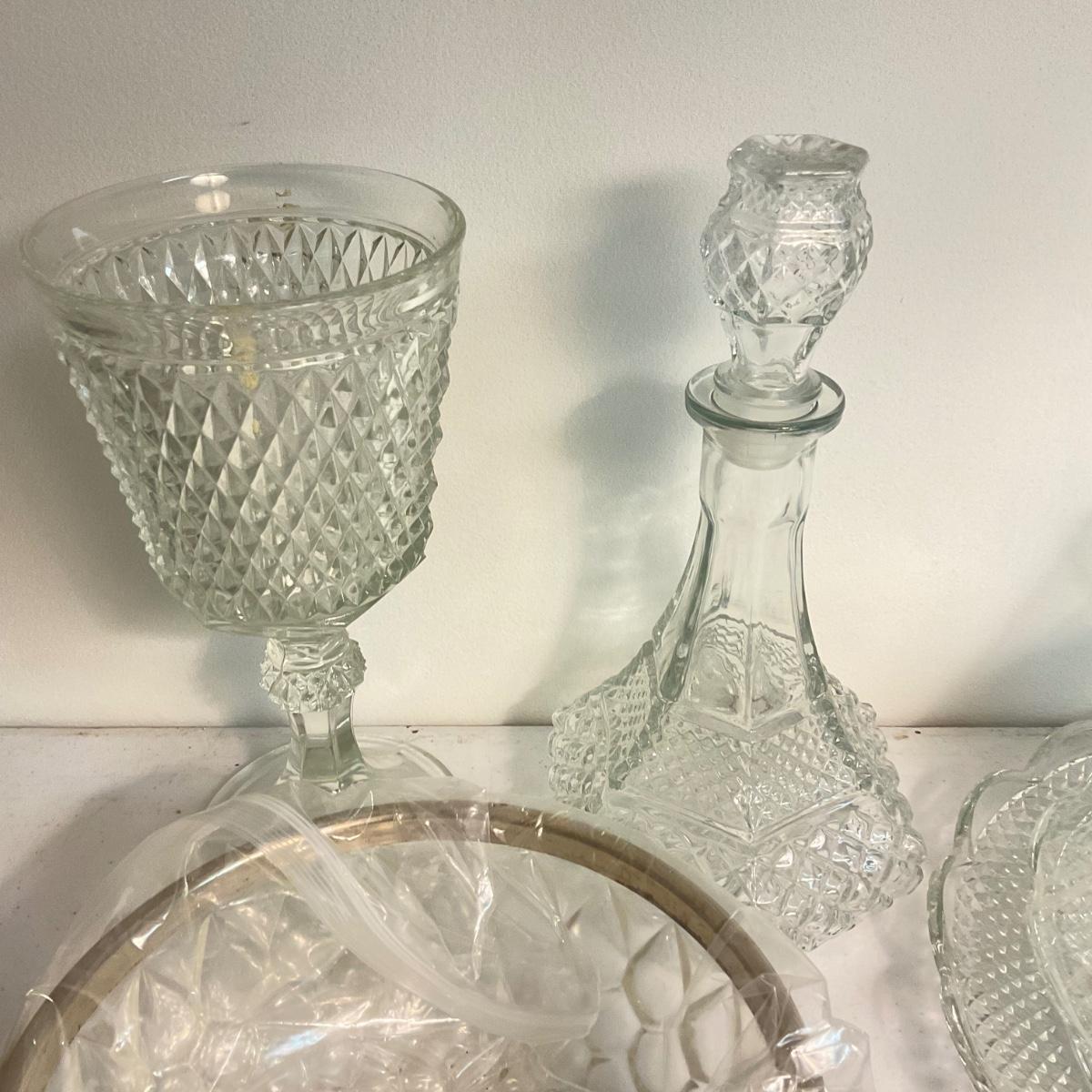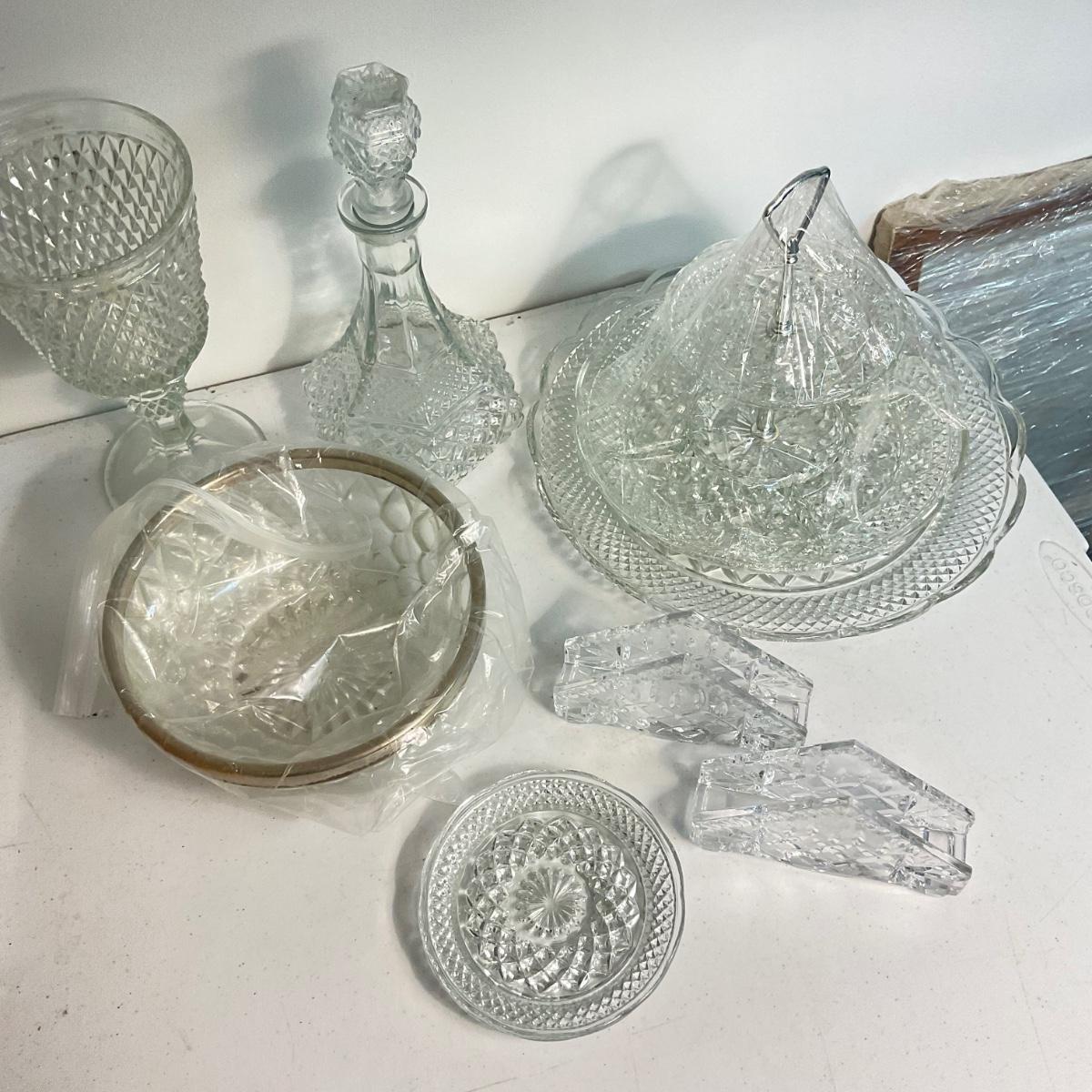 1016 Lot of Pressed Glass With Napkin Holders, Decanter