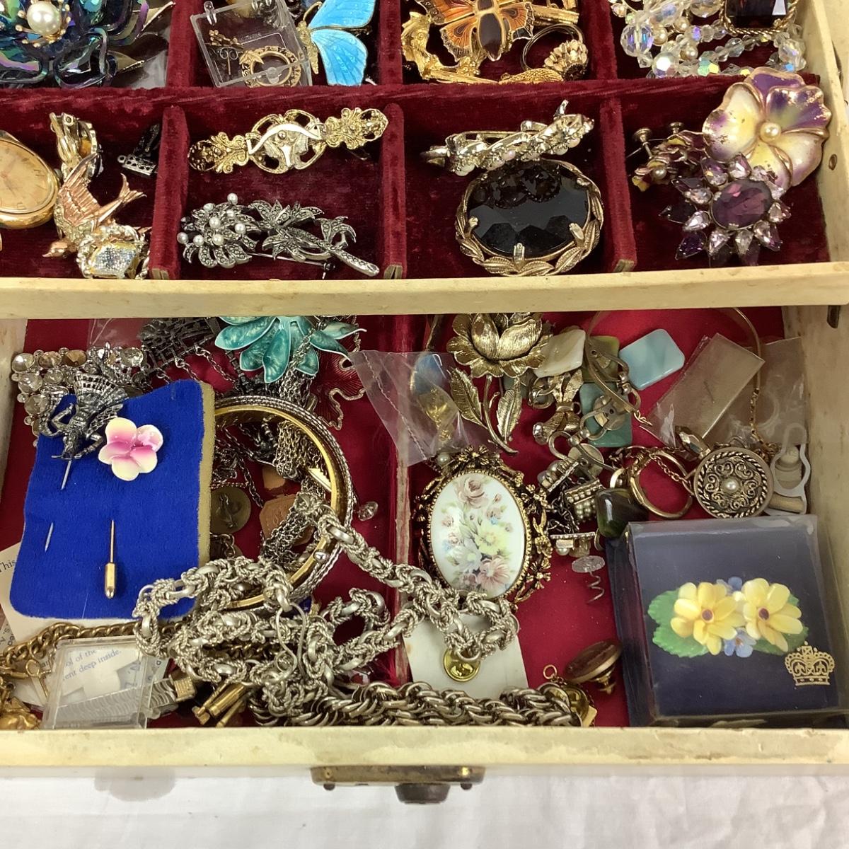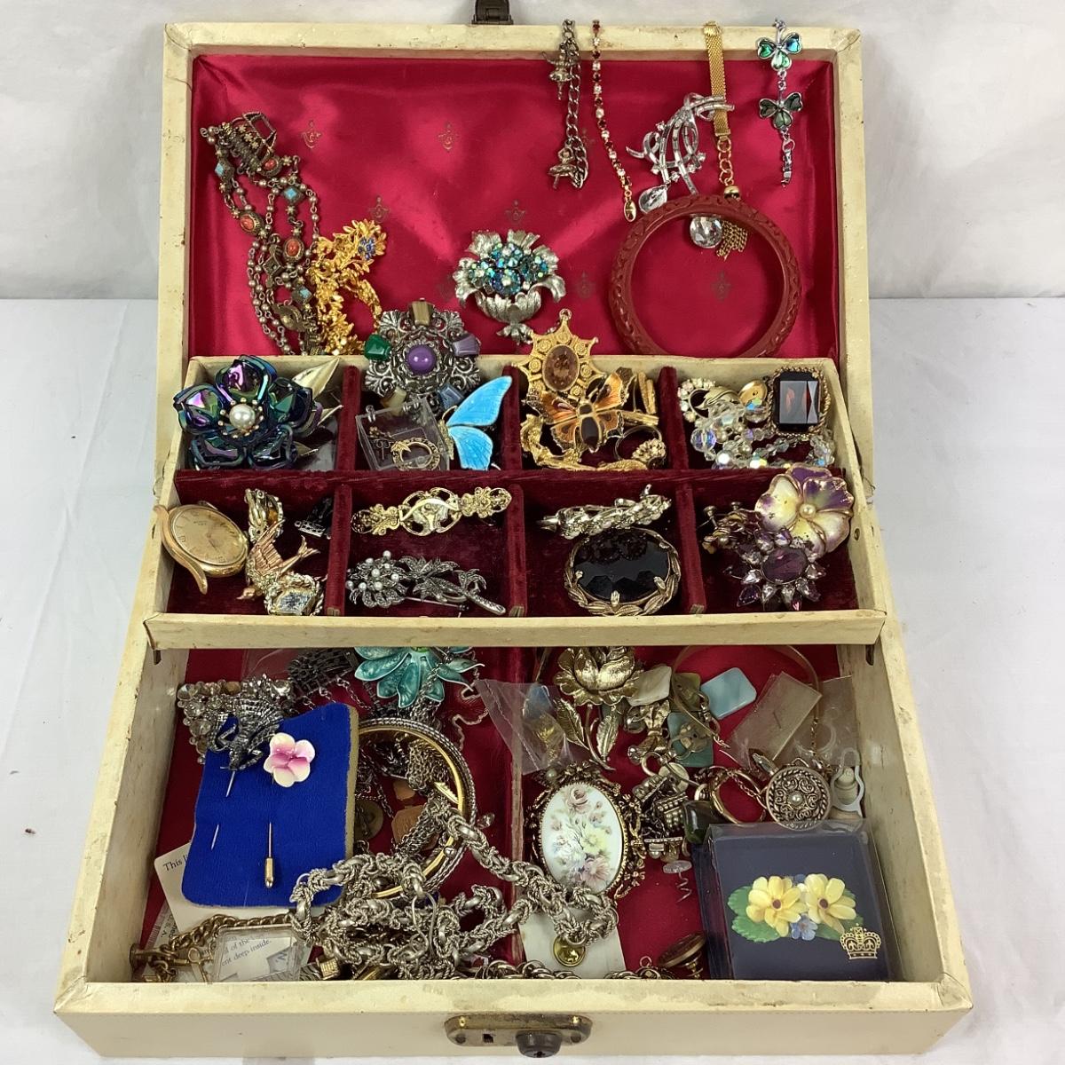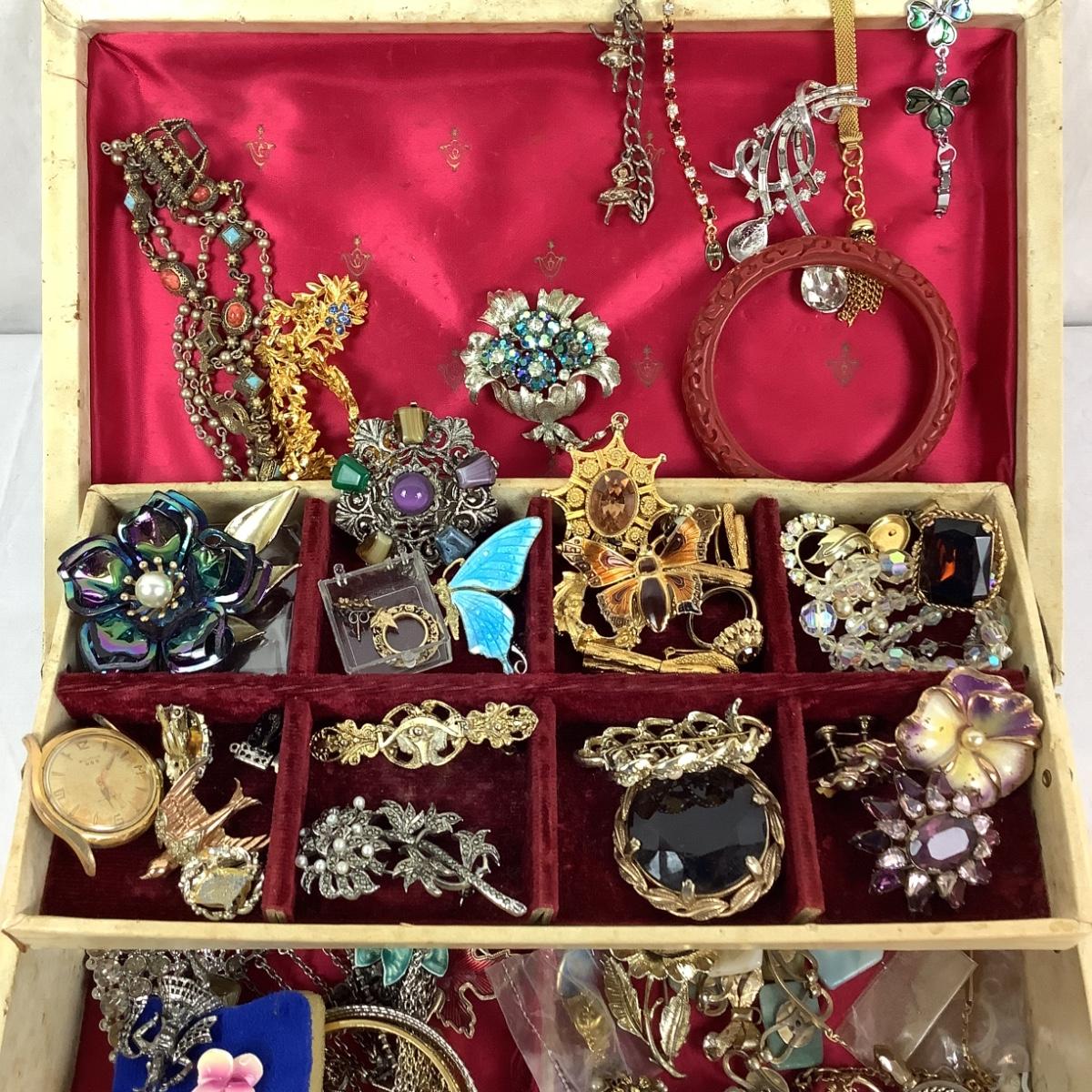 Large lot of vintage costume jewelry with box