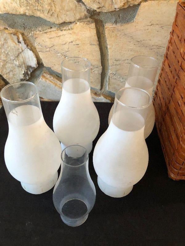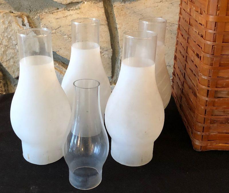 #1017 Kerosene  Glass Chimneys 5 in a basket