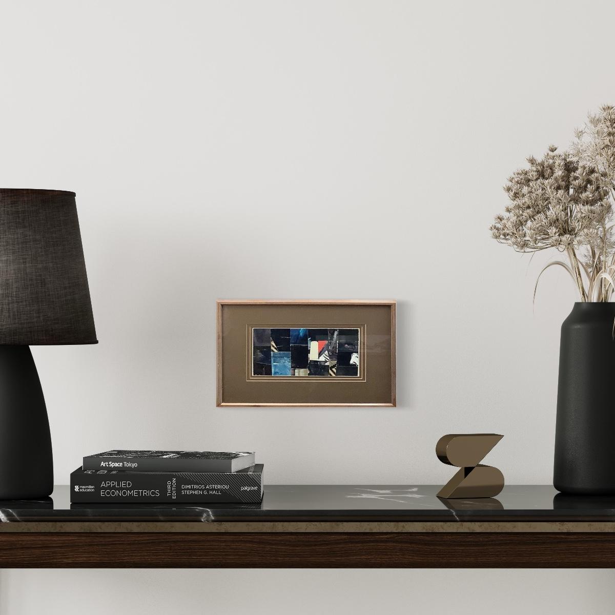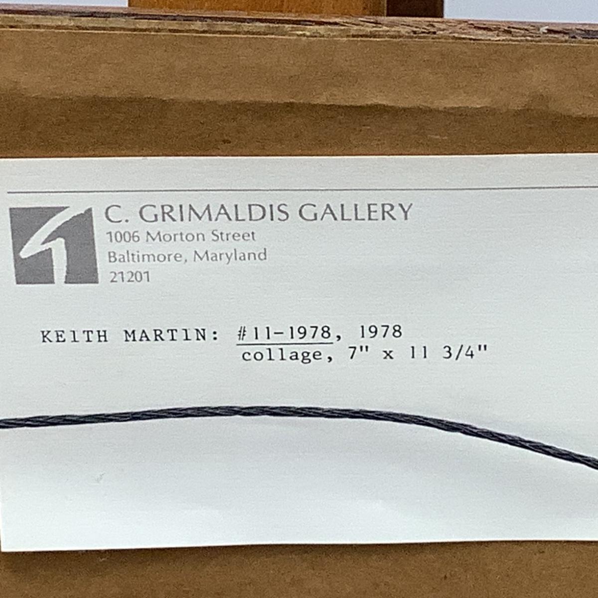 The paper collage is double matted and framed, measures 11.75" wide x 7" high, dated 1978. The artist Keith Martin (1911-1983) was an American abstract/surrealist artist and educator. He lived and worked throughout the USA and Europe but spent most of his career in Baltimore, Maryland. Martin's media of choice included collage, pen and ink, mixed media. His work has been exhibited at the Art Institute of Chicago, National Academy of Design, Whitney Museum of American Art.