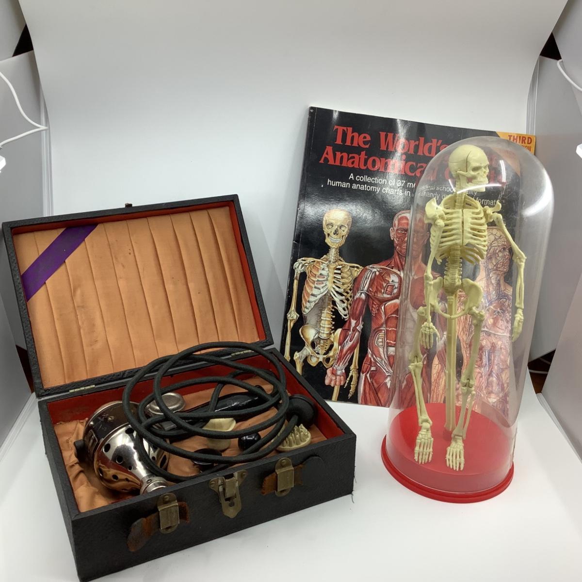 1019 Mr Bones Anatomy Book and Antique Massager with Box