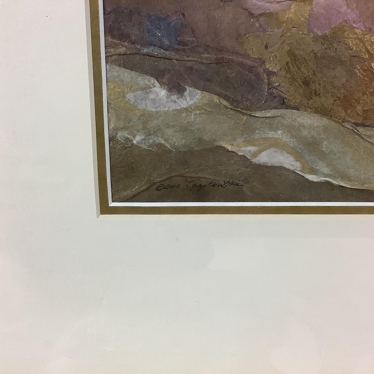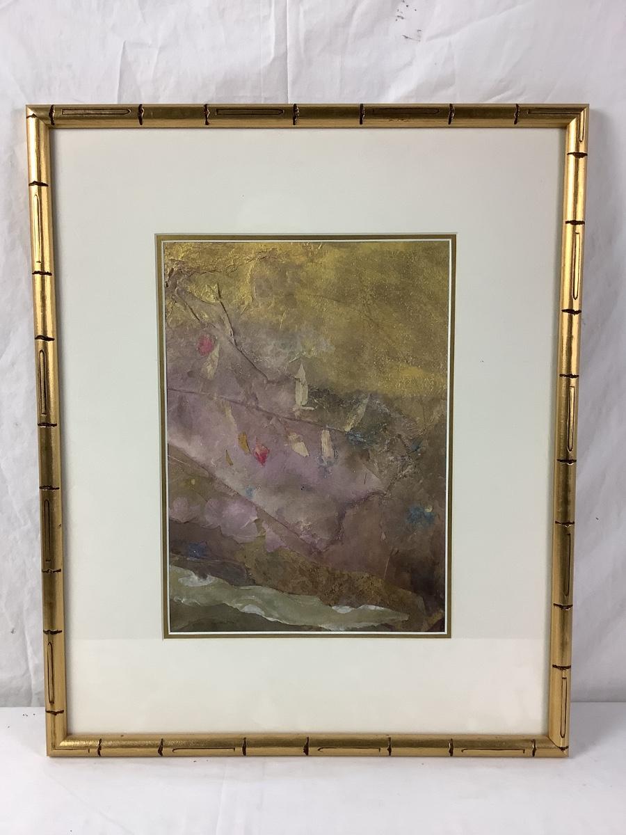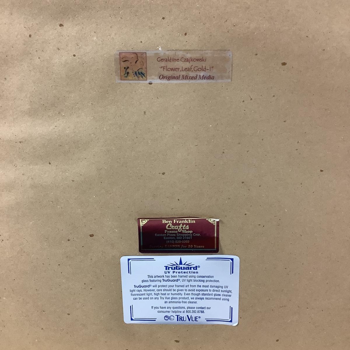 Original Mixed Media "Flower, Leaf, Gold- I" by Geraldine Czajkowski. Gold Framed & Double Matte.