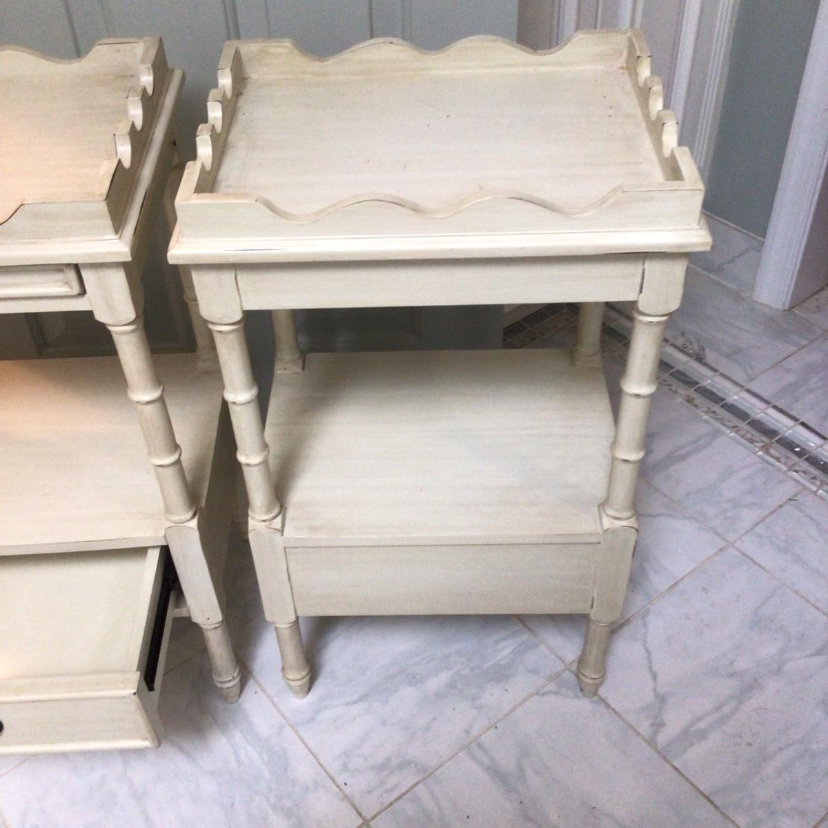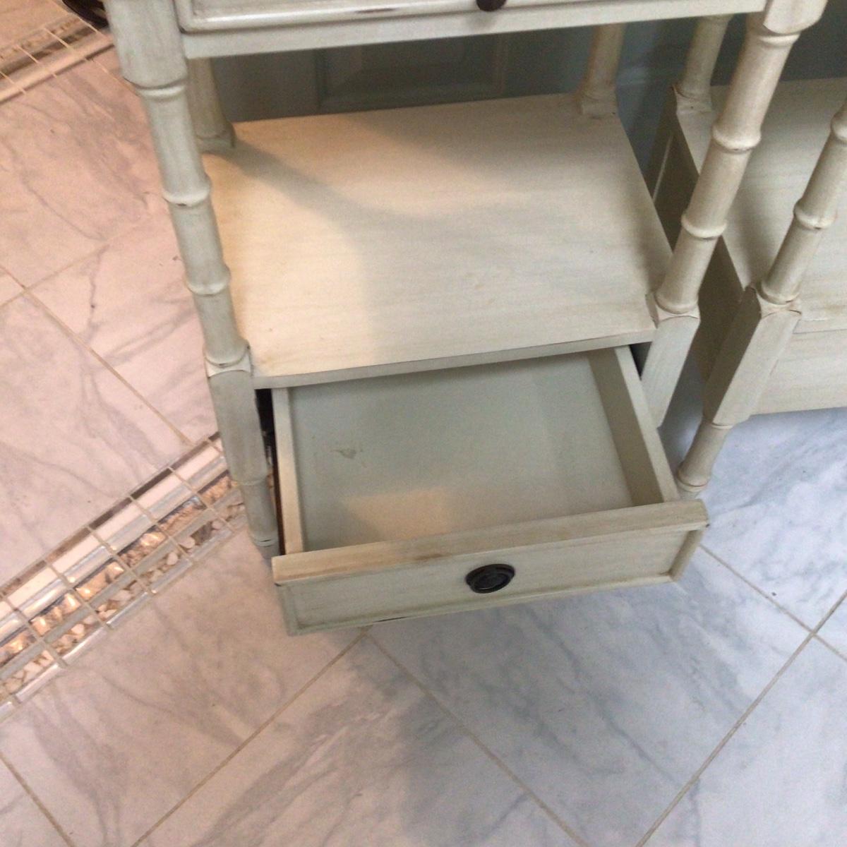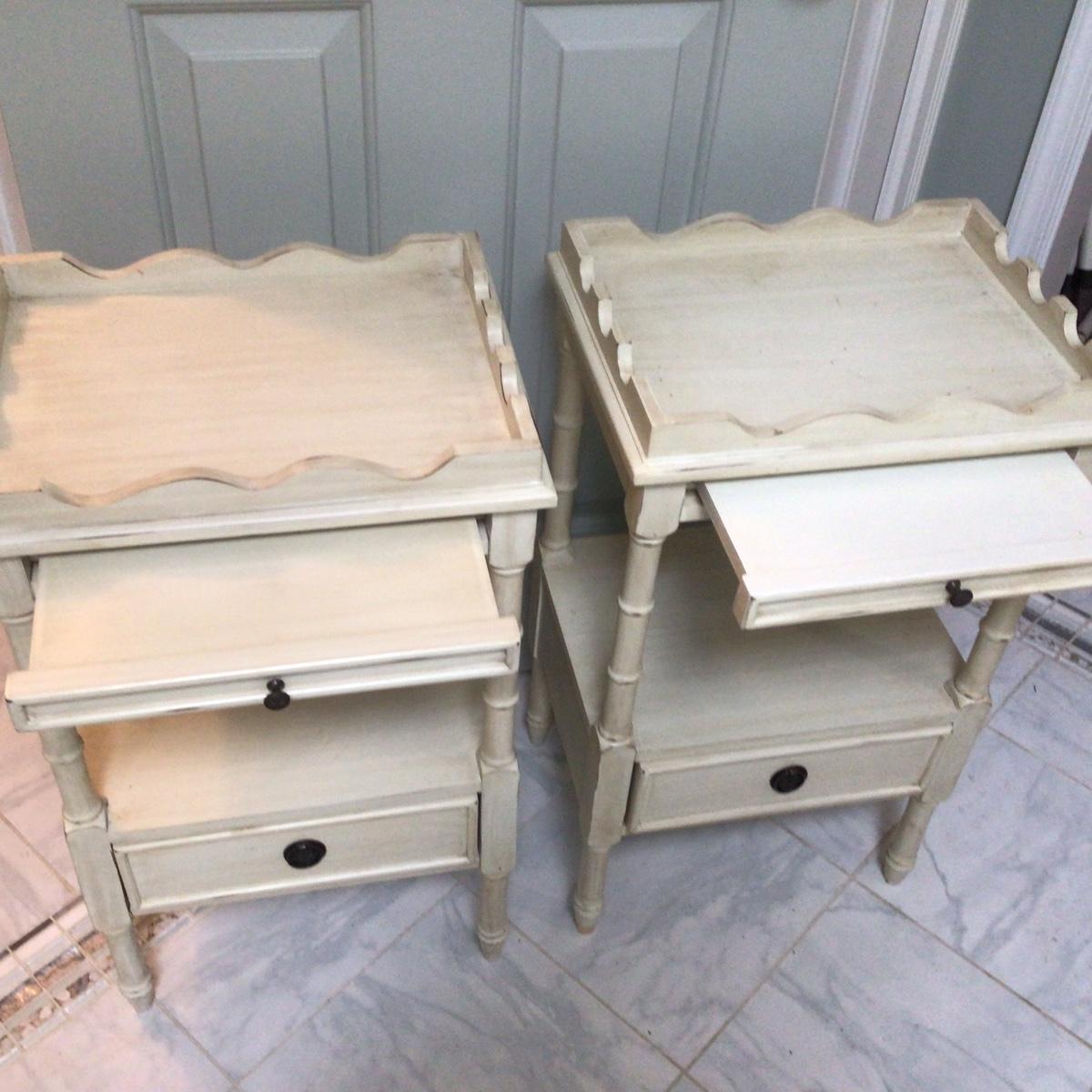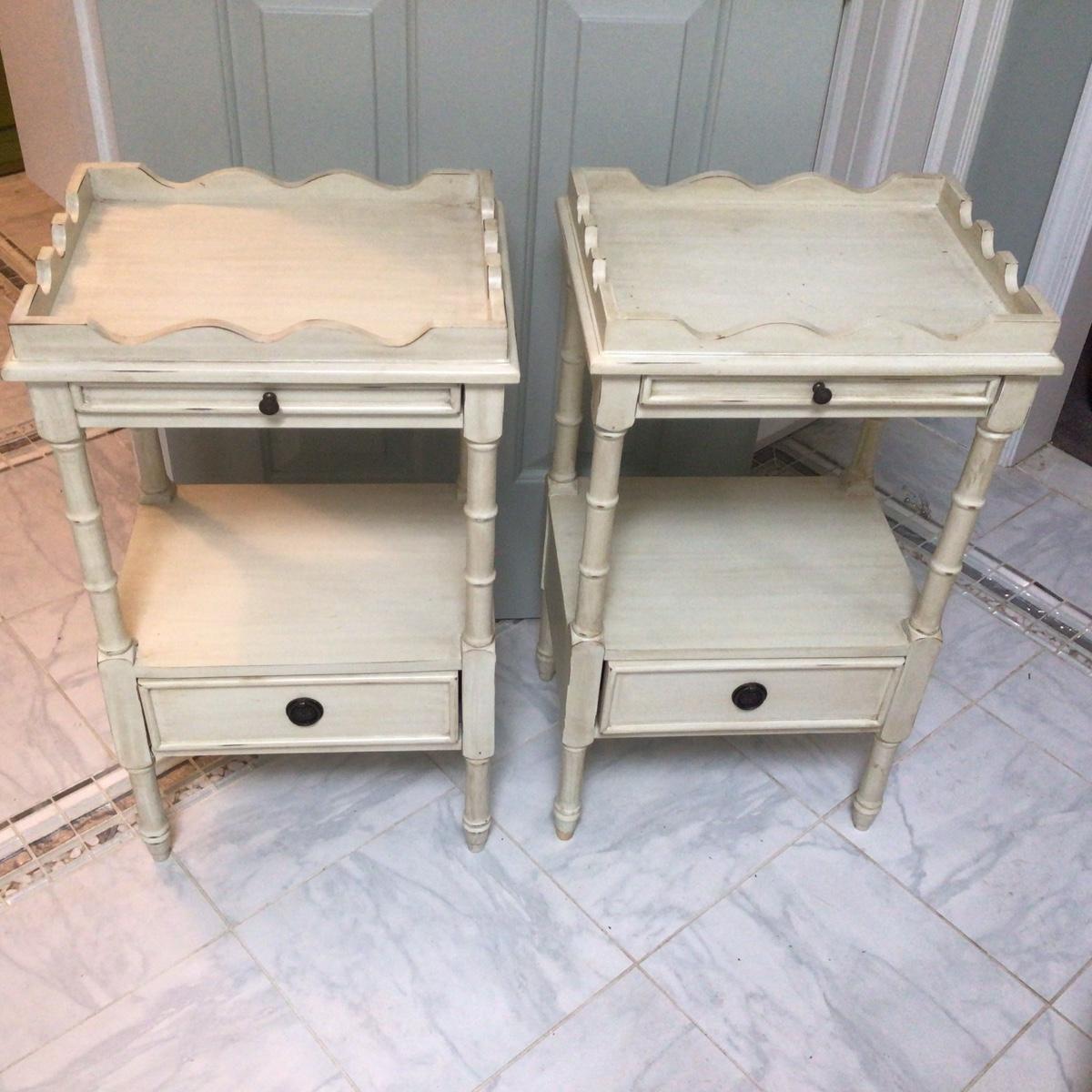 There are 2 tables, slide out drink tray on the top, and drawer on the bottom. The tables are 27” tall x 16” wide x 12” deep.