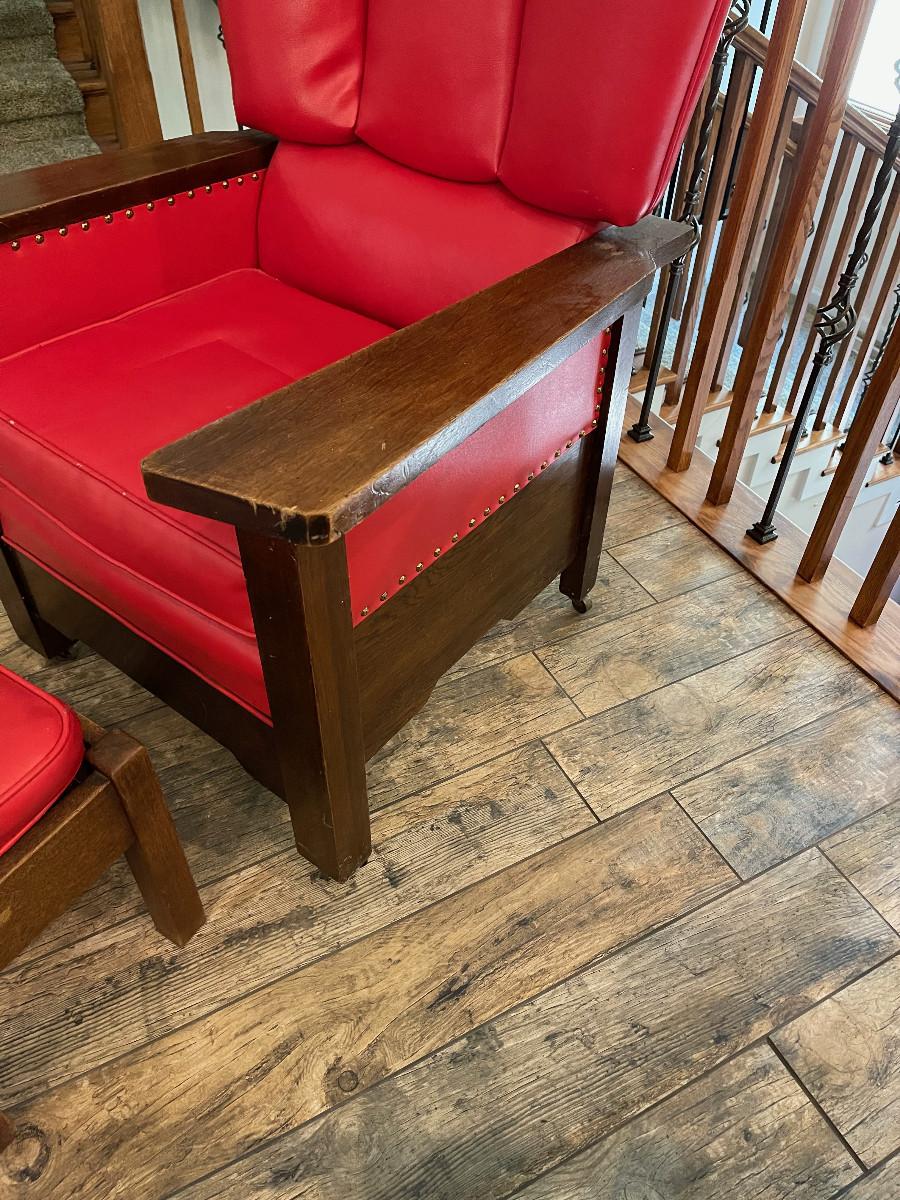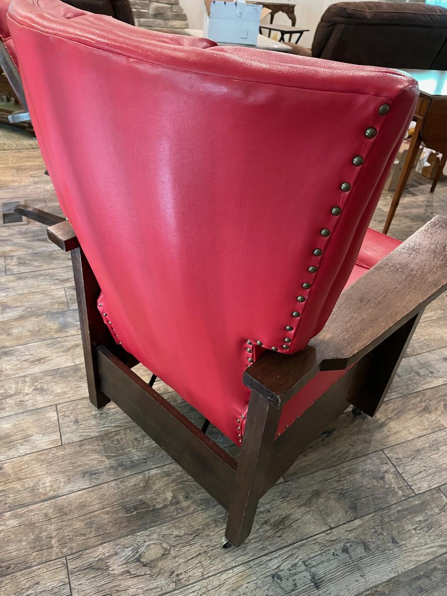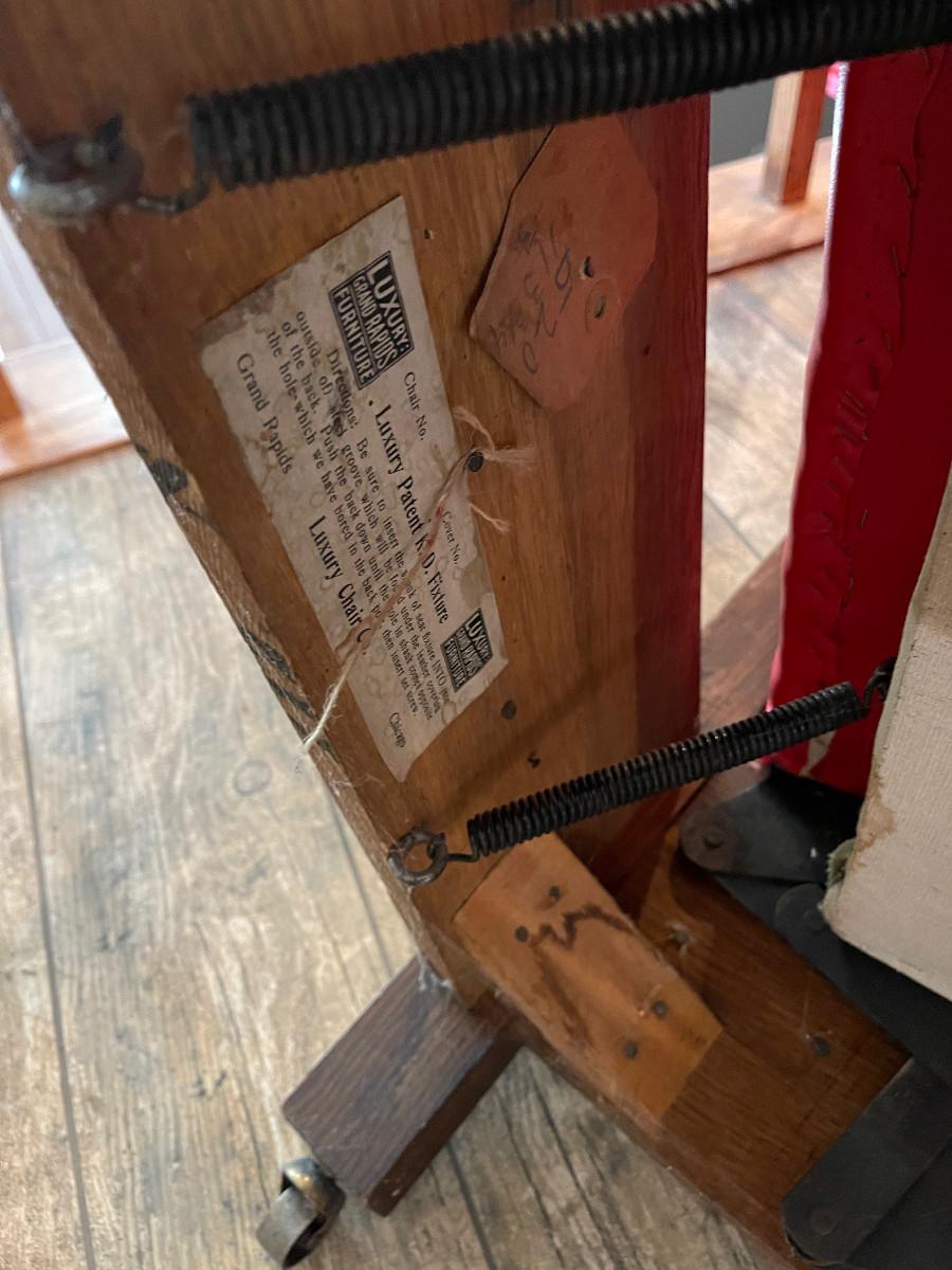Very Comfortable! Luxury Chair Company Grand Rapids Michigan. Original Hard Wood in Excellent condition, Recovered Vinal is in Great Condition. Antique.
