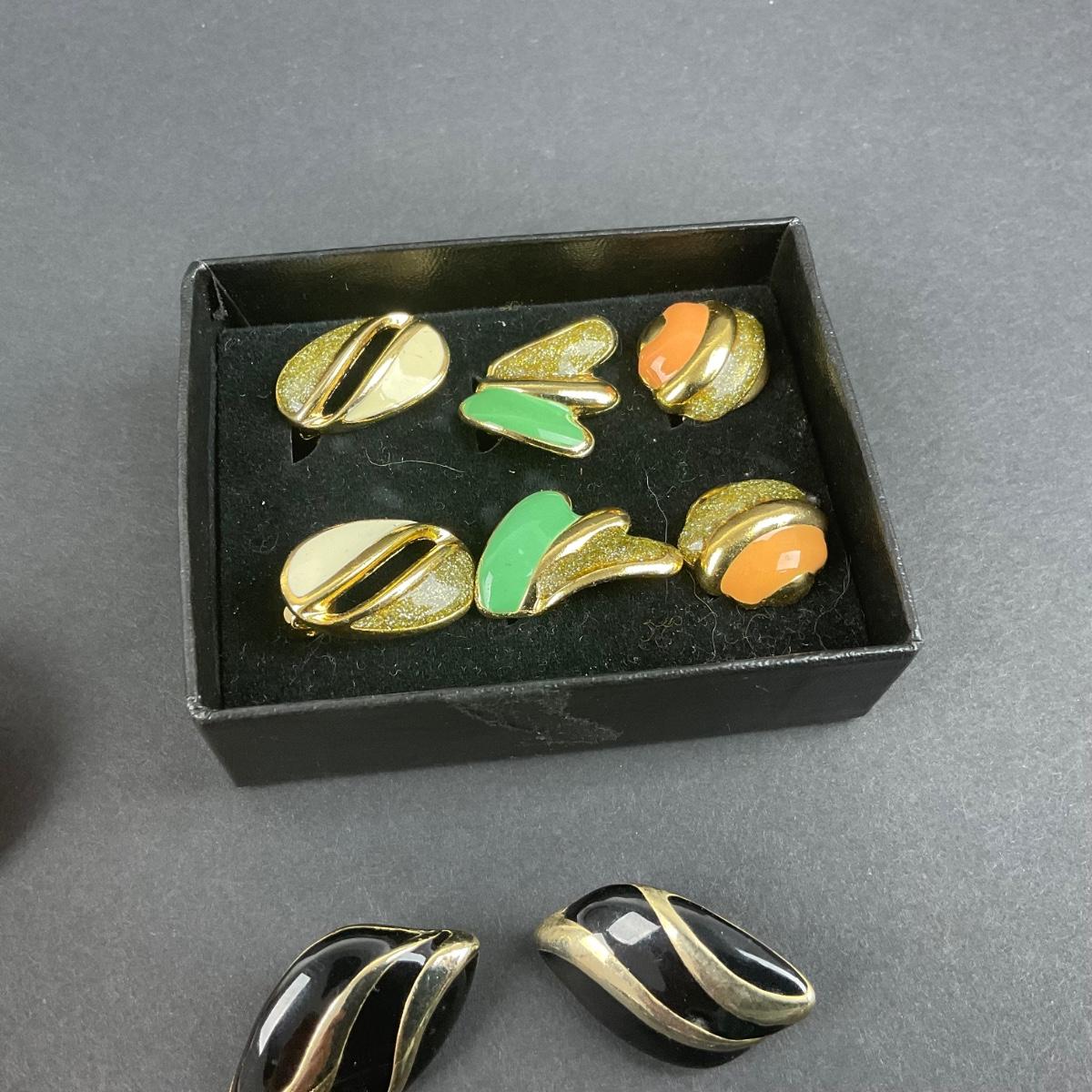 Eight pair of miscellaneous clip earrings, one of the earrings is missing a piece and damaged. Everything else is in good shape. Please see photos for details and condition. Any condition statement is given as a courtesy to a client, is an opinion, and should not be treated as a statement of fact. Reference to condition written, oral or within a condition report shall not be regarded as a full account of condition and may not include all defects, alterations, or restorations. Absence of a condition report does not imply a lot is flawless or lacking imperfections or damage. Katherine’s Auction & Appraisal Service shall have no responsibility for any error or omission. Returns shall not be accepted on the basis of condition. ::: Shipping is available on this lot. If you require shipping you must let us know at the close of the auction. We will coordinate with you after the item has been won. Shipping fees will include insurance up to or exceeding the value of all items being mailed. If you have any questions regarding this lot please contact the auctioneer either via this website, by direct email or by phone. PICK UP TIMES and other important information can be found in the TERMS and DESCRIPTION of the auction. Please take a look for pertinent information. Thanks!