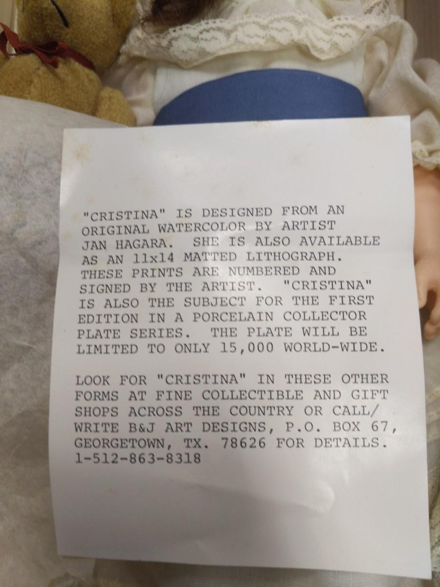• All items are final and in 'as-in", final condition. There are no exchange and or refunds. All dolls are located at Ruckersville Gallery , 8287 Seminole Road, Ruckersville and can be purchased directly from the Online Auction or in person at the Ruckersville Gallery