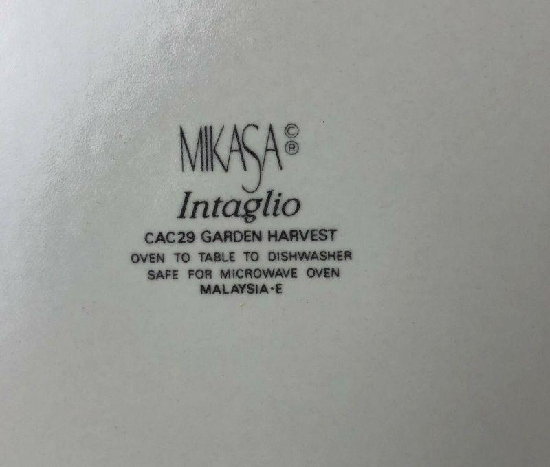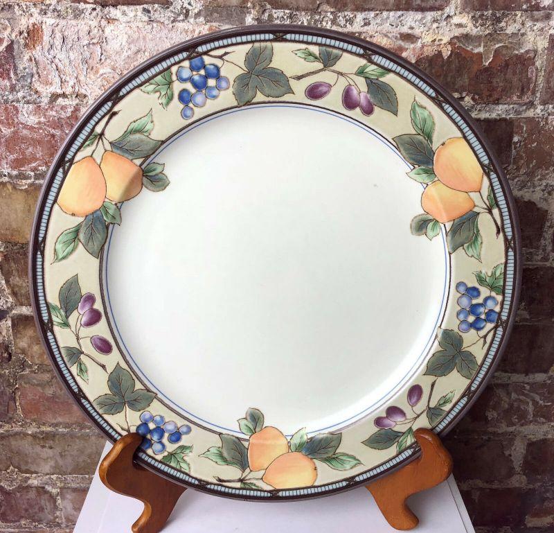 Garden Harvest by Mikasa...Intaglio fruit and leaves on rim...cream background...Excellent condition on this 12 3/4" Round Platter or Chop Plate...No sign of use...Pattern No. CAC29...Now discontinued. Introduced in 1991...