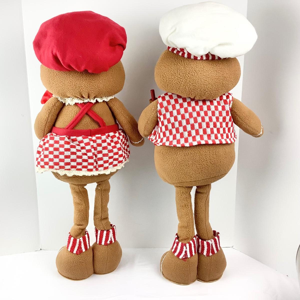 The gingerbread couple is 18.5" tall, plush and able to stand freely.