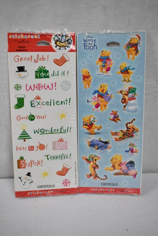 102 sheets of Stickers! 30 packages Winnie the Pooh (2 sheets in each package) & 6 packages School/Holiday (8 sheets in each package) - New