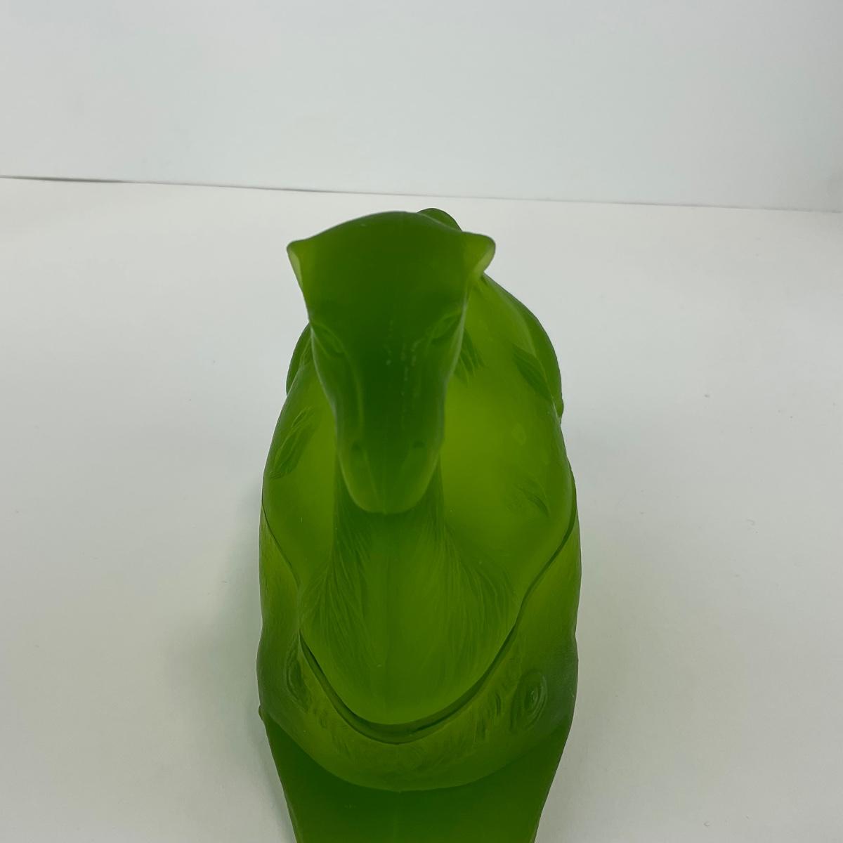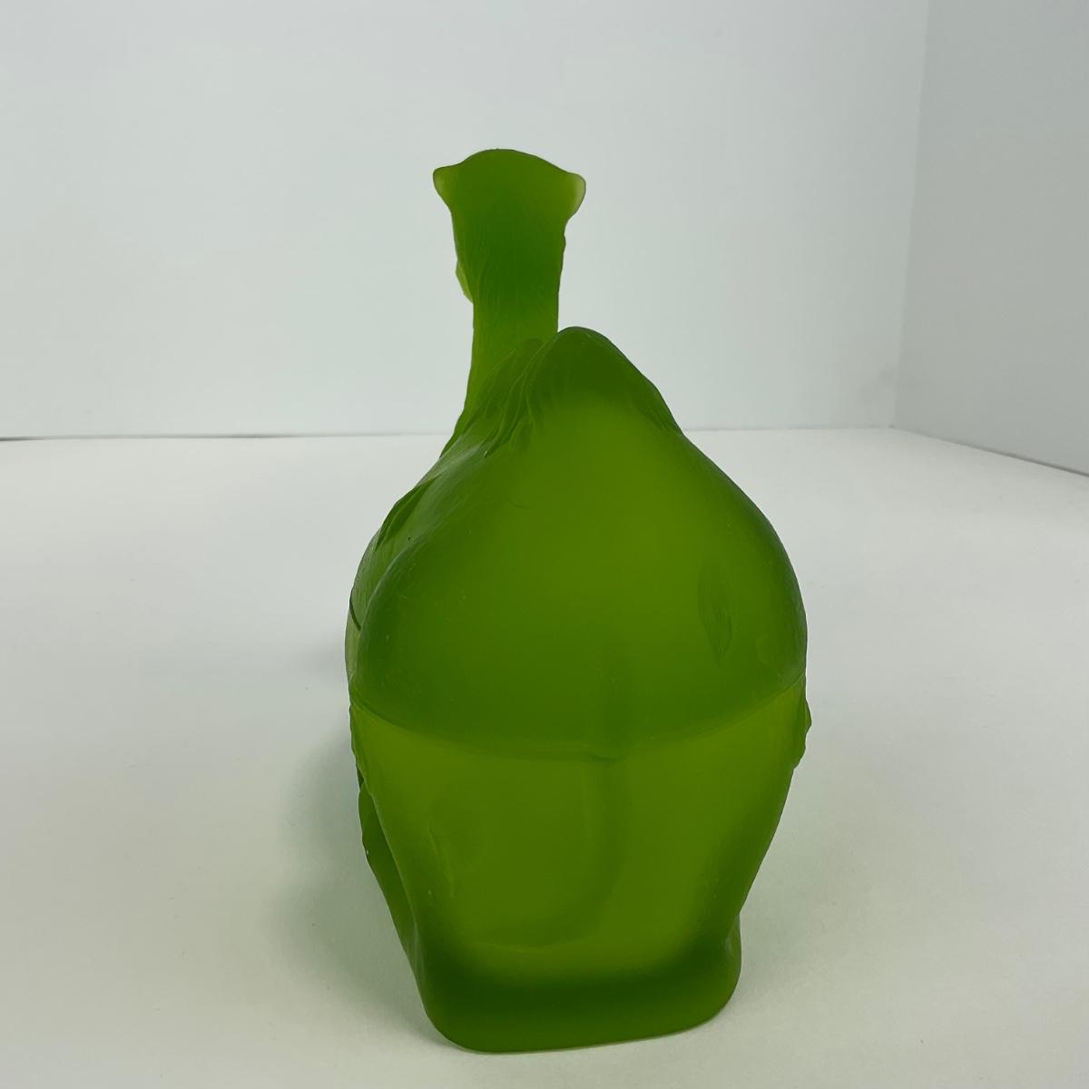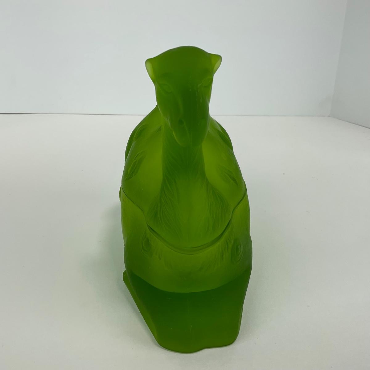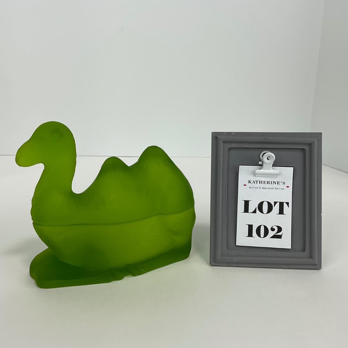 One Westmoreland green mist camel covered dish. Some chips on the rim. This piece does have some scuffs, scratches, marks, or slight damage, but otherwise appears to be in great shape. Please see photos for details and condition. Any condition statement is given as a courtesy to a client, is an opinion, and should not be treated as a statement of fact. Reference to condition written, oral or within a condition report shall not be regarded as a full account of condition and may not include all defects, alterations, or restorations. Absence of a condition report does not imply a lot is flawless or lacking imperfections or damage. Katherine’s Auction & Appraisal Service shall have no responsibility for any error or omission. Returns shall not be accepted on the basis of condition. ::: Shipping is available on this lot. If you require shipping you must let us know at the close of the auction. We will coordinate with you after the item has been won. Shipping fees will include insurance up to or exceeding the value of all items being mailed. If you have any questions regarding this lot please contact the auctioneer either via this website, by direct email or by phone. PICK UP TIMES and other important information can be found in the TERMS and DESCRIPTION of the auction. Please take a look for pertinent information. Thanks!