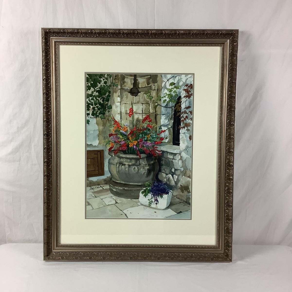 Linda Roberts "Columbe d' Or" Original Watercolor. Silver, Wood Framed.