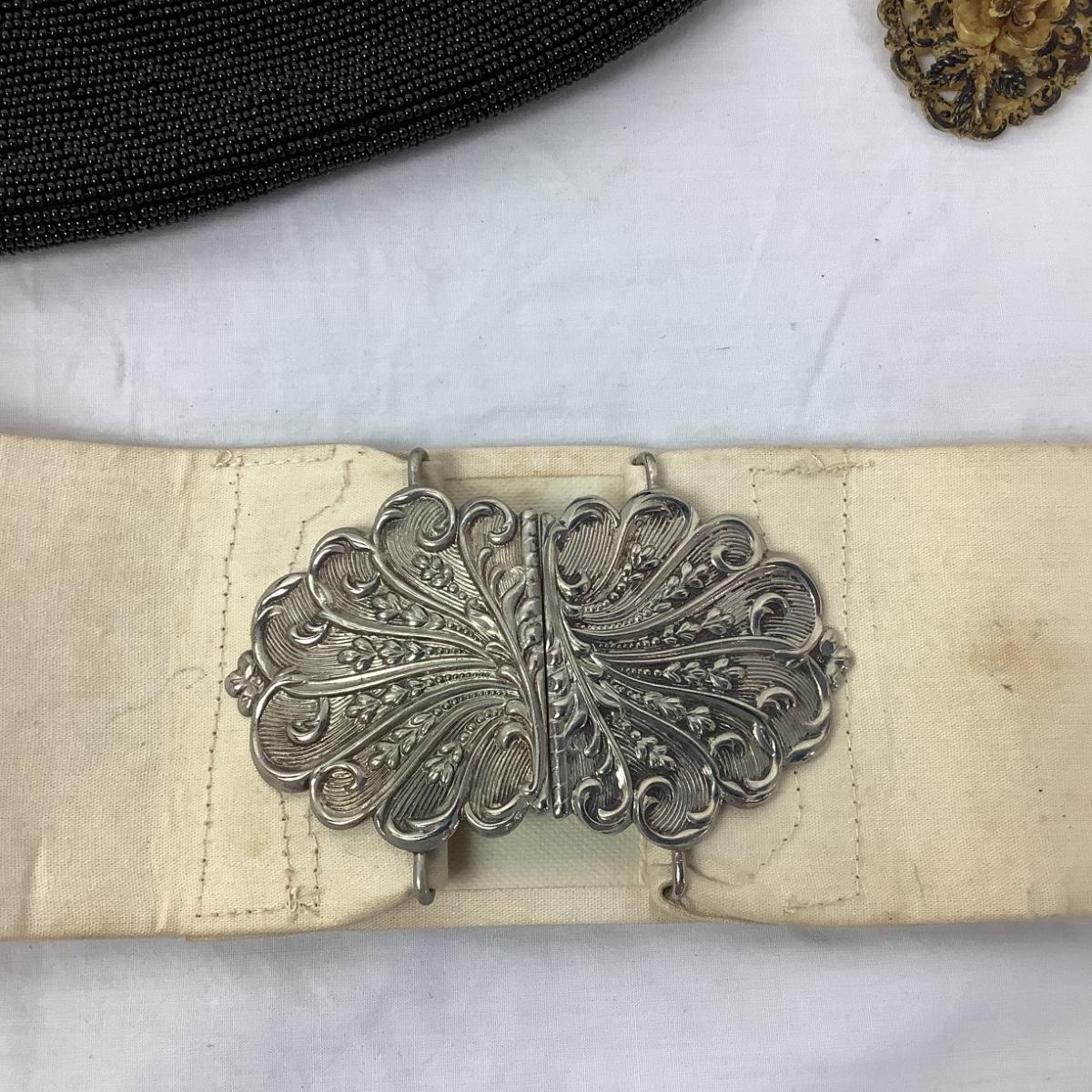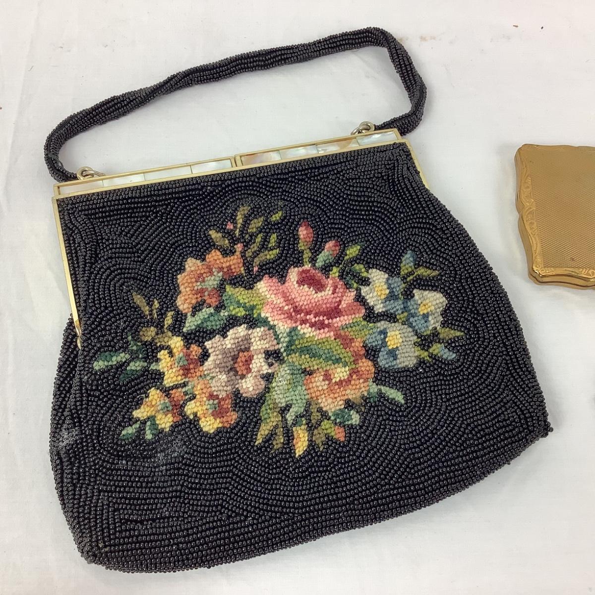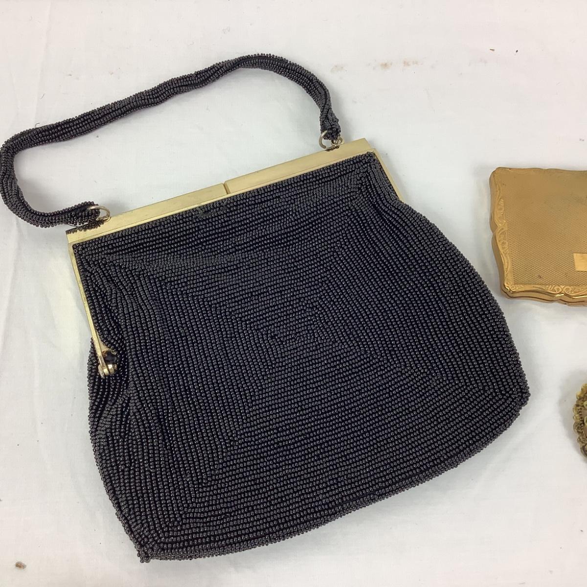 1021 Vintage Beaded Bag with Stratton Compact,Lipstick, and Silvertone Belt