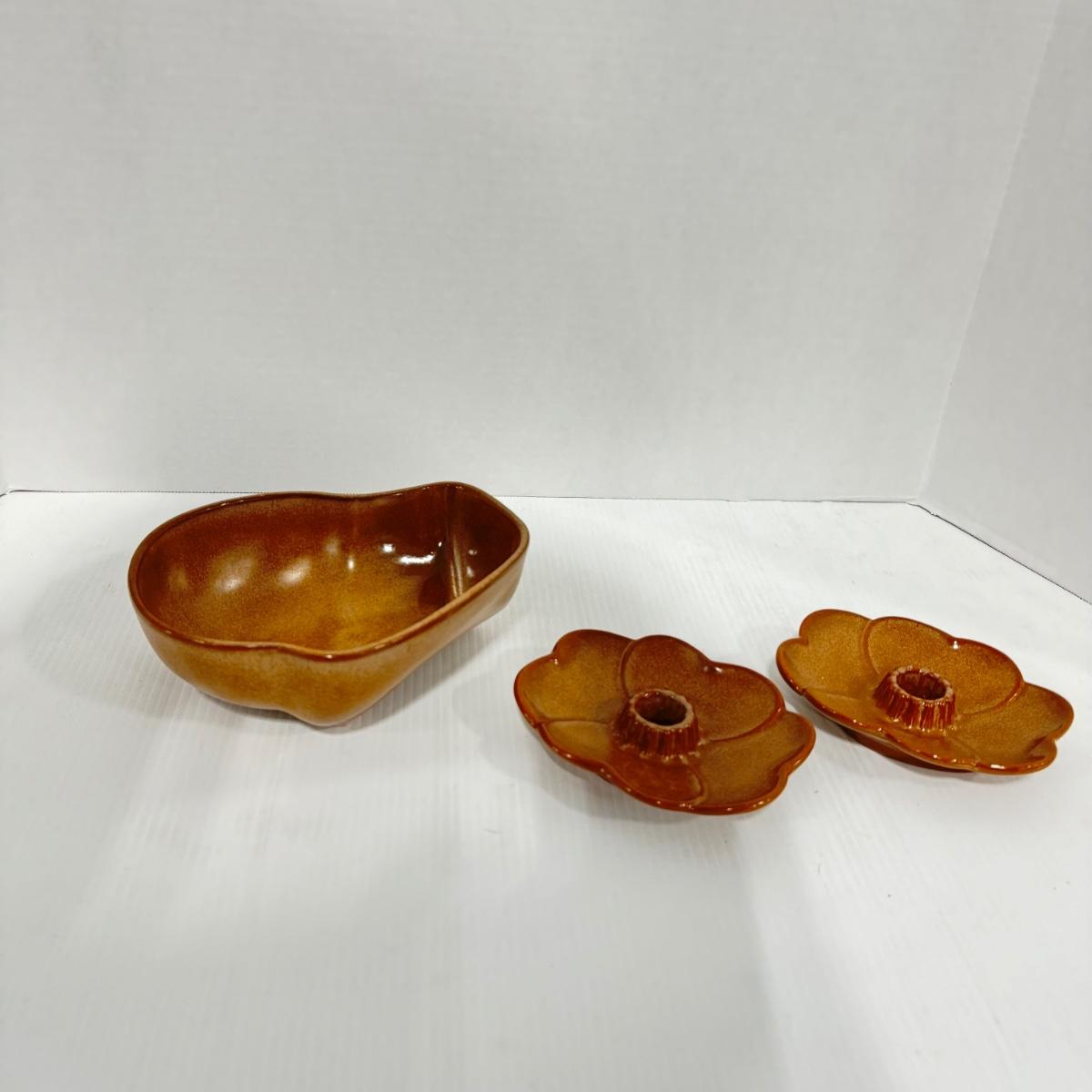1022 Frankoma Bowl and Flower Candlesticks