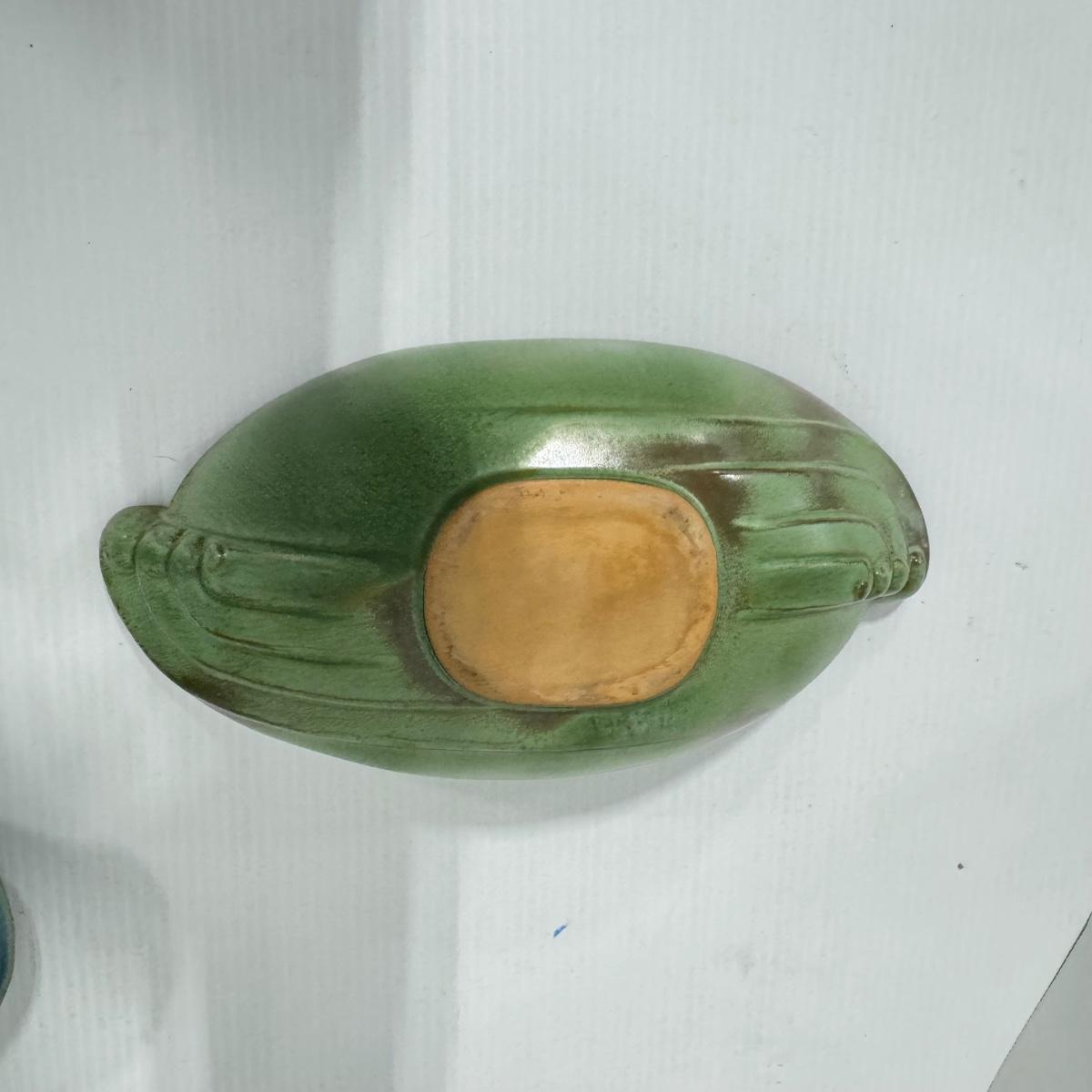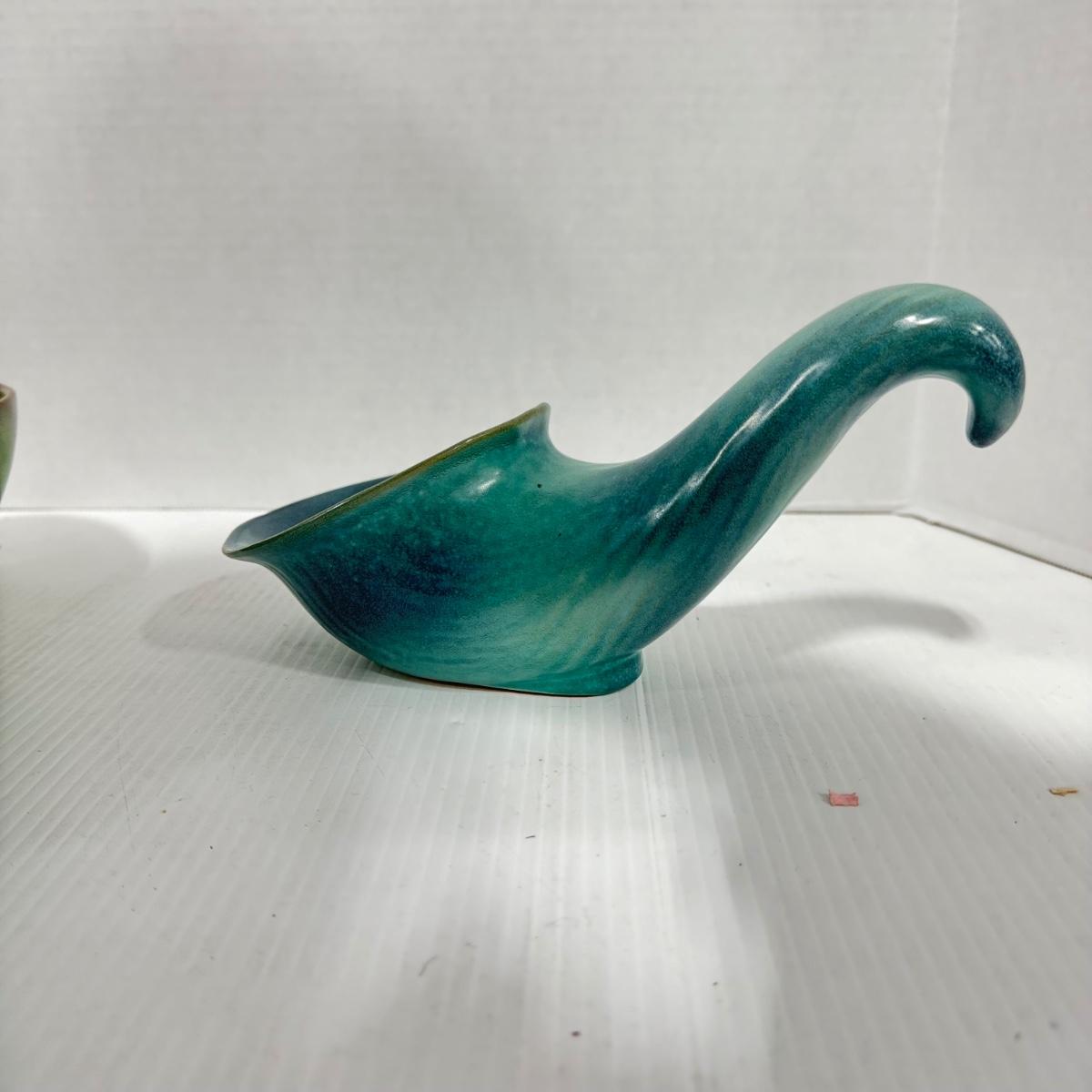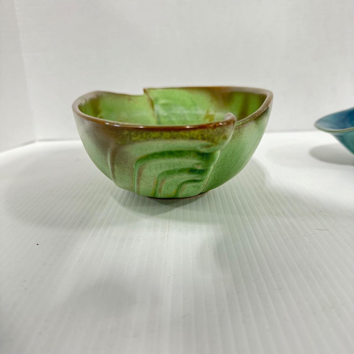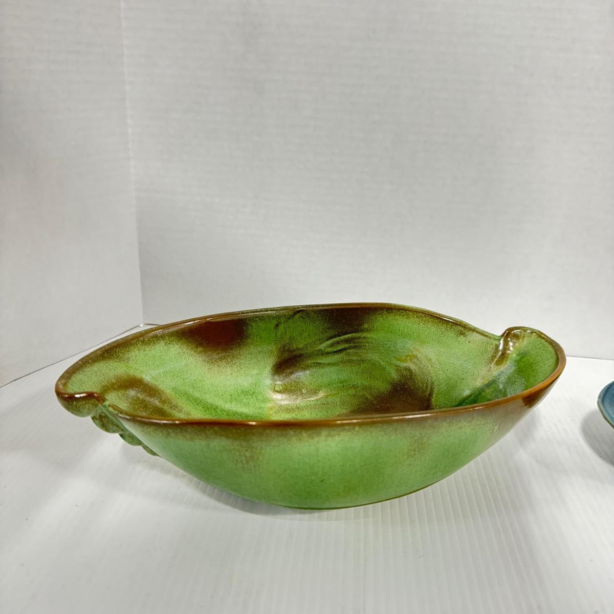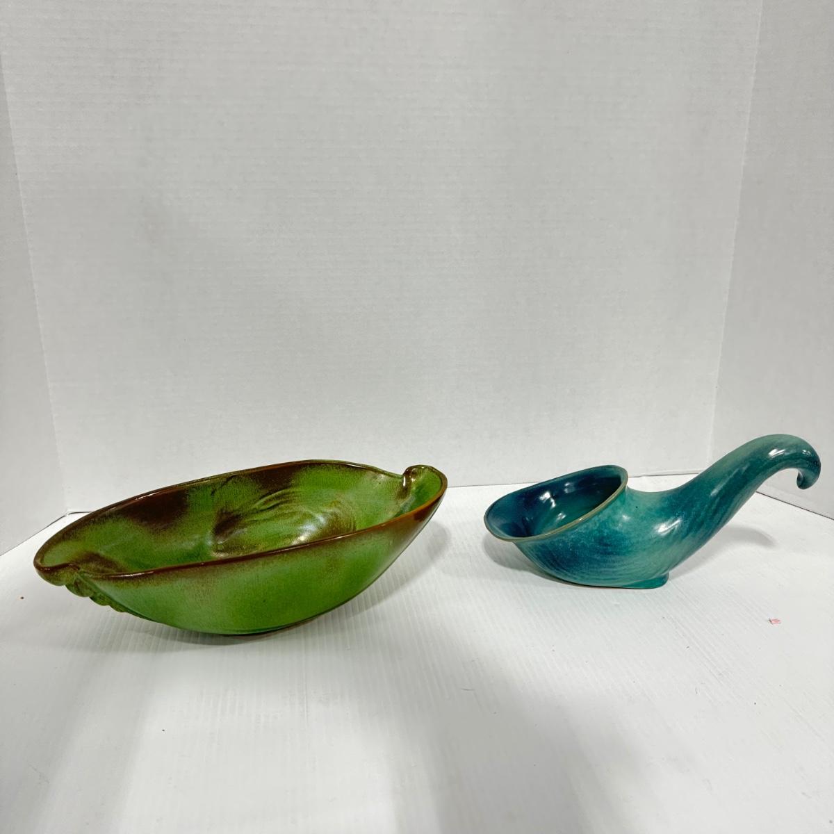 1023 Frankoma Green Bowl and Blue Cornucopia