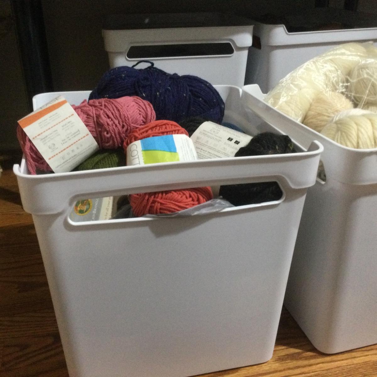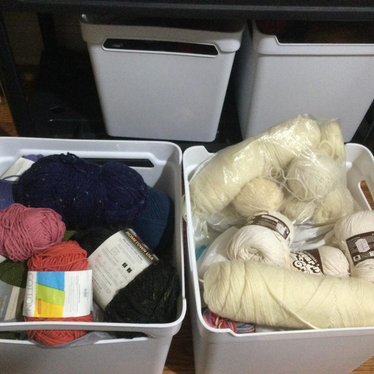 Lot contains various colors of yarn and different weights, there is sugar cream and cotton in the lot.