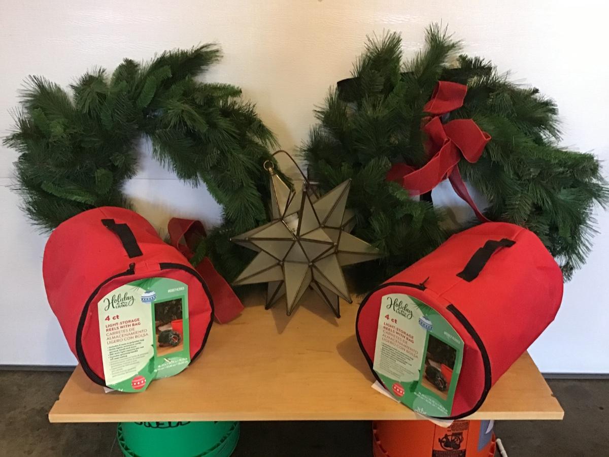 1024 - Christmas Lot - wreaths, elect. Star, light bags