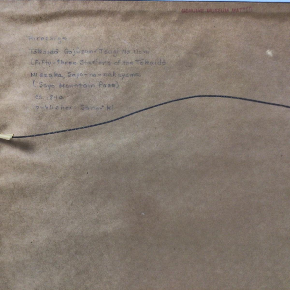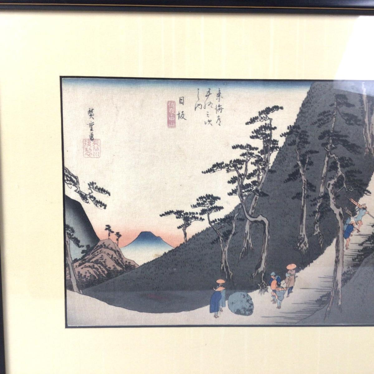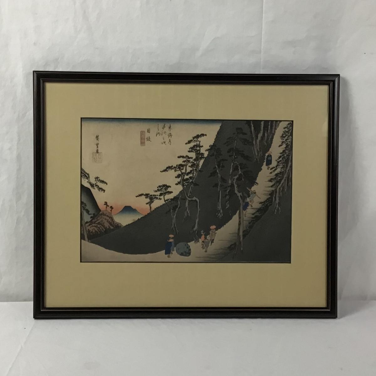 Hiroshige Ando, Tokaido Gojusan, Nissaka, “Sayo Mountain Pass”Woodblock Print on Arimatsu Cloth - 1840, Signed. Framed, silk mat boarder.