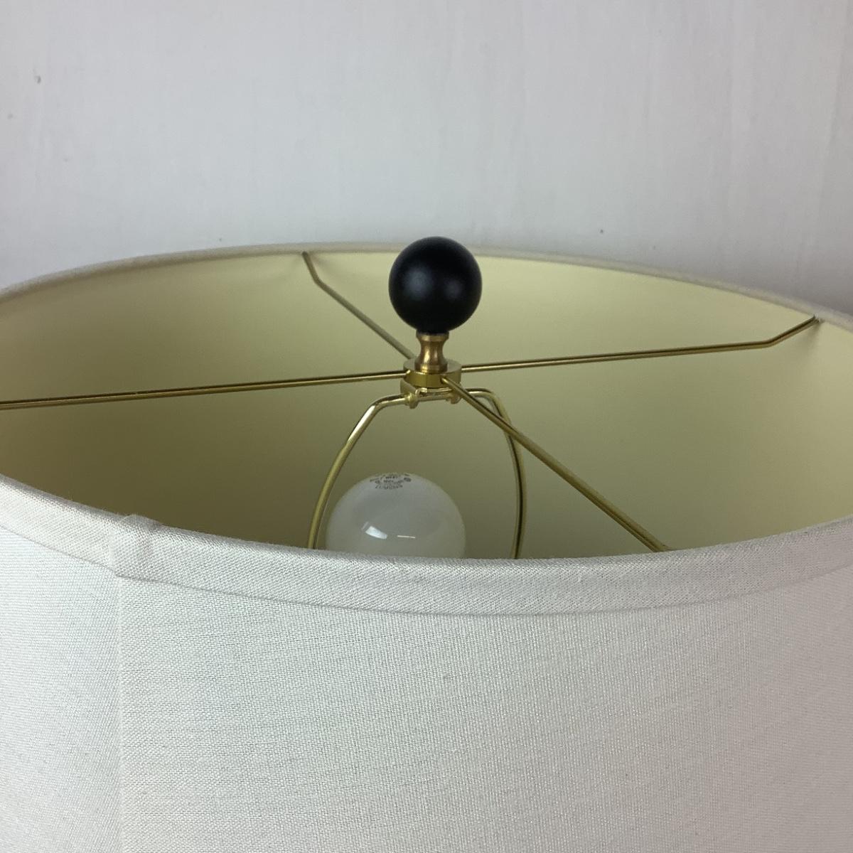 Ethan Allen Kenzie Black Cage Table Lamps. Made of Iron with Black Iron finish & Natural Linen Hardback Shades.