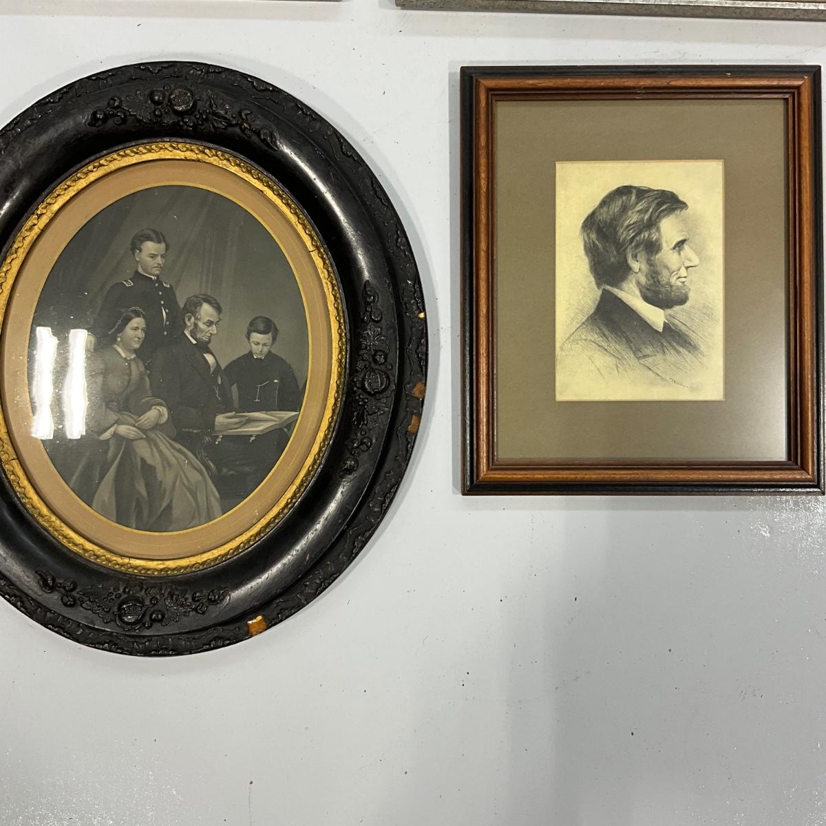 family picture in oval frame and president Lincoln over the years