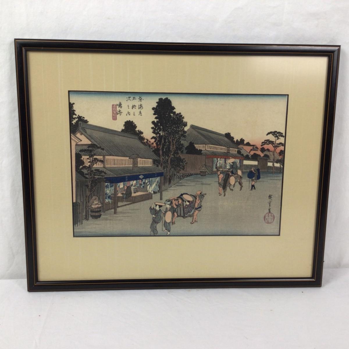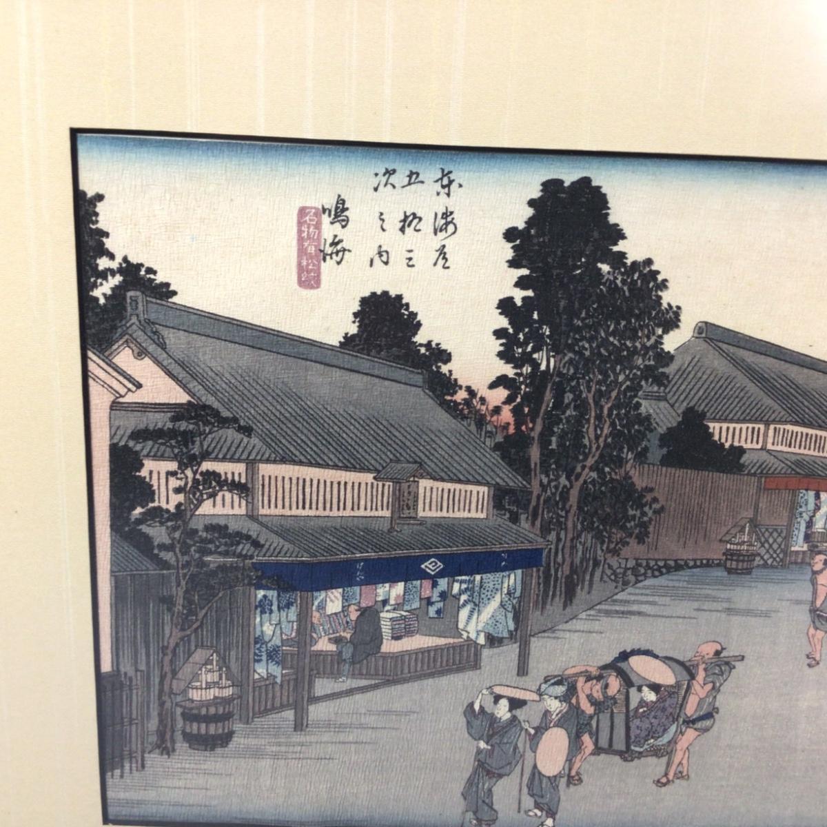 Tagawa Hiroshige No. 41-40th Station Namuri. Woodblock Print on Arimatsu Cloth-1840, Signed. “The Fifty-Three Stations of the Tokaido”. (Hoeido-Edition)