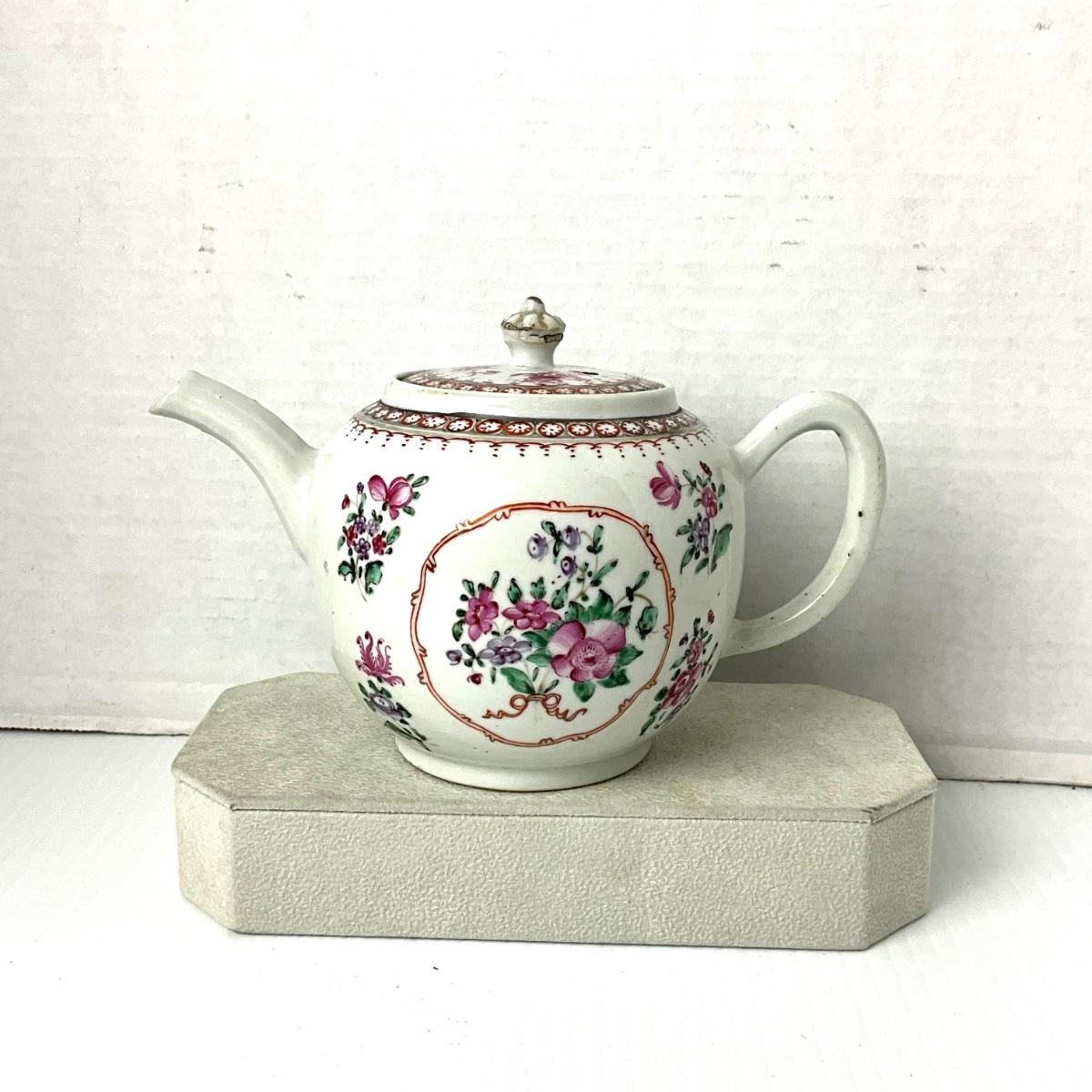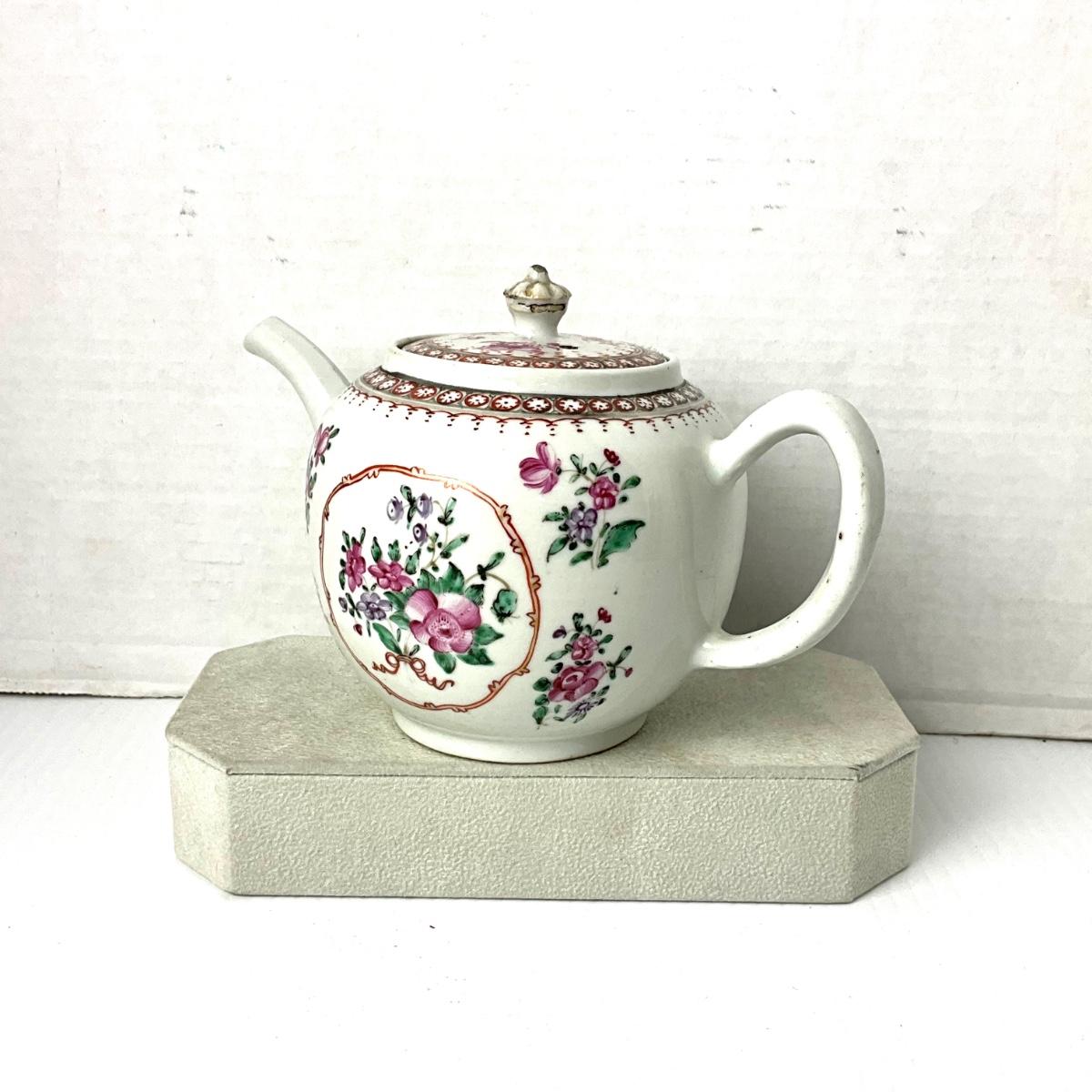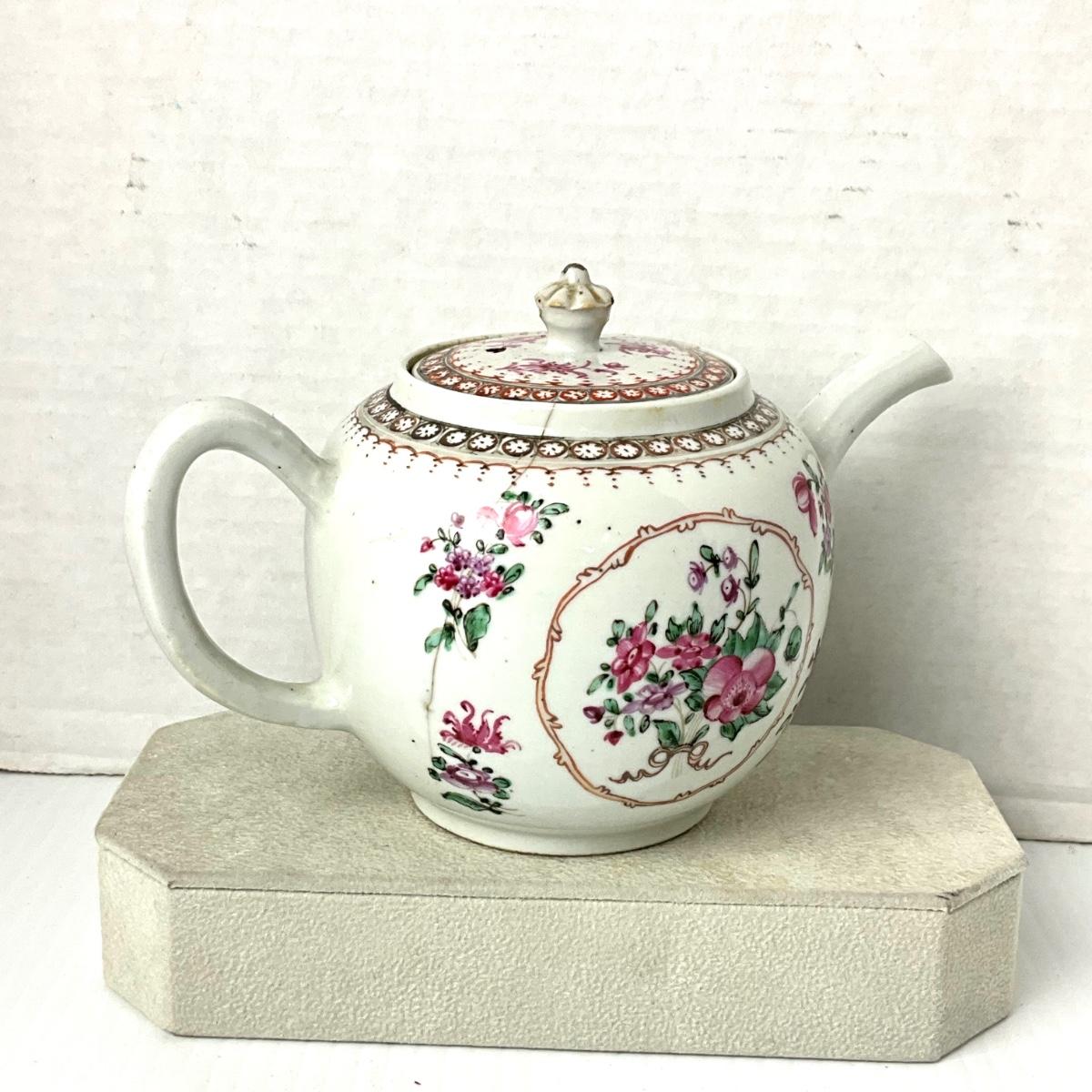 1026 Antique Chinese Export "Famille Rose" Teapot, Cups and Saucers  AS-IS