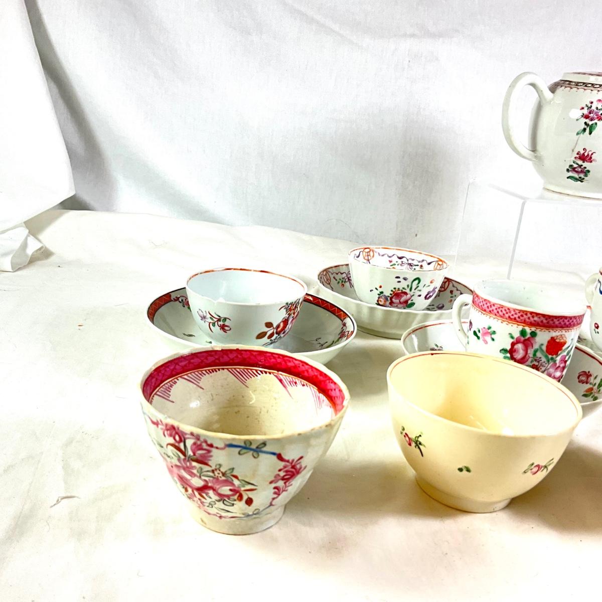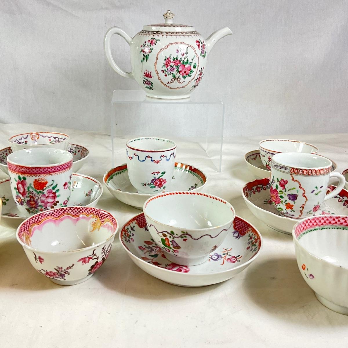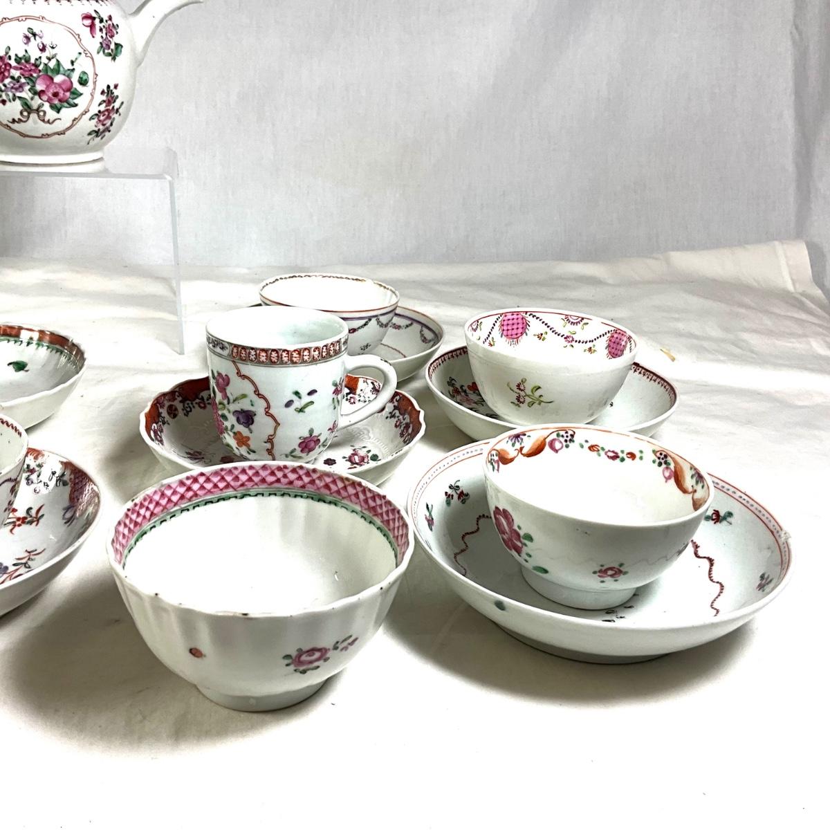 1026 Antique Chinese Export "Famille Rose" Teapot, Cups and Saucers AS-IS