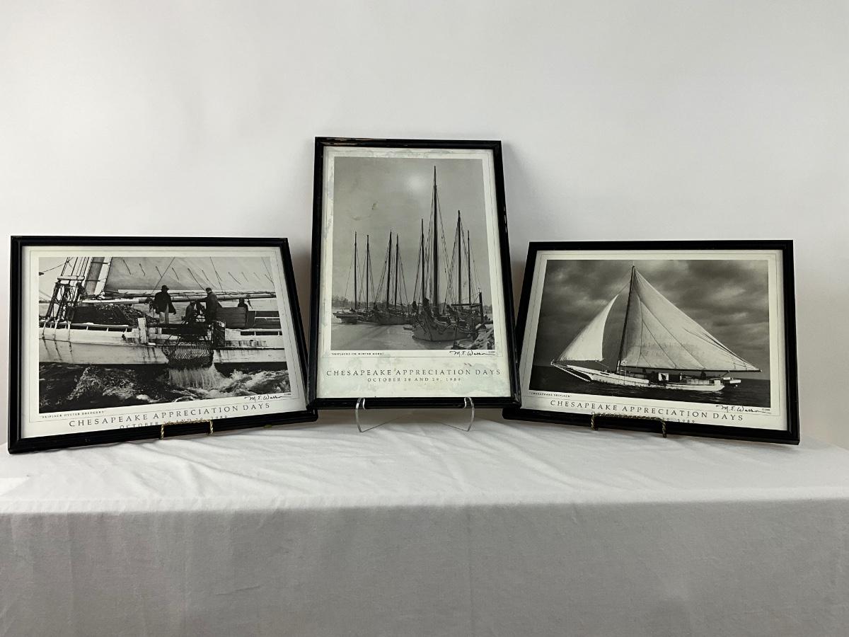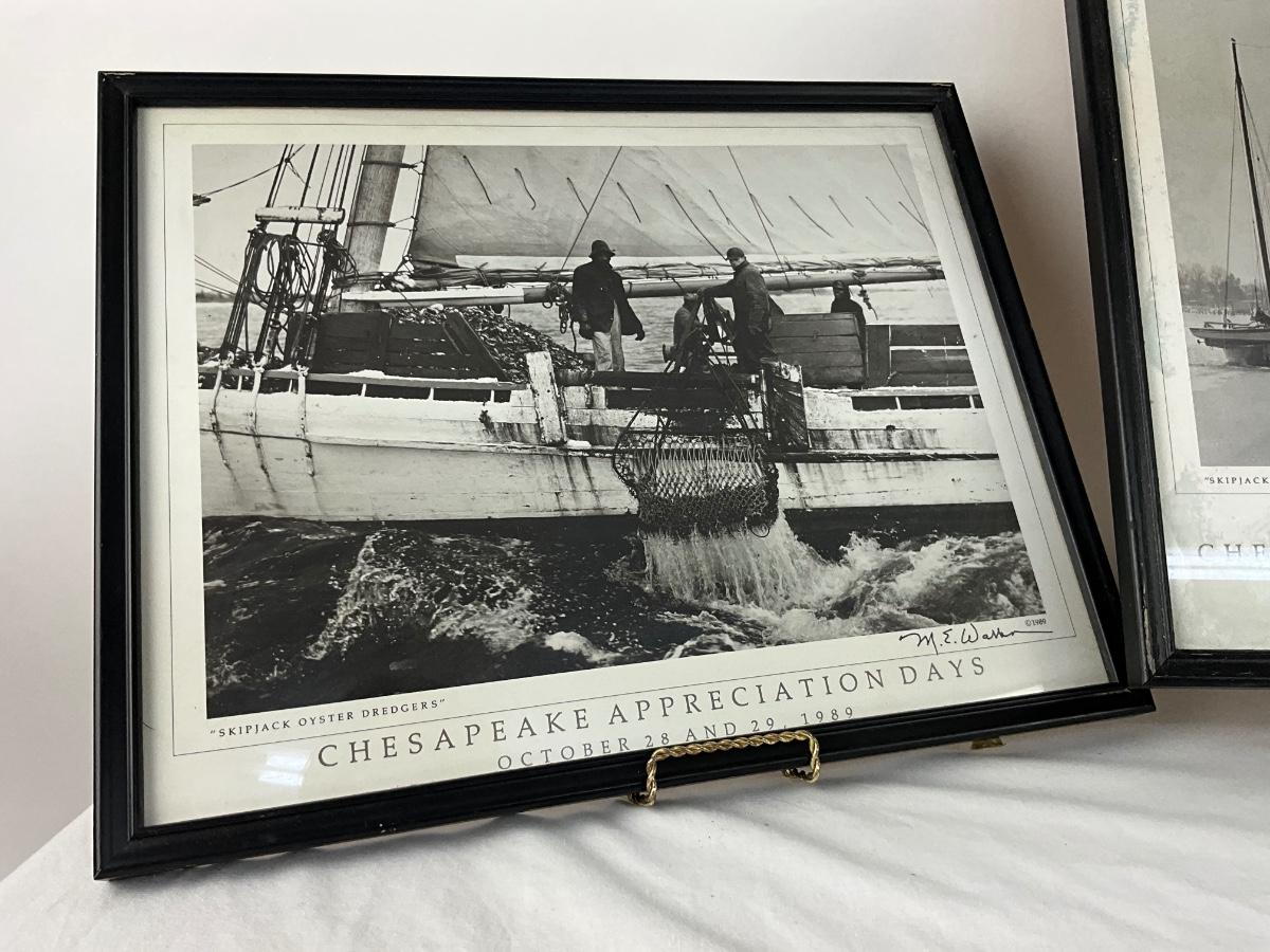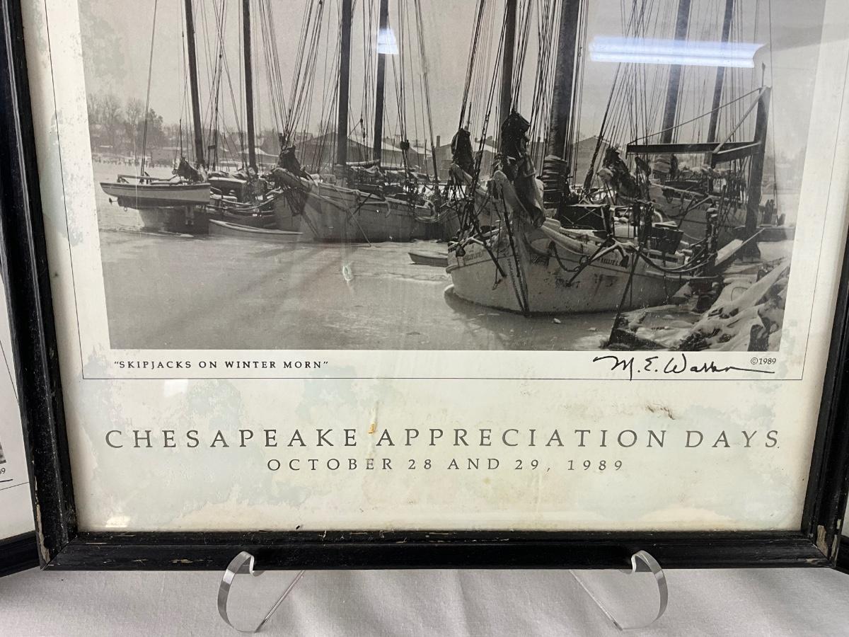 "Skipjack Oyster Dredgers" (16" wide x 13" high), "Skipjacks On Winter Morn" (19" high x 12.75" high), "Chesapeake Skipjack" (16" wide x 13" high)