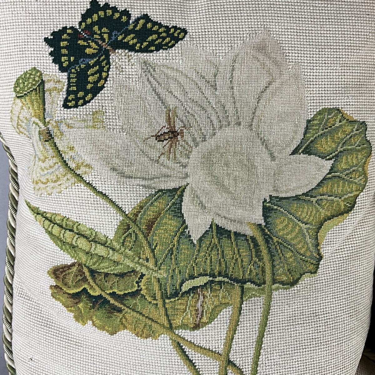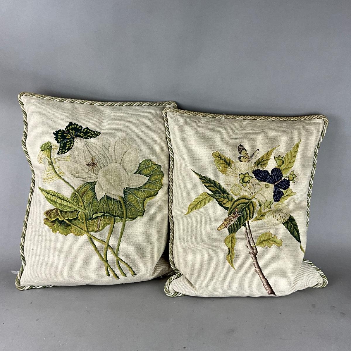 1028 Two Botanical Needlepoint Down Filled Accenrt Pillows