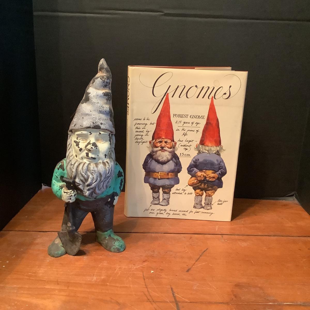 1028 Vintage Metal Garden Gnome with Book