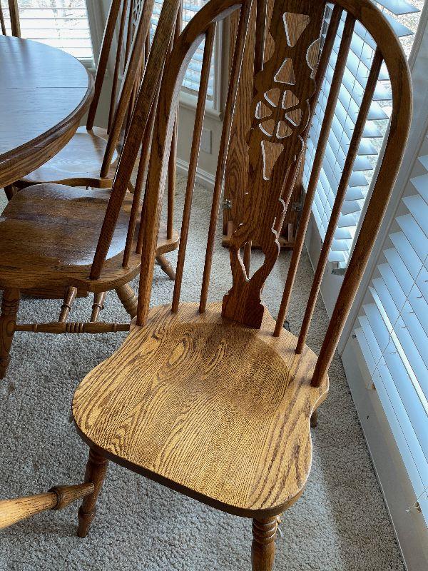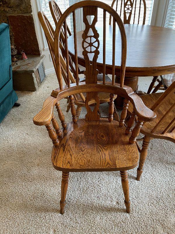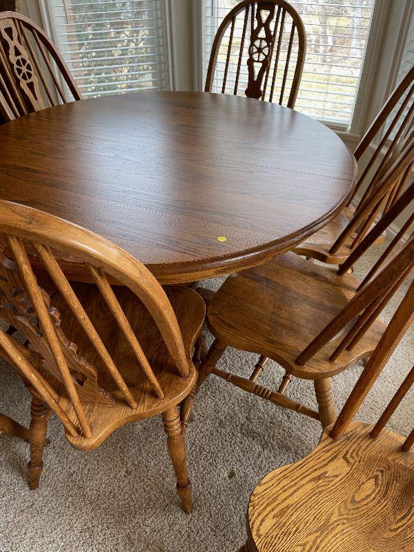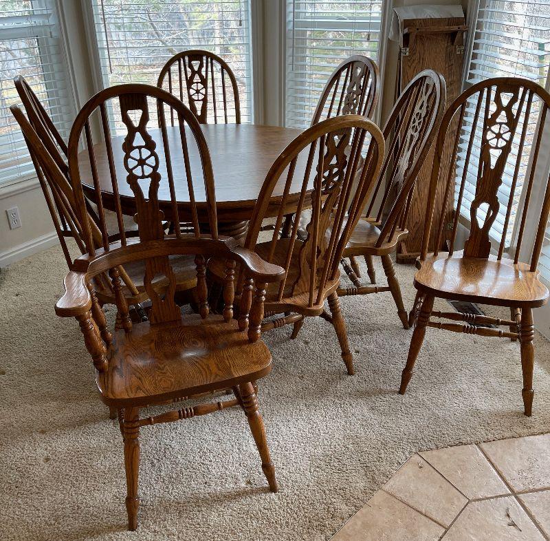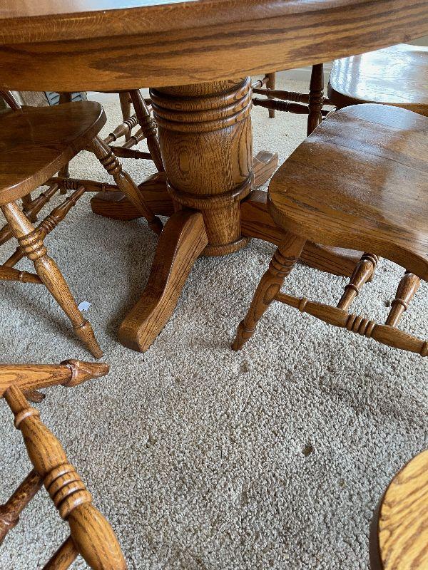 #103 48"Solid Oak Round Pedestal Table w/leaves and 8Chairs