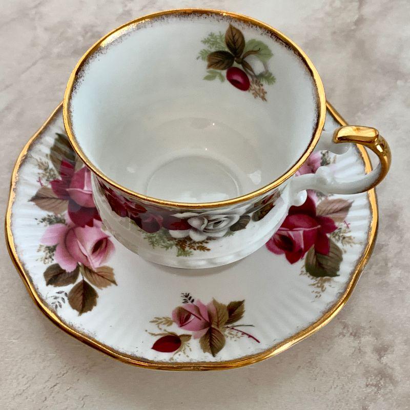 #103 ANTIQUE TEA CUP & SAUCER ELIZABETHAN FINE BONE CHINA