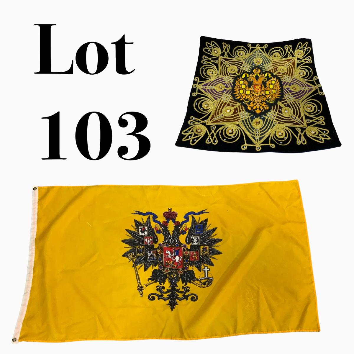 From the Estate of Peter and Alice Radovanovich: A Byzantine Empire Crest sewn atop an ornate velvet pillow case. Pillow Case, when laid flat measures 15.5” square. // Flag of the Byzantine Empire. Flag measures 35” x 60”. Flag is in excellent condition with no rips or tears. Please see photos for details and condition. ::: Shipping is available on this lot. If you require shipping you must let us know at the close of the auction. We will coordinate with you after the item has been won. Shipping fees will include insurance up to or exceeding the value of all items being mailed. If you have any questions regarding this lot please contact the auctioneer either via this website, by direct email or by phone. PICK UP TIMES and other important information can be found in the TERMS and DESCRIPTION of the auction. Please take a look for pertinent information. Thanks!
