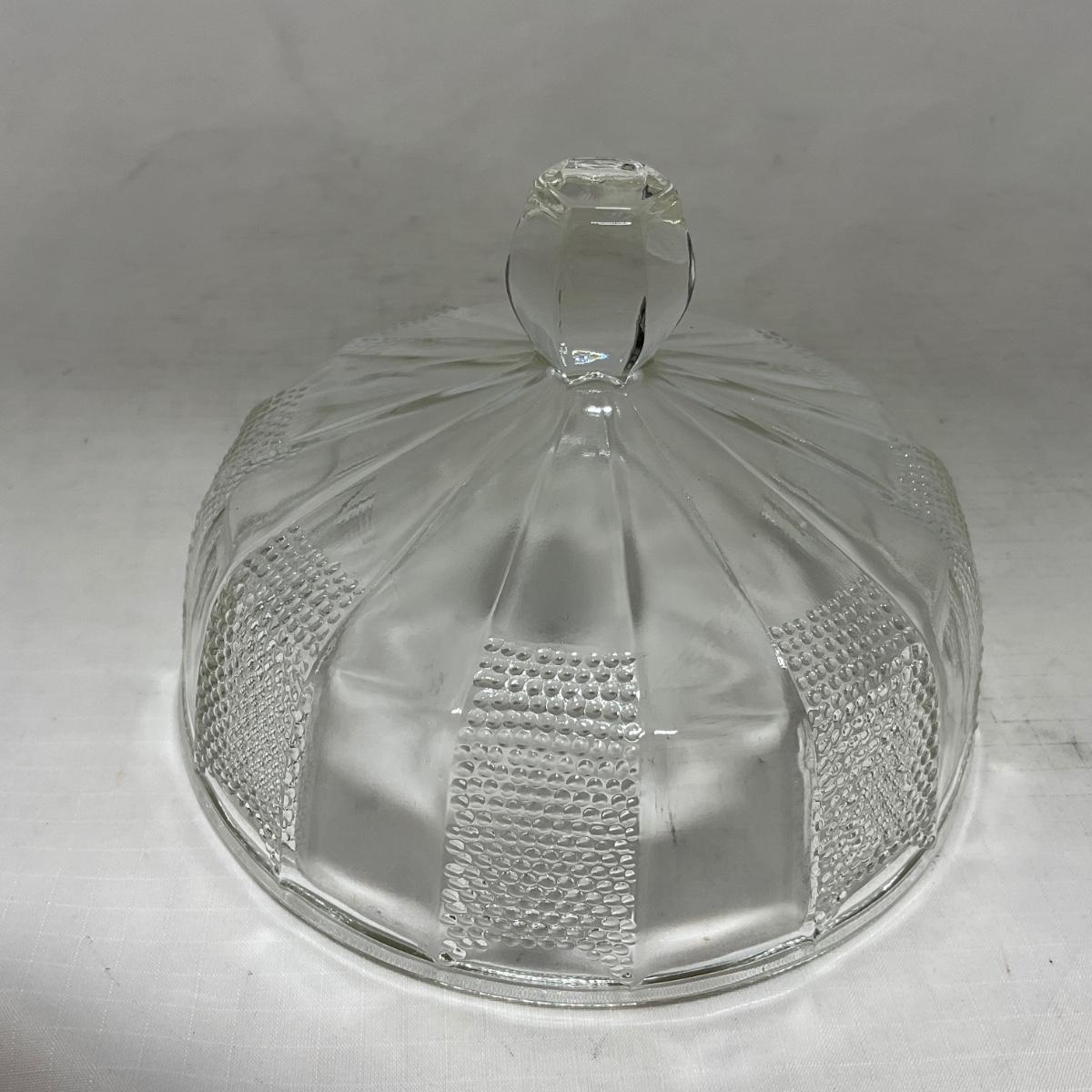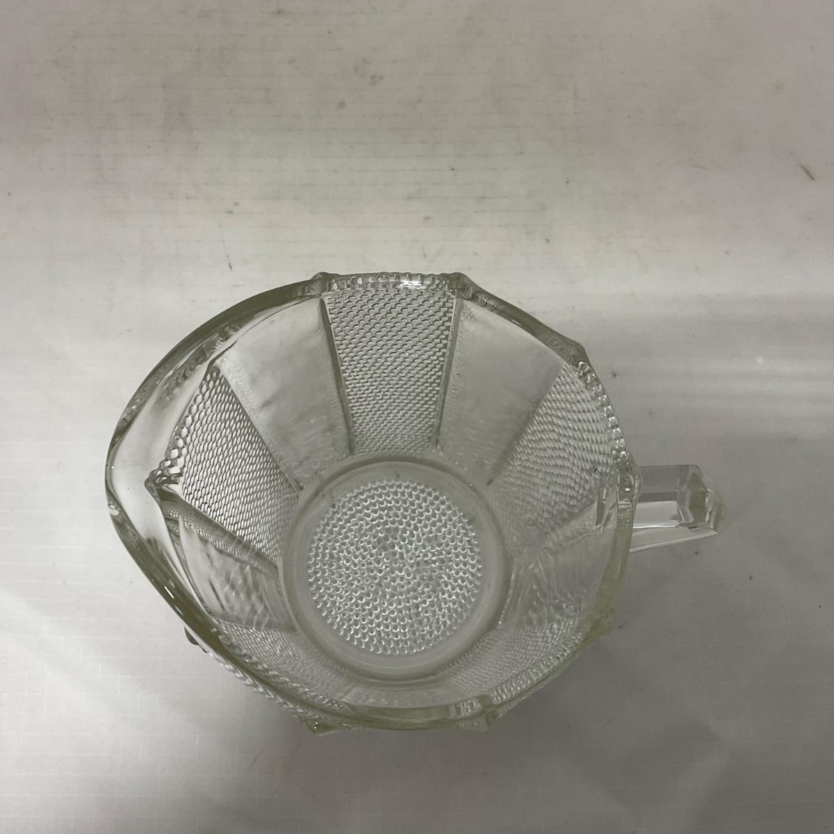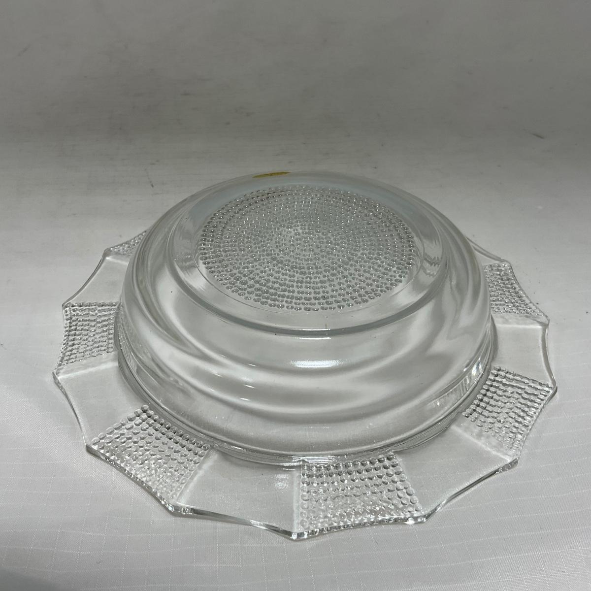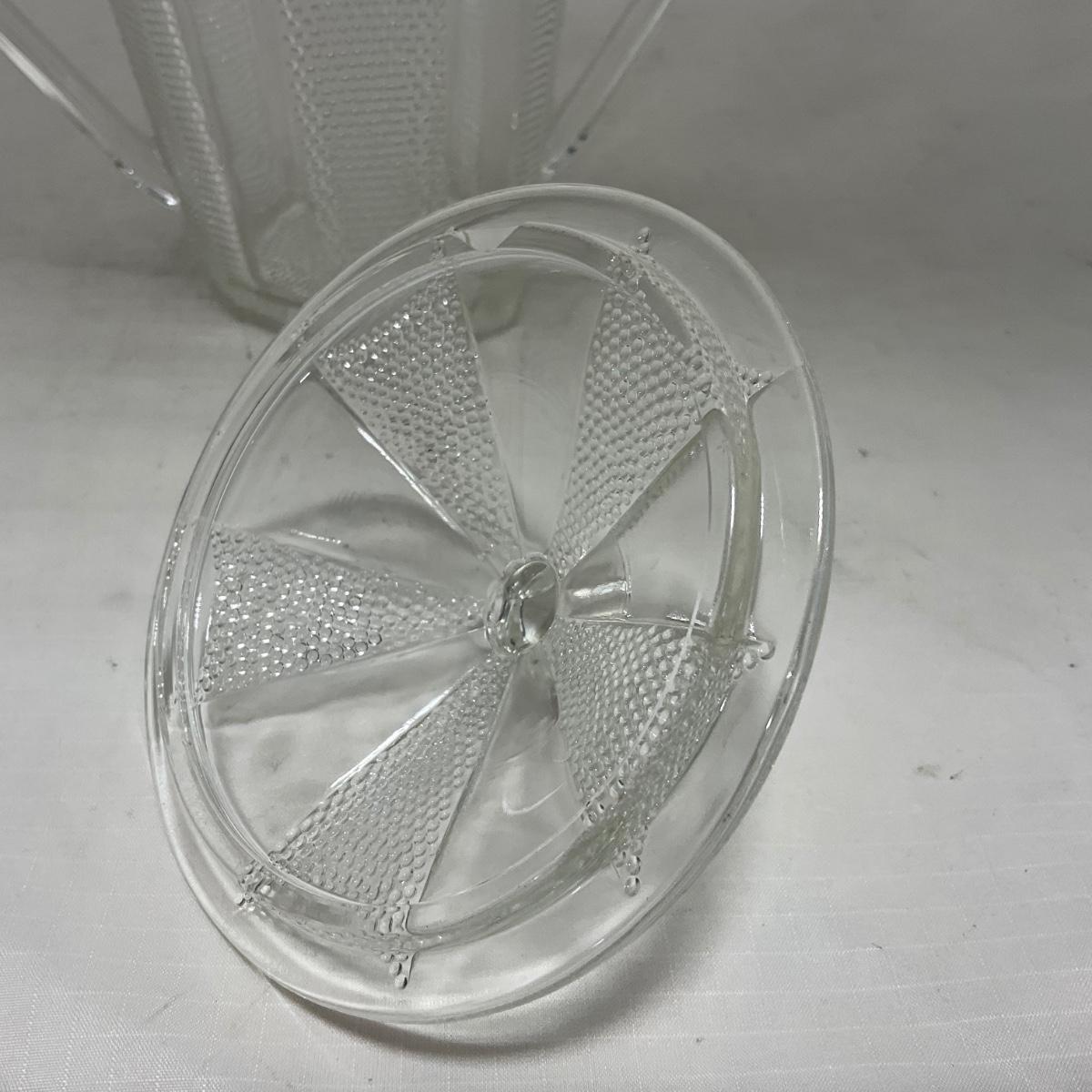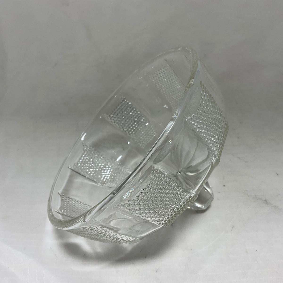 Five pieces total this is a clear dotted pattern glass covered butter dish, covered sugar dish and creamer. This set is well loved and has some small damage and chip along the inside where the lid meets the base. Please see photos for details and condition. ::: Shipping is available on this lot. If you require shipping you must let us know at the close of the auction. We will coordinate with you after the item has been won. Shipping fees will include insurance up to or exceeding the value of all items being mailed. If you have any questions regarding this lot please contact the auctioneer either via this website, by direct email or by phone. PICK UP TIMES and other important information can be found in the TERMS and DESCRIPTION of the auction. Please take a look for pertinent information. Thanks!