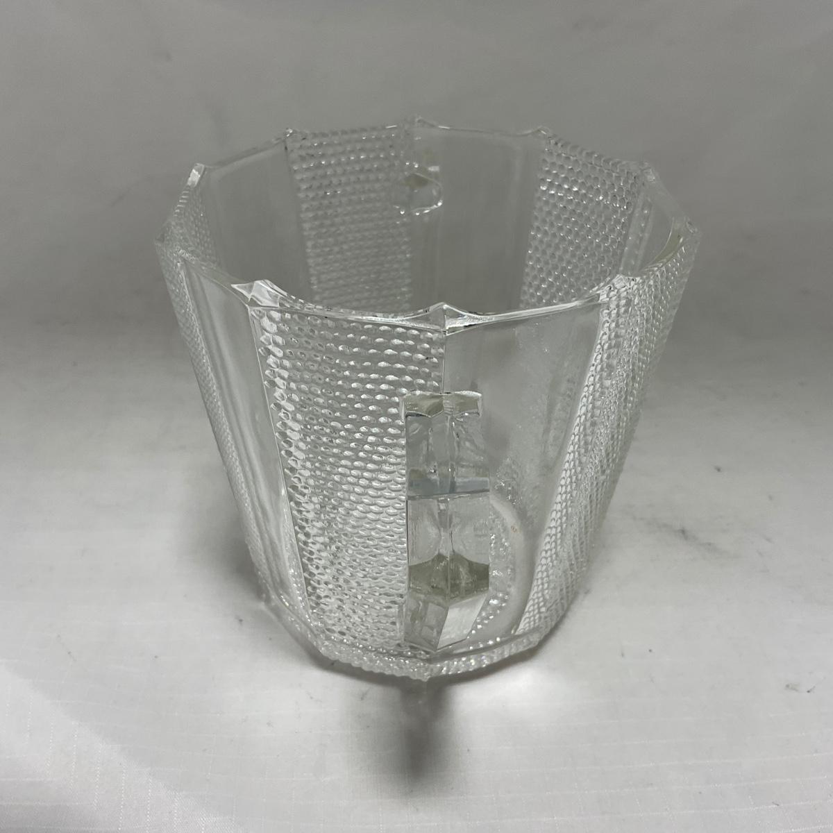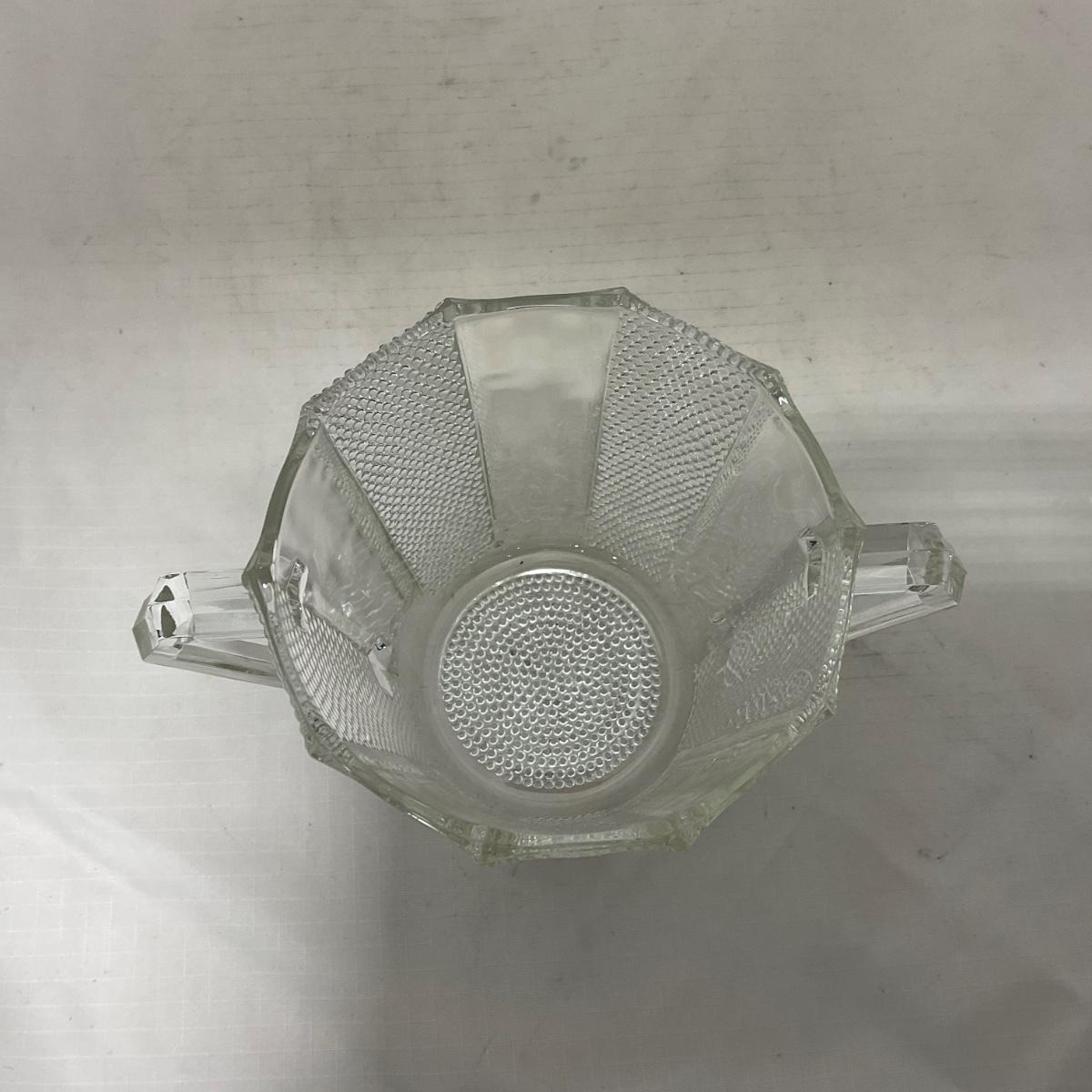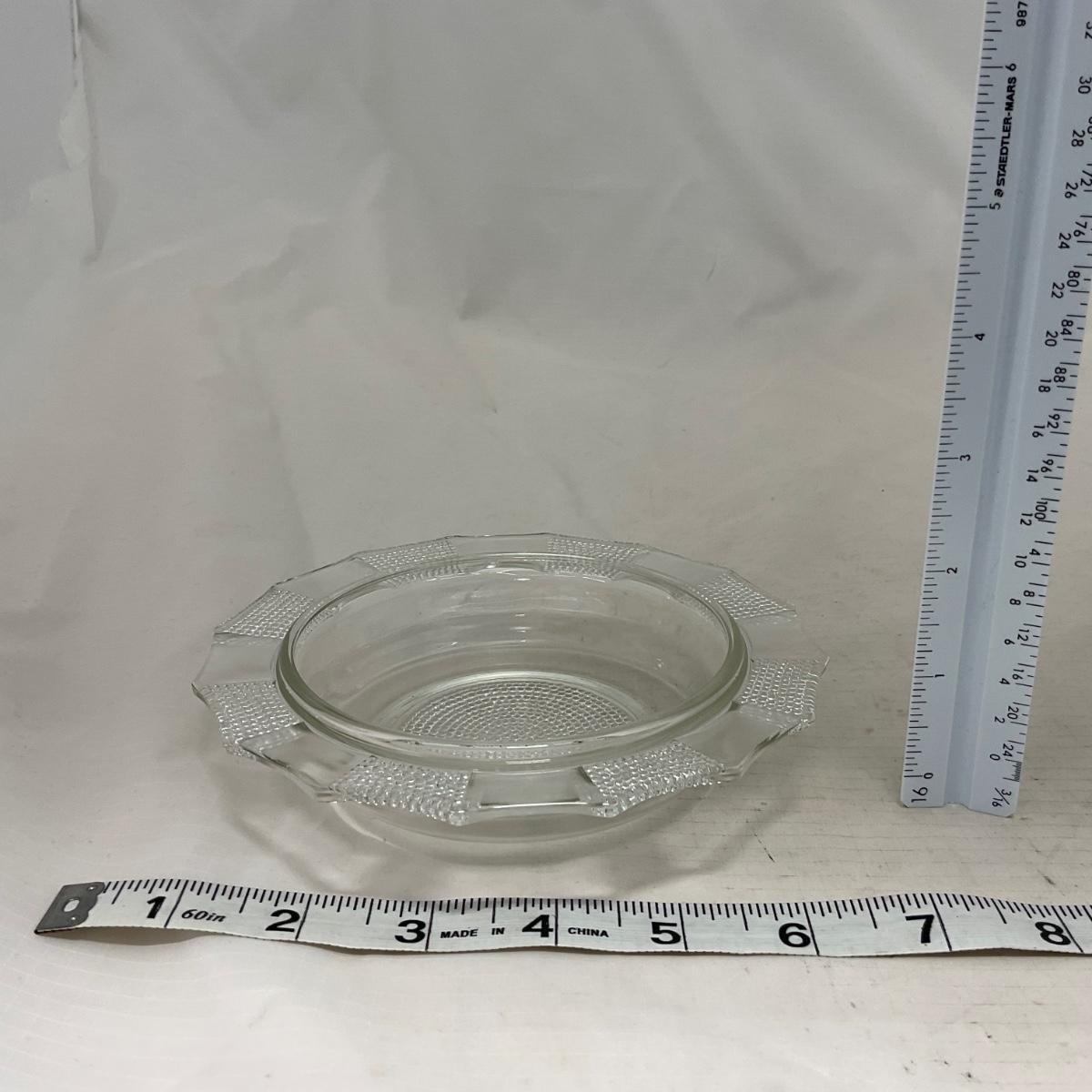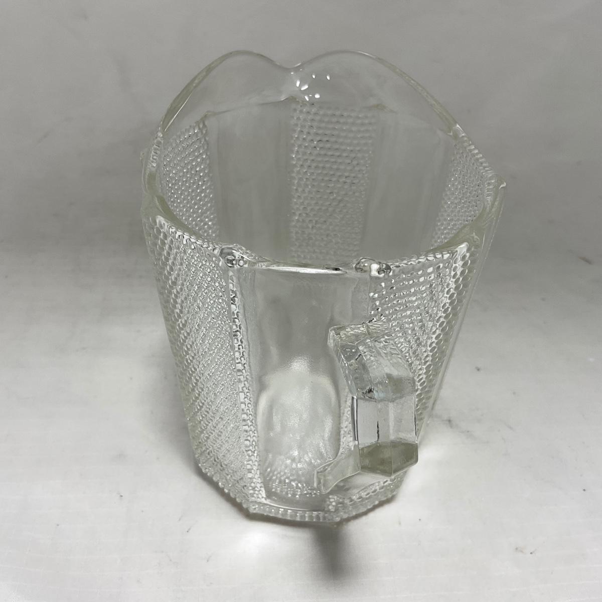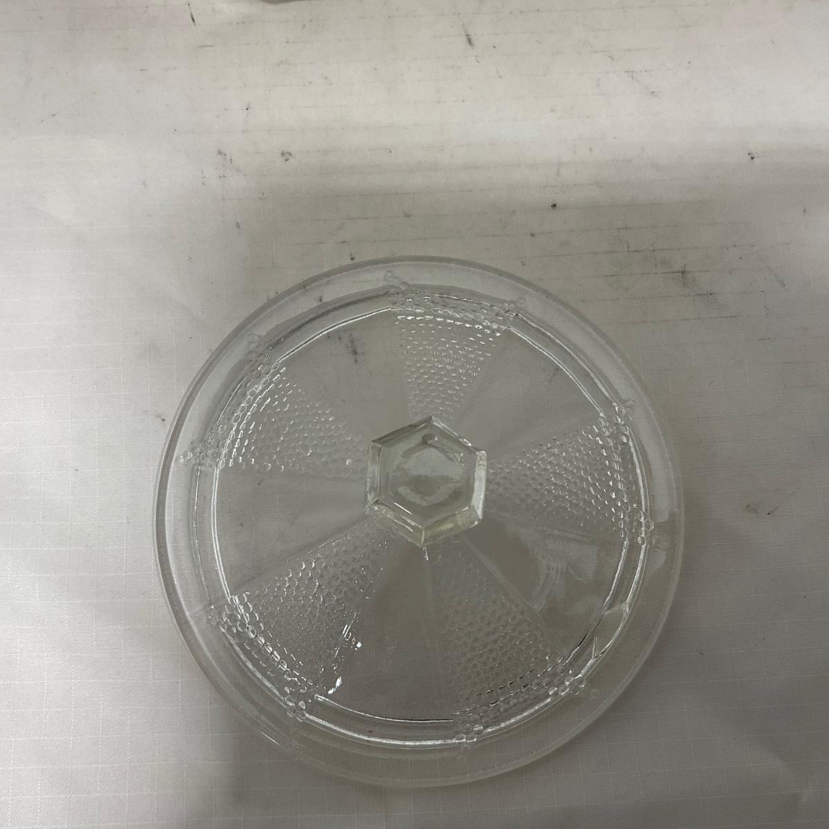 Five pieces total this is a clear dotted pattern glass covered butter dish, covered sugar dish and creamer. This set is well loved and has some small damage and chip along the inside where the lid meets the base. Please see photos for details and condition. ::: Shipping is available on this lot. If you require shipping you must let us know at the close of the auction. We will coordinate with you after the item has been won. Shipping fees will include insurance up to or exceeding the value of all items being mailed. If you have any questions regarding this lot please contact the auctioneer either via this website, by direct email or by phone. PICK UP TIMES and other important information can be found in the TERMS and DESCRIPTION of the auction. Please take a look for pertinent information. Thanks!