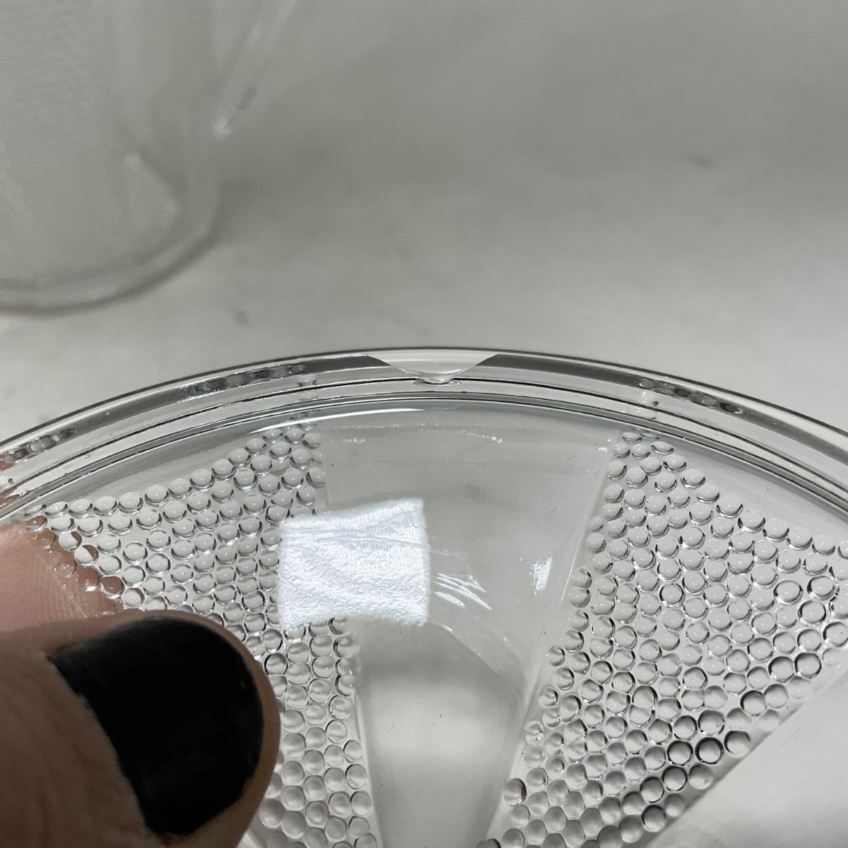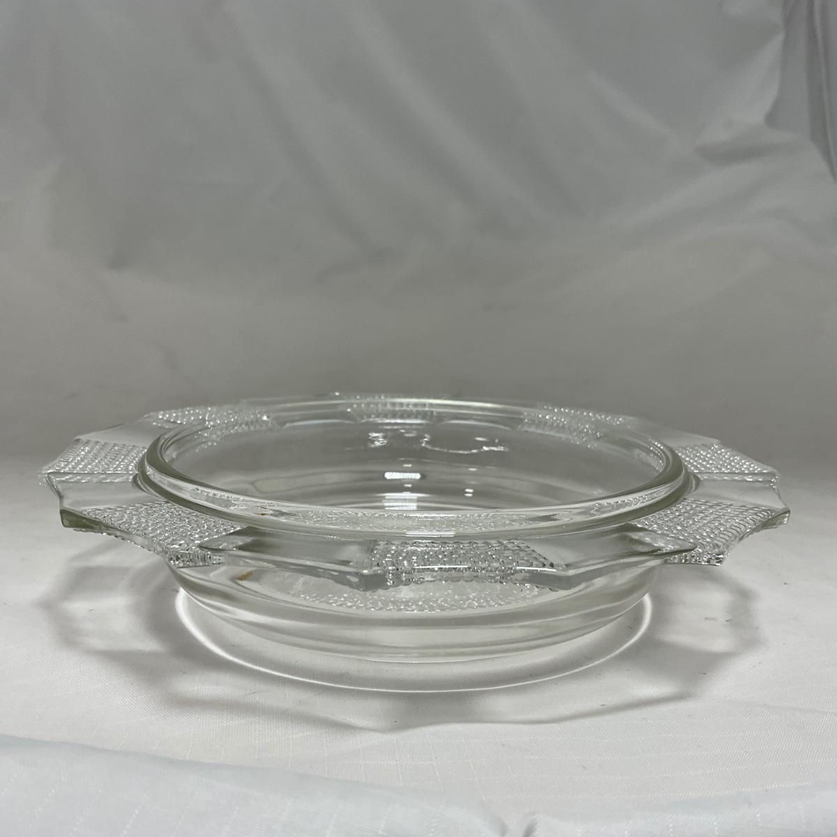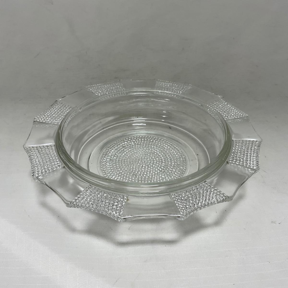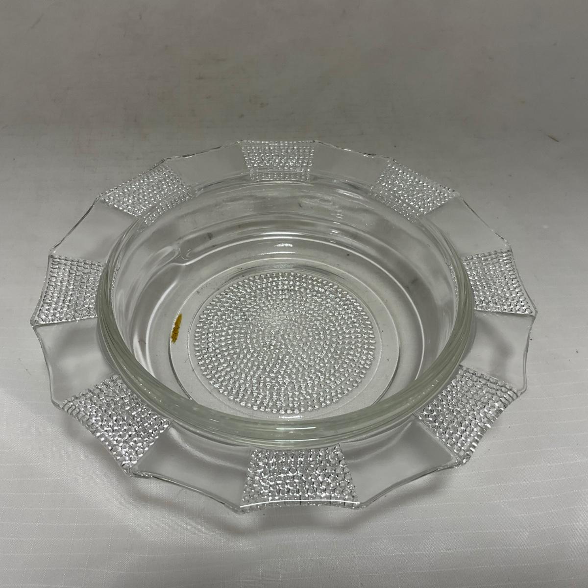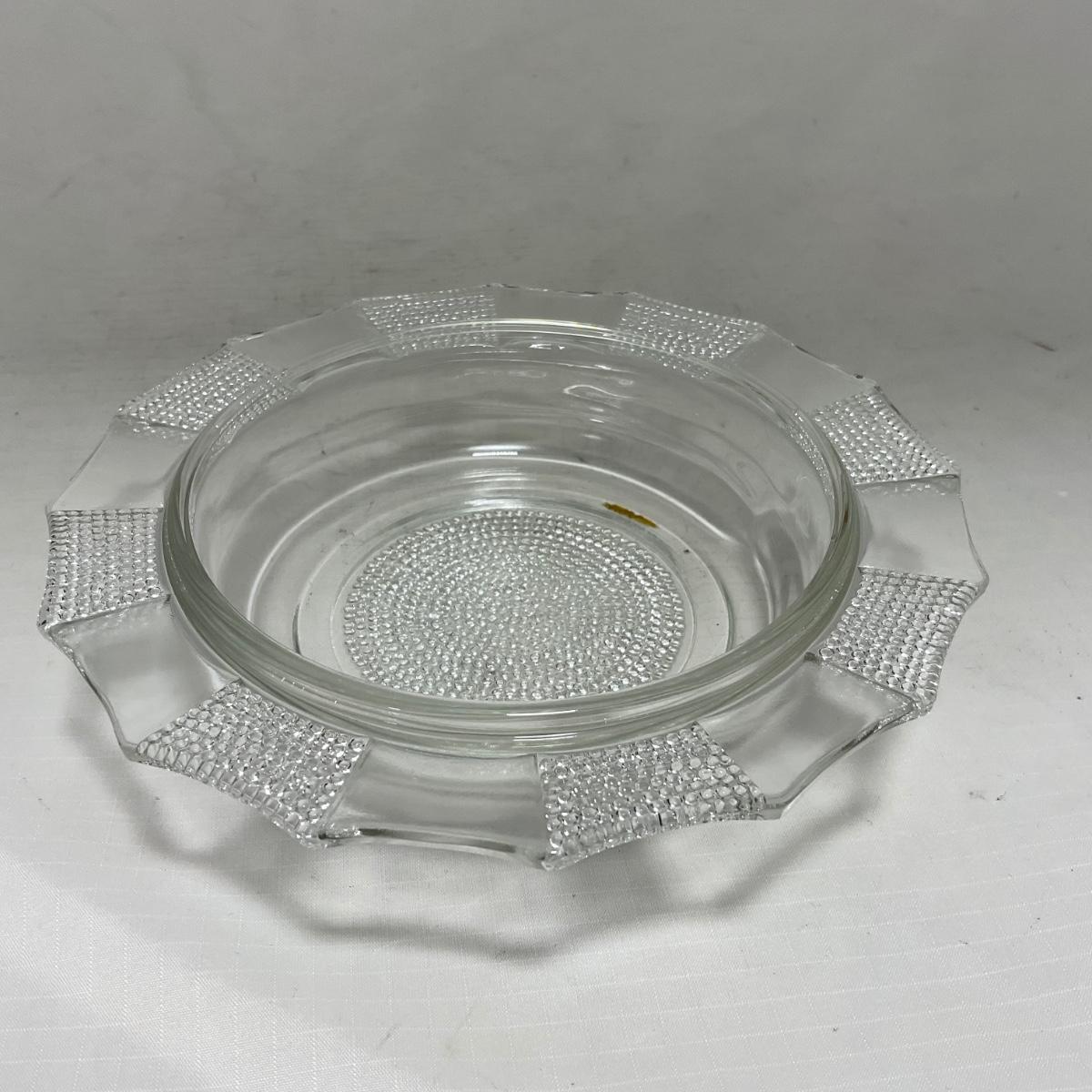 Five pieces total this is a clear dotted pattern glass covered butter dish, covered sugar dish and creamer. This set is well loved and has some small damage and chip along the inside where the lid meets the base. Please see photos for details and condition. ::: Shipping is available on this lot. If you require shipping you must let us know at the close of the auction. We will coordinate with you after the item has been won. Shipping fees will include insurance up to or exceeding the value of all items being mailed. If you have any questions regarding this lot please contact the auctioneer either via this website, by direct email or by phone. PICK UP TIMES and other important information can be found in the TERMS and DESCRIPTION of the auction. Please take a look for pertinent information. Thanks!