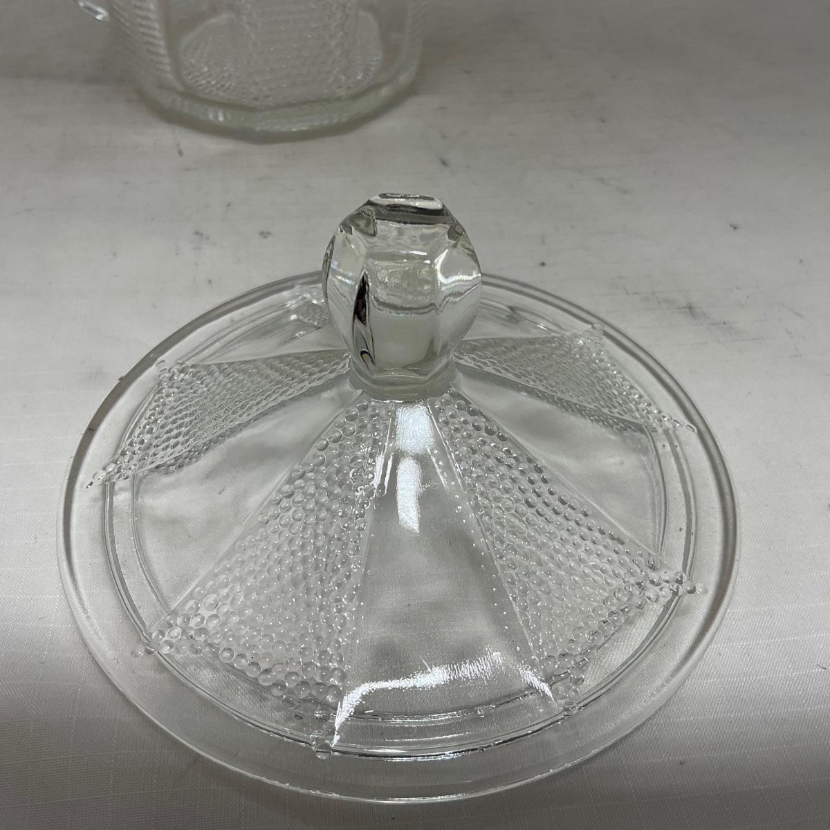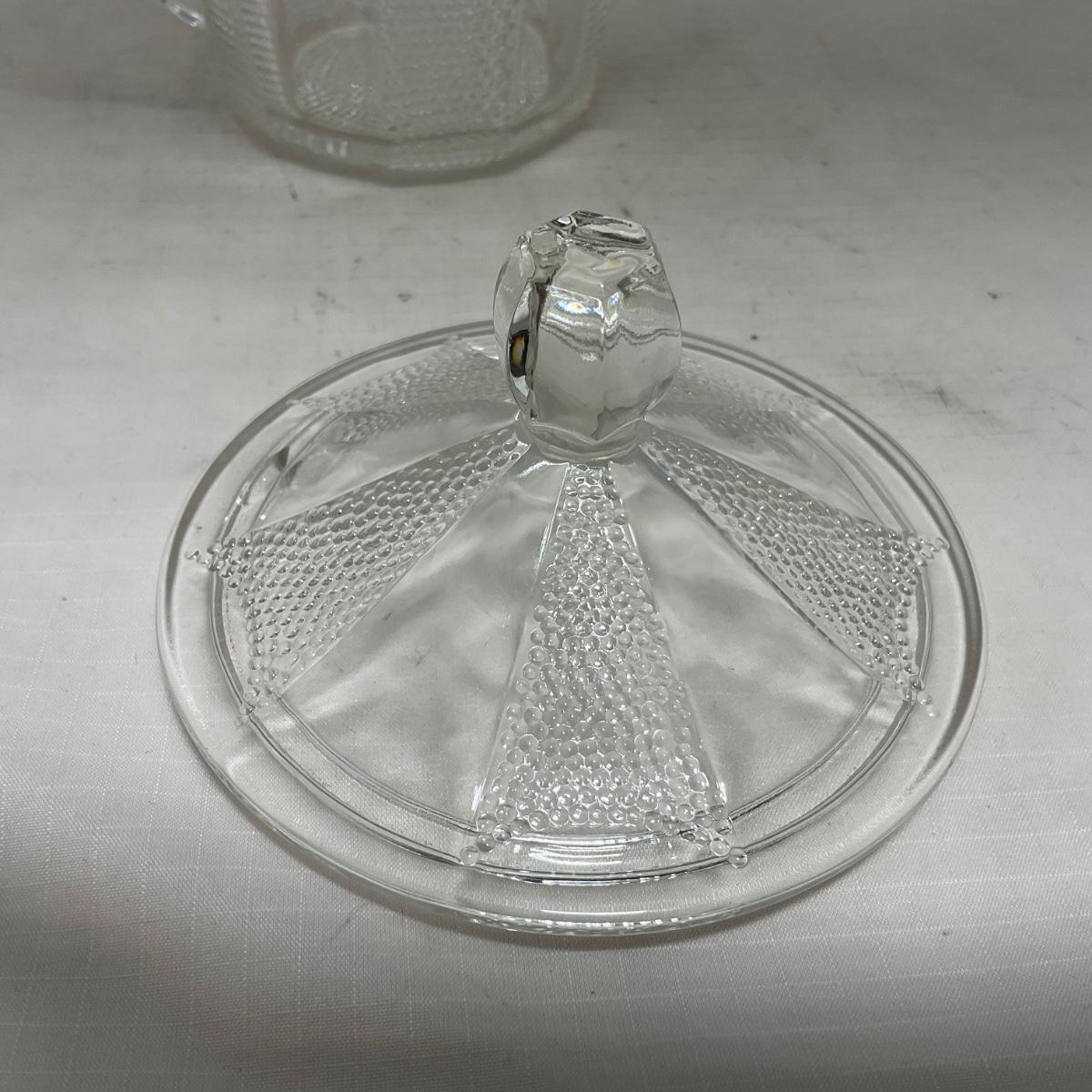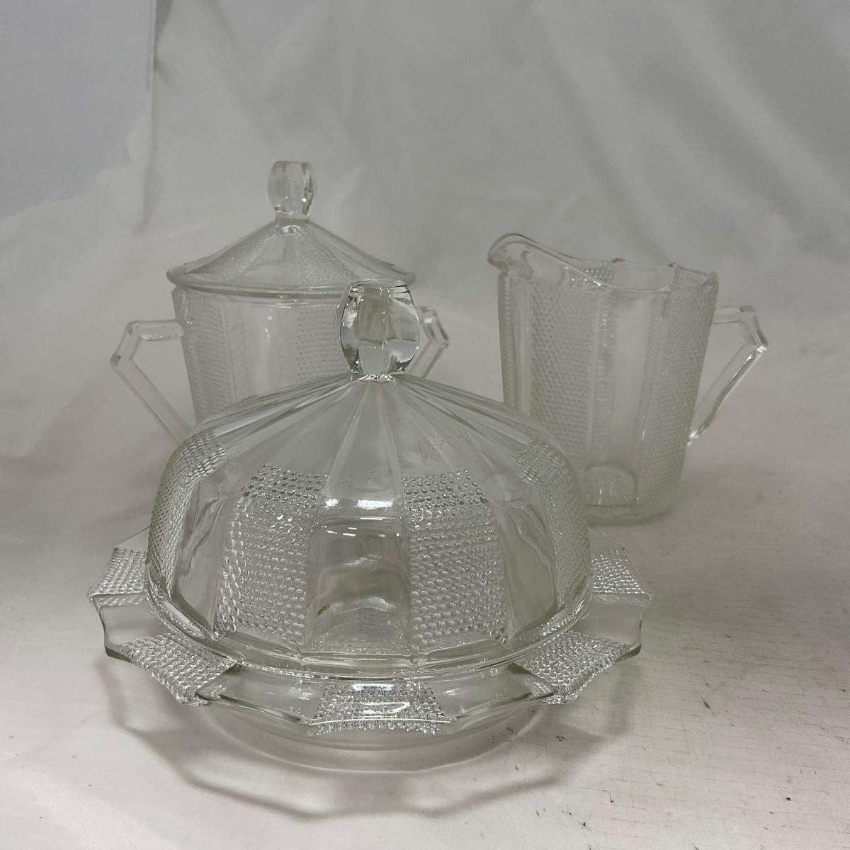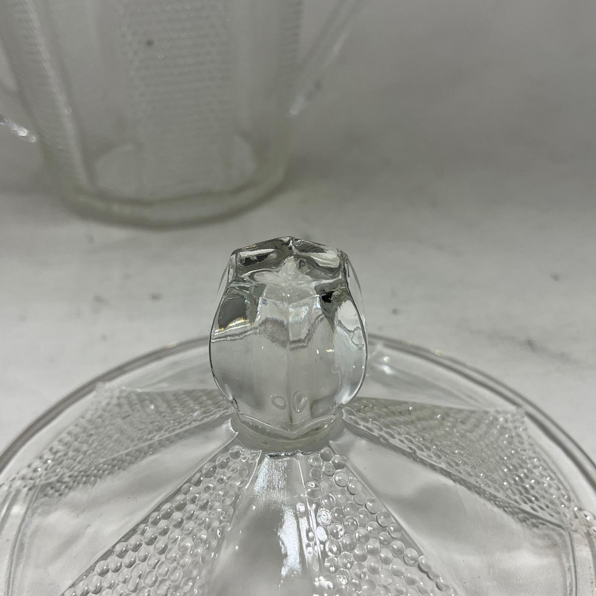 -103- Clear Glass | Dotted Pattern | Covered Butter Dish | Covered Sugar & Creamer