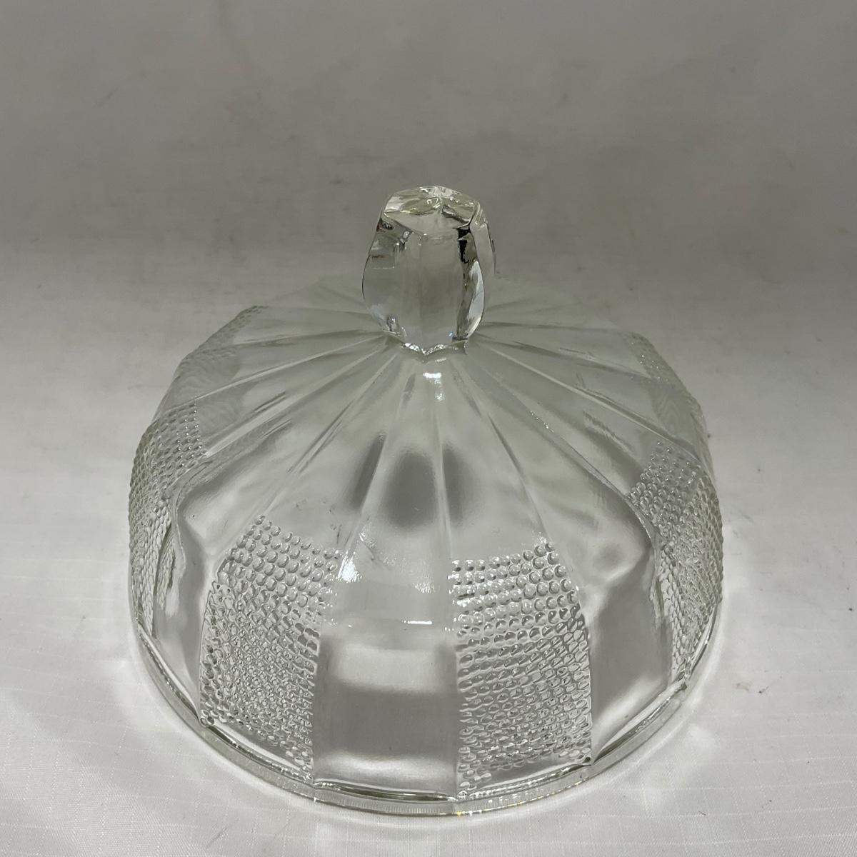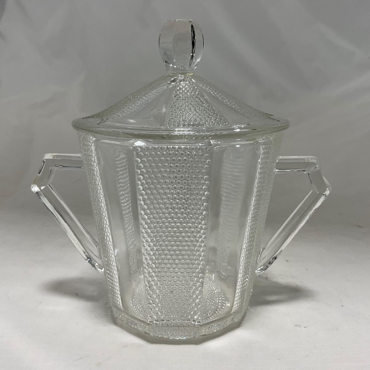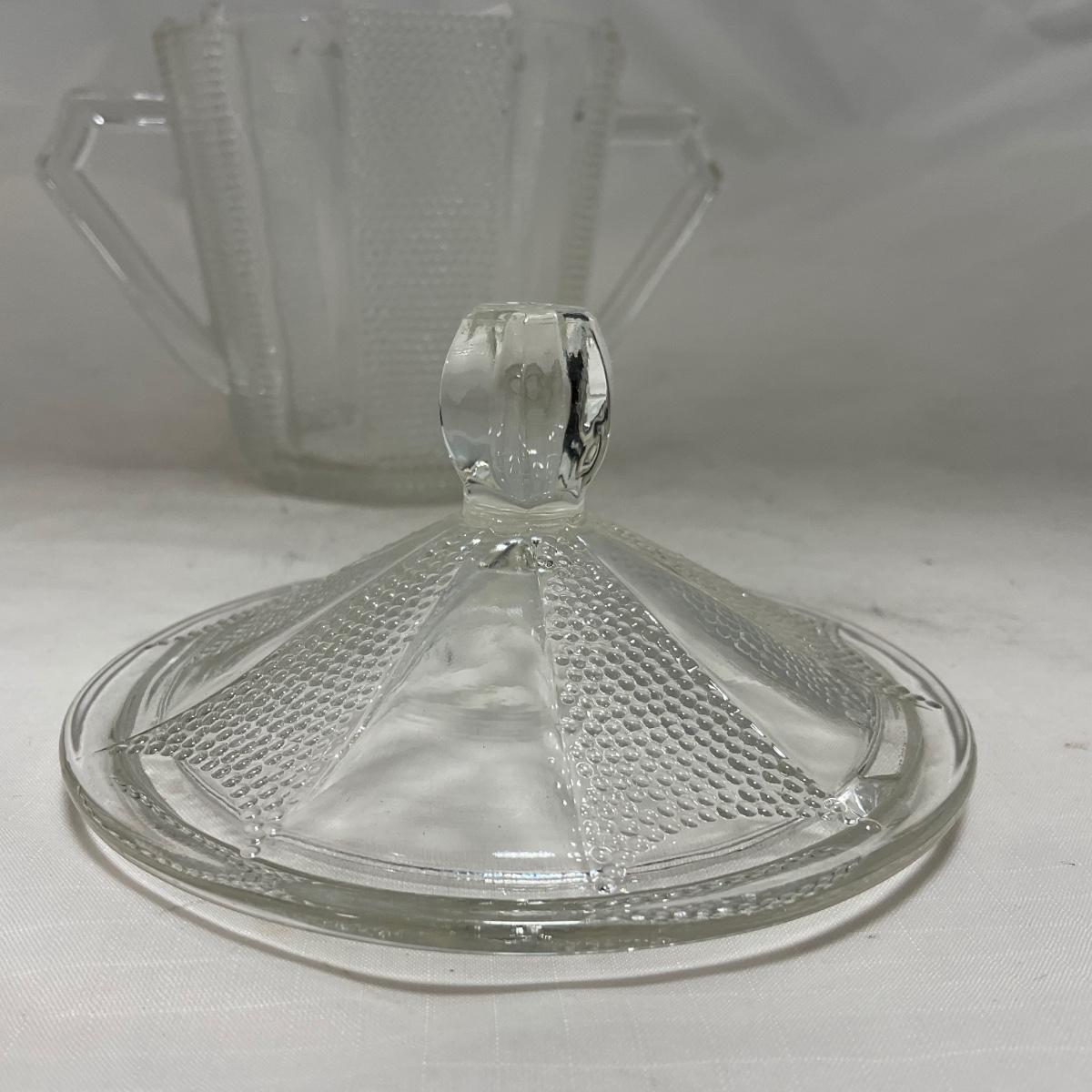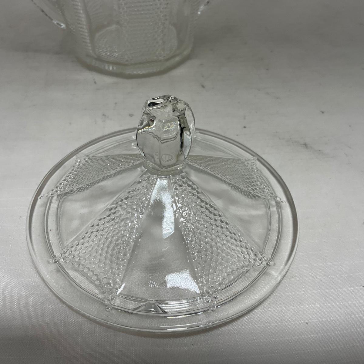 -103- Clear Glass | Dotted Pattern | Covered Butter Dish | Covered Sugar & Creamer