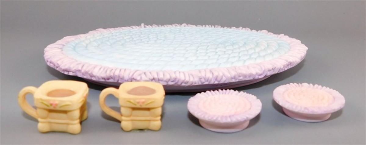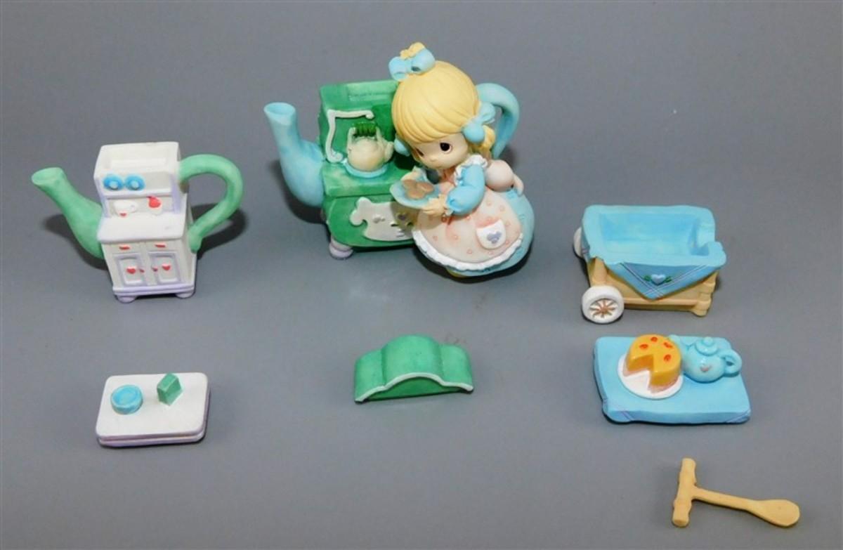 103 Enesco Precious Moments 1998 Mini Tea Set - Kitchen Theme - 5 in plate