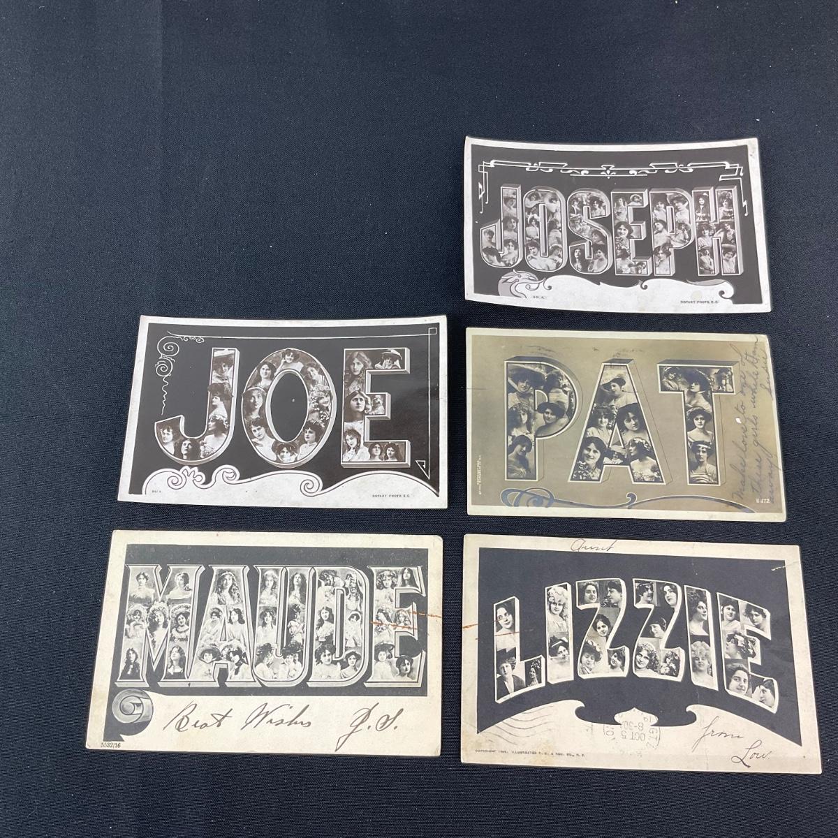 Five assorted black and white name postcards. Please see photos for details and condition. Any condition statement is given as a courtesy to a client, is an opinion, and should not be treated as a statement of fact. Reference to condition written, oral or within a condition report shall not be regarded as a full account of condition and may not include all defects, alterations, or restorations. Absence of a condition report does not imply a lot is flawless or lacking imperfections or damage. Katherine’s Auction & Appraisal Service shall have no responsibility for any error or omission. Returns shall not be accepted on the basis of condition. ::: Shipping is available on this lot. If you require shipping you must let us know at the close of the auction. We will coordinate with you after the item has been won. Shipping fees will include insurance up to or exceeding the value of all items being mailed. If you have any questions regarding this lot please contact the auctioneer either via this website, by direct email or by phone. PICK UP TIMES and other important information can be found in the TERMS and DESCRIPTION of the auction. Please take a look for pertinent information. Thanks!