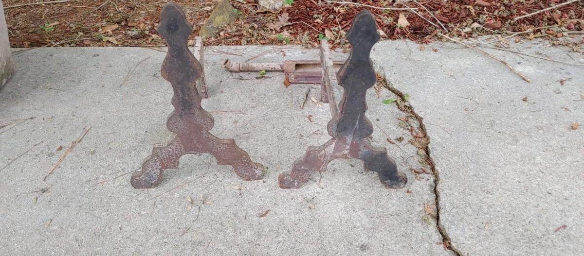 #103 Primitive Cast Iron Fire Dogs found inside an old house on an old Plantation .AWSOME