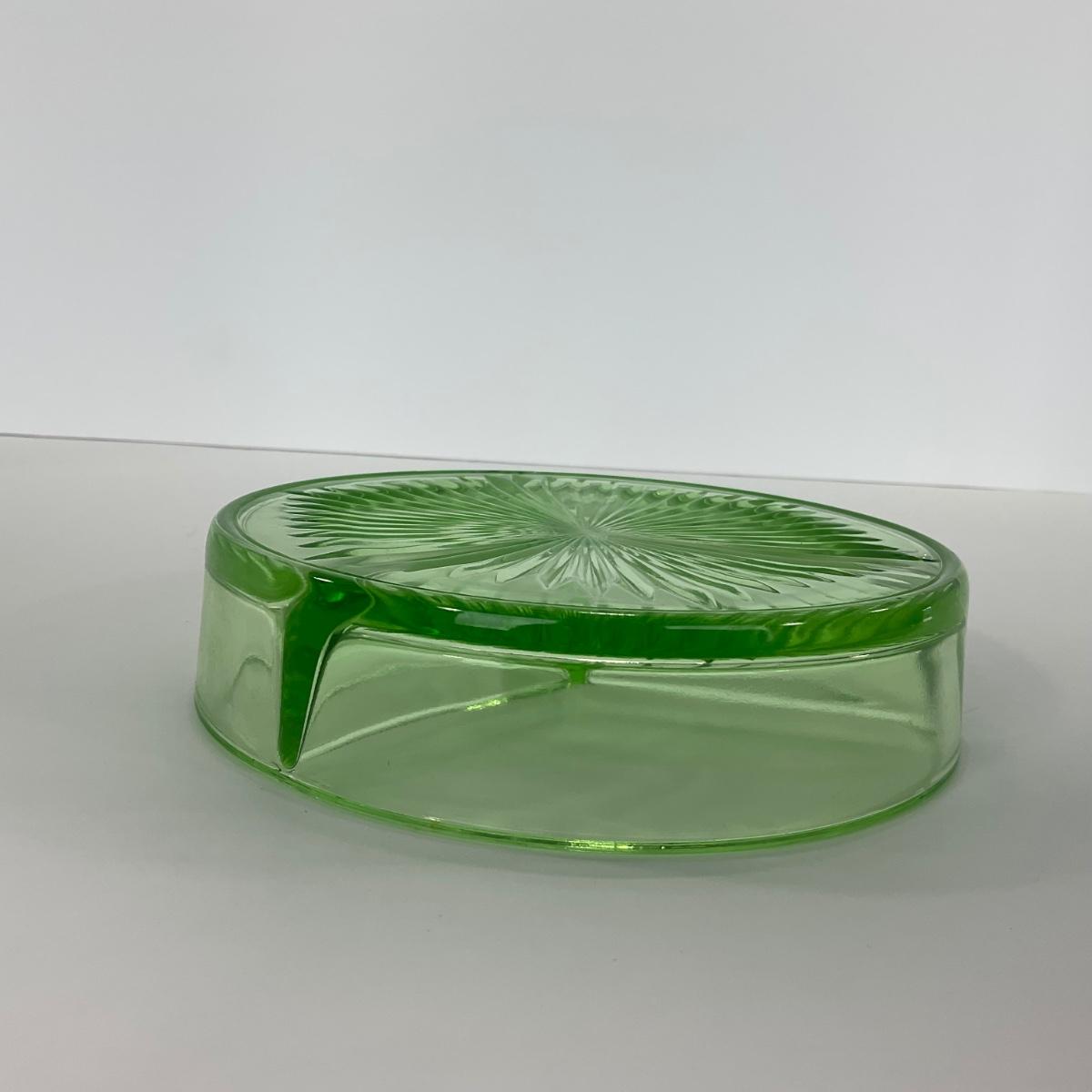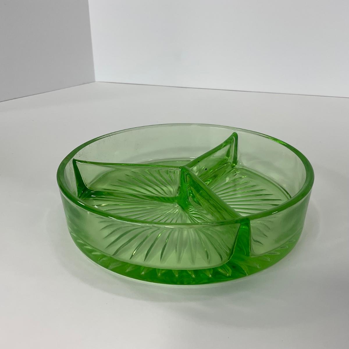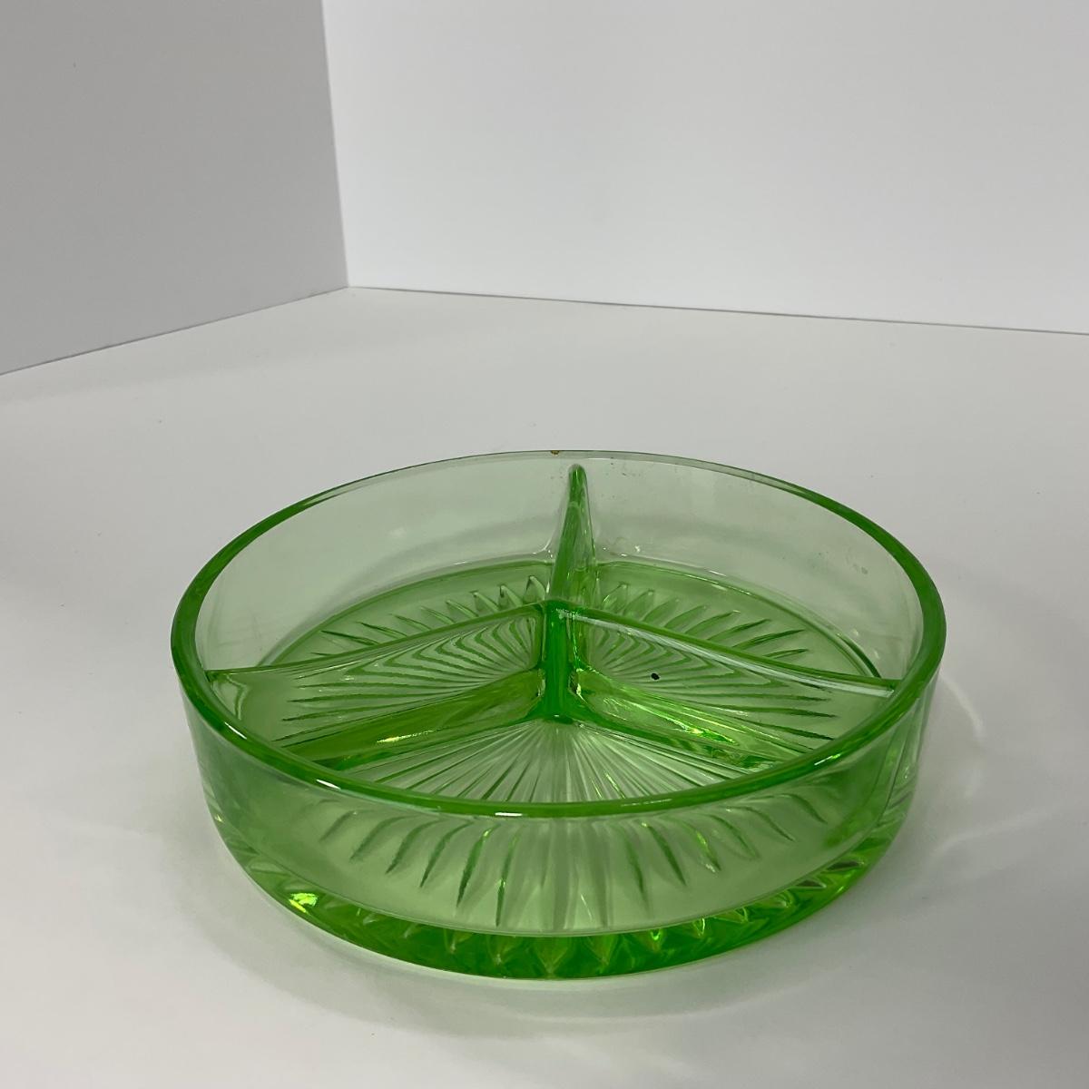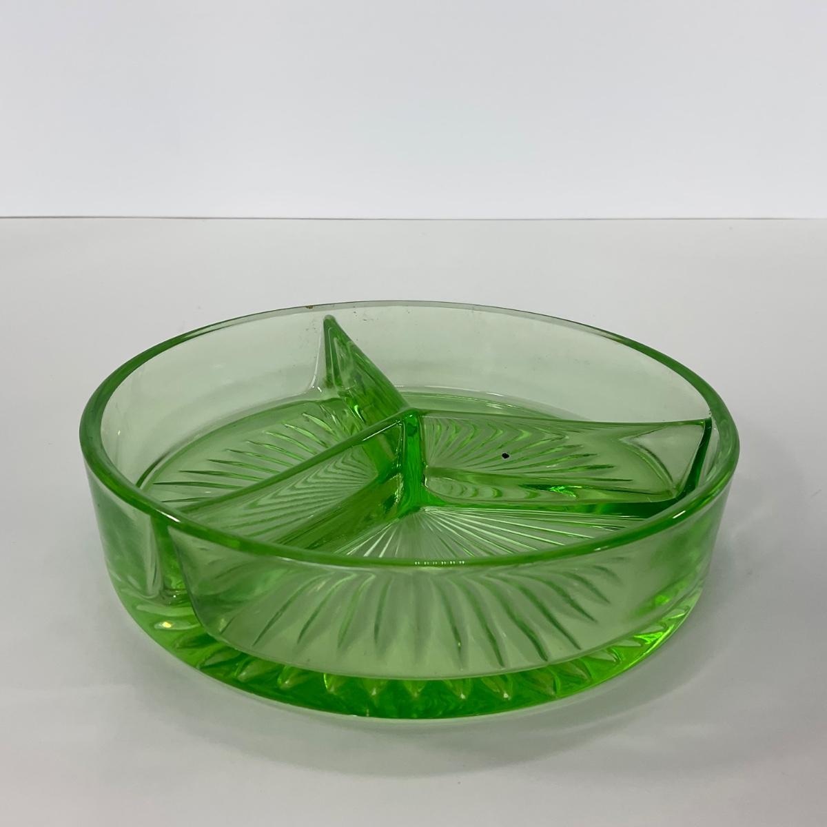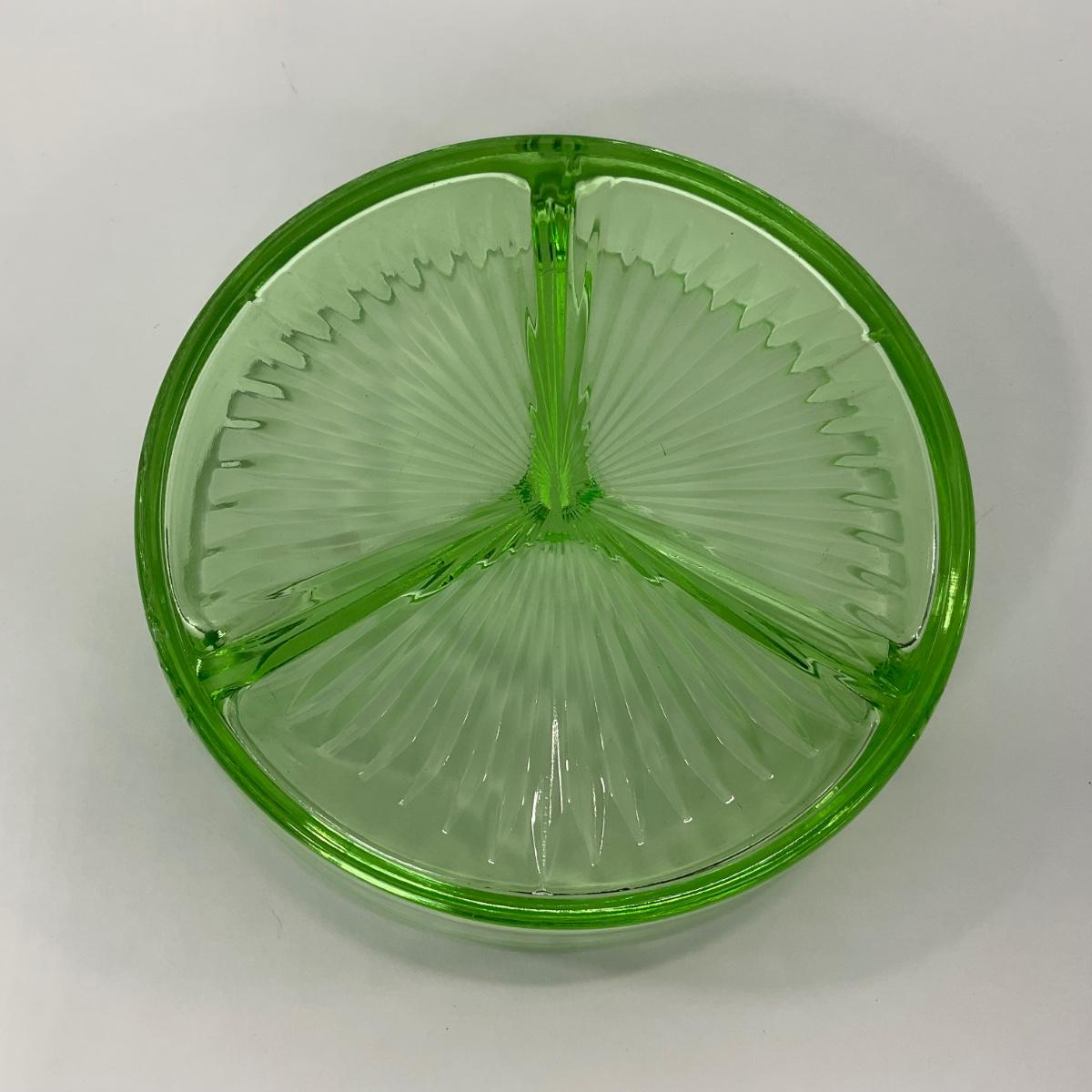 -103- URANIUM | Green Depression Three Part Divided Round Dish