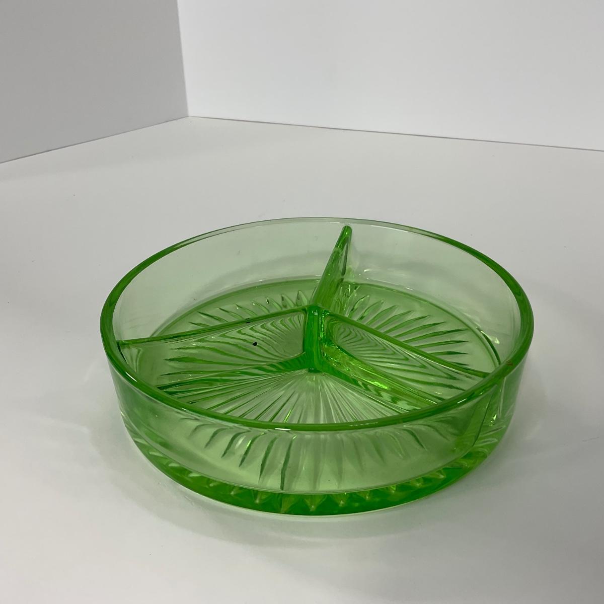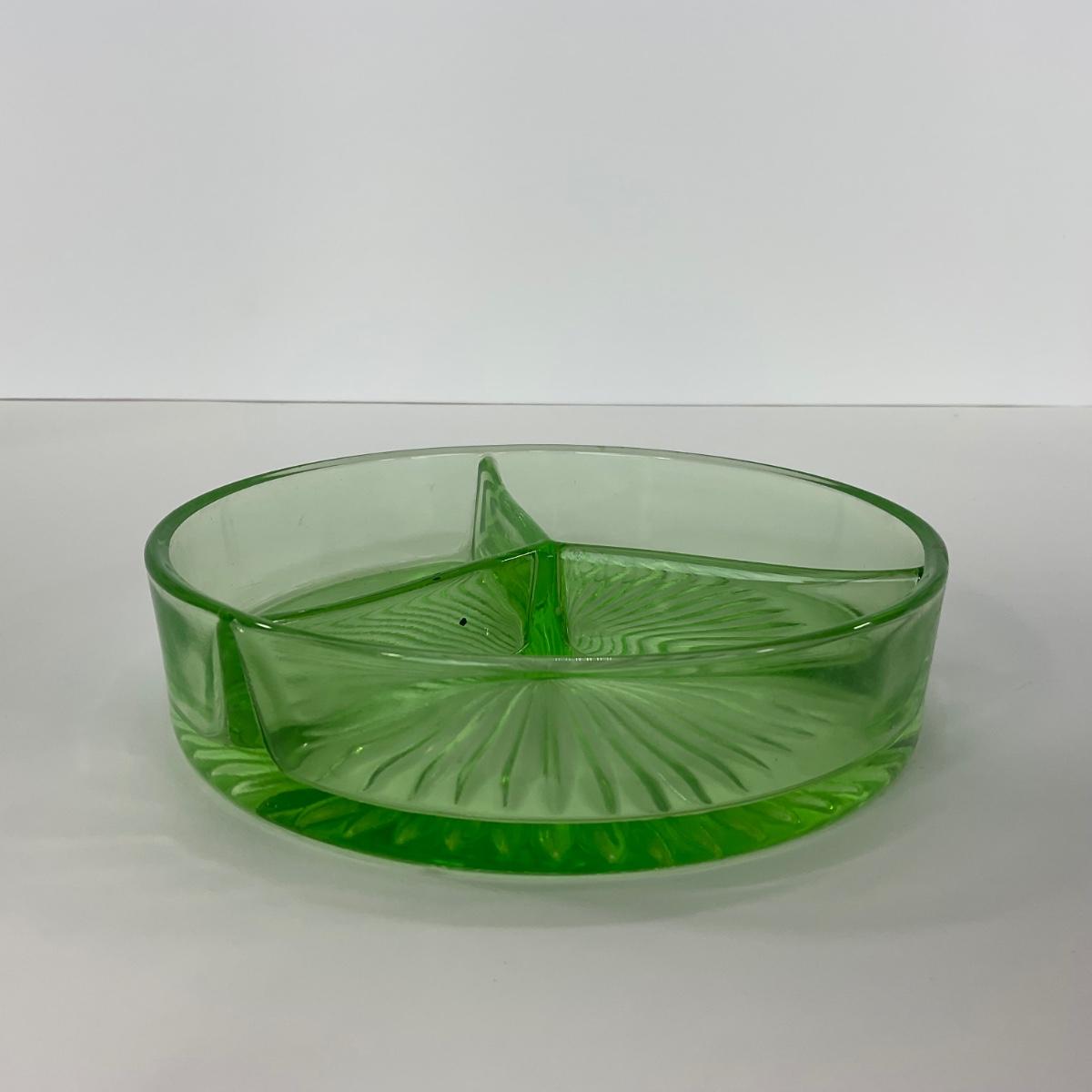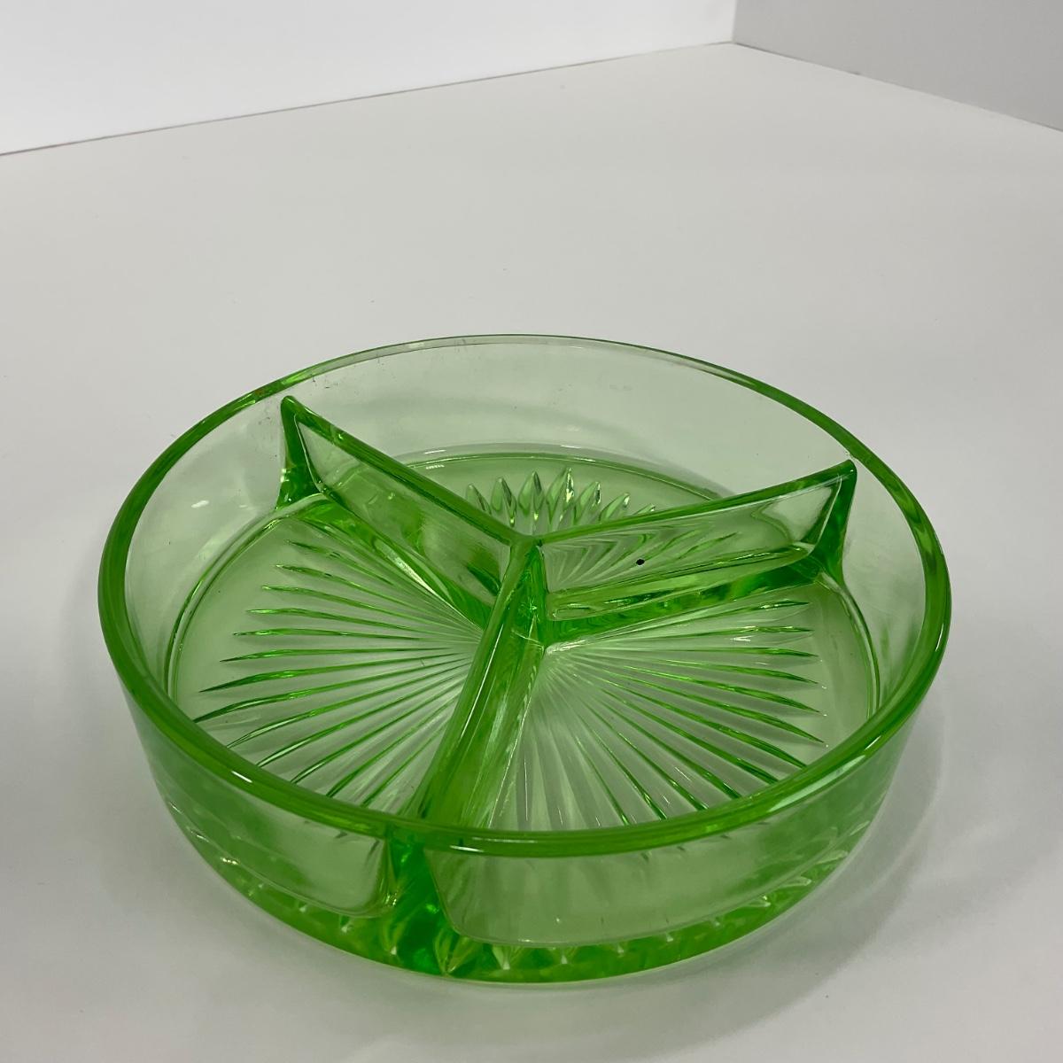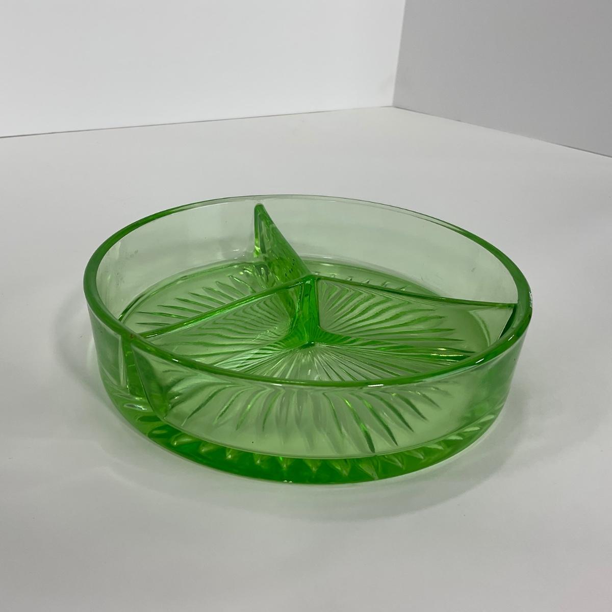 -103- URANIUM | Green Depression Three Part Divided Round Dish