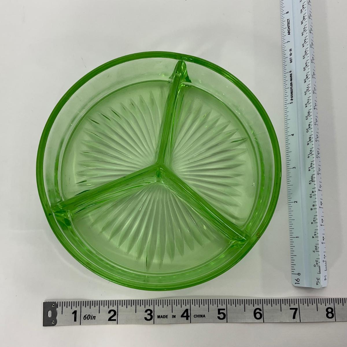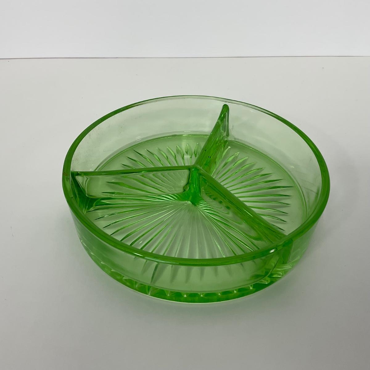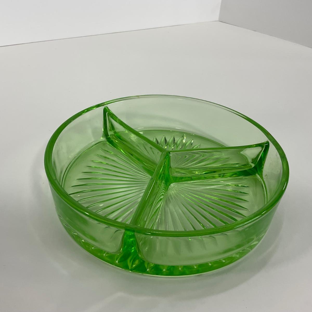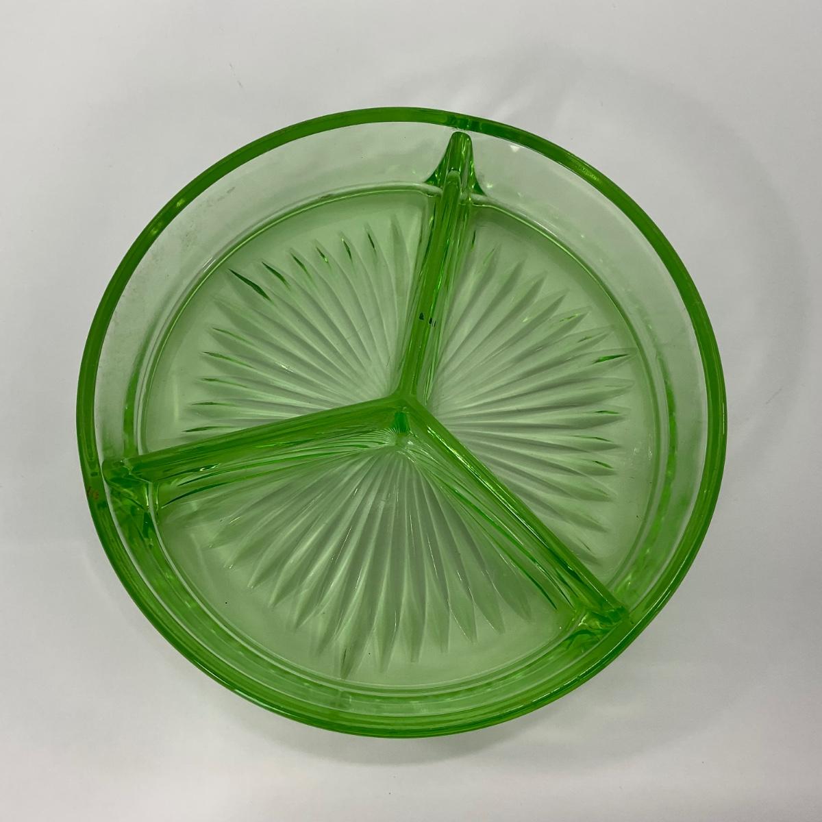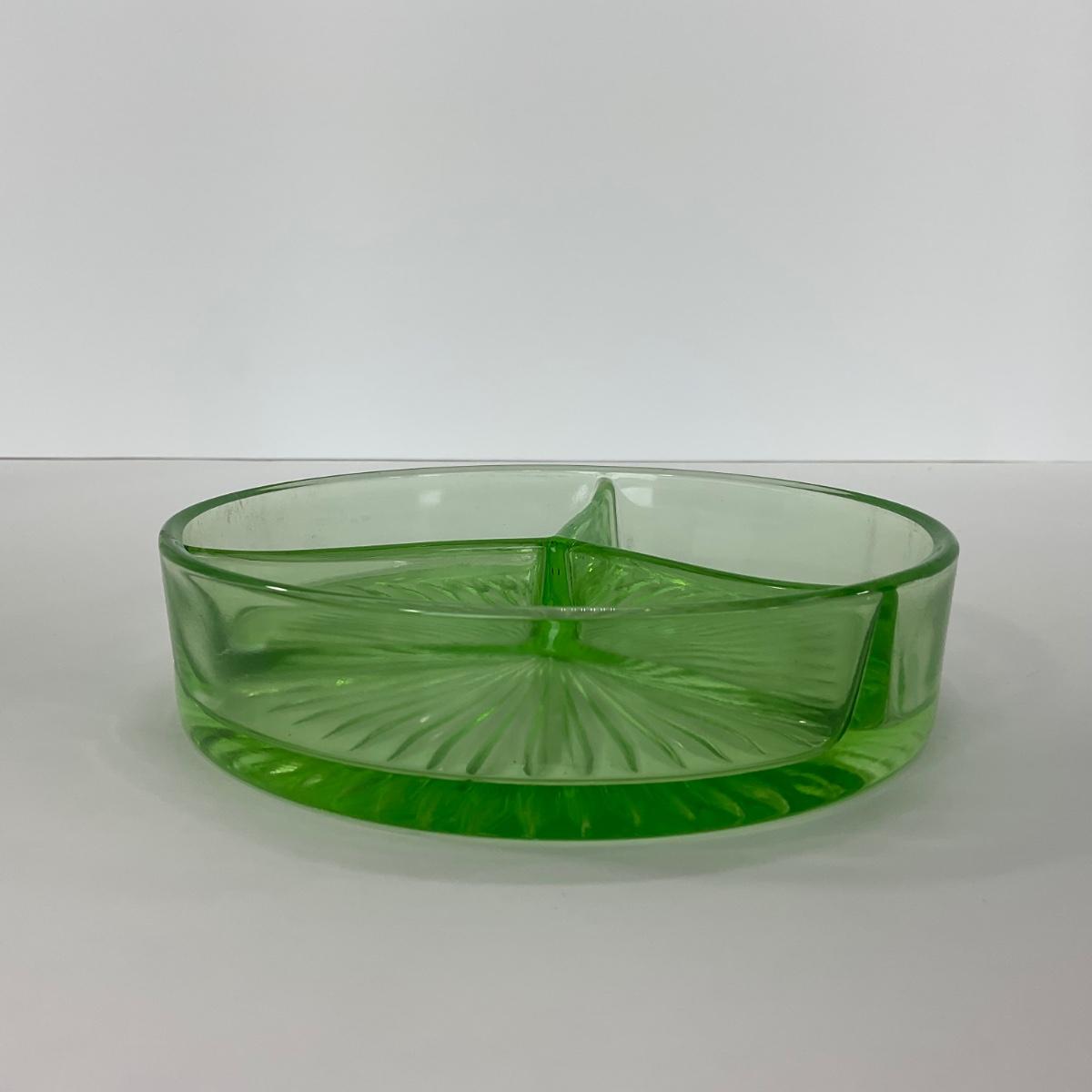 -103- URANIUM | Green Depression Three Part Divided Round Dish