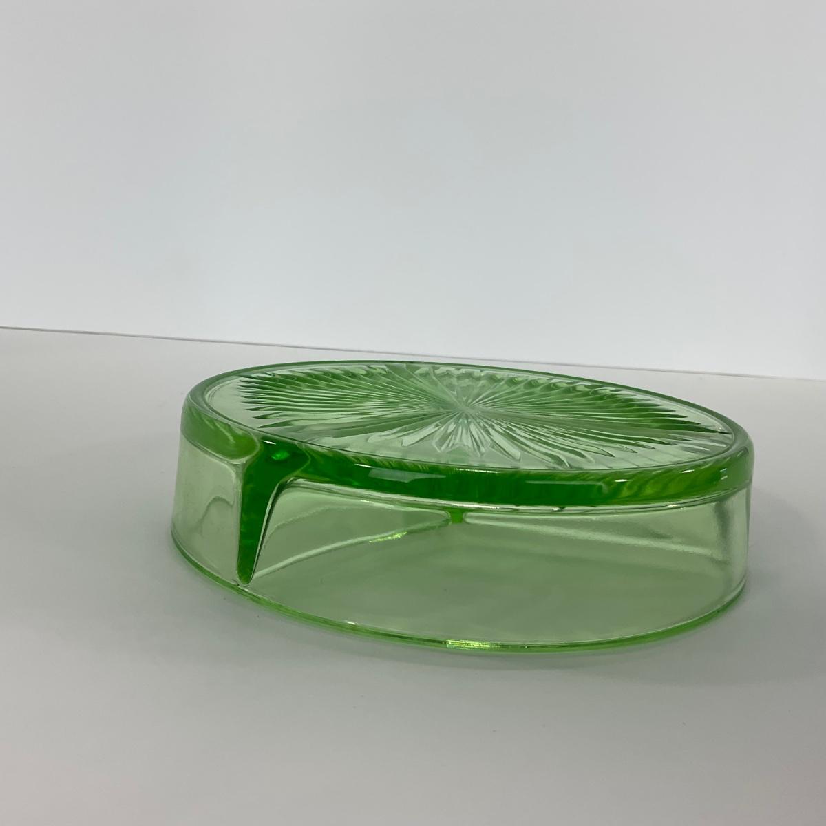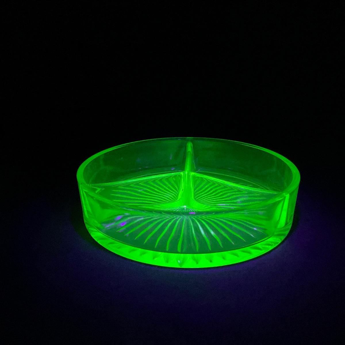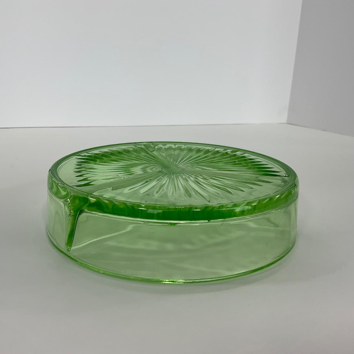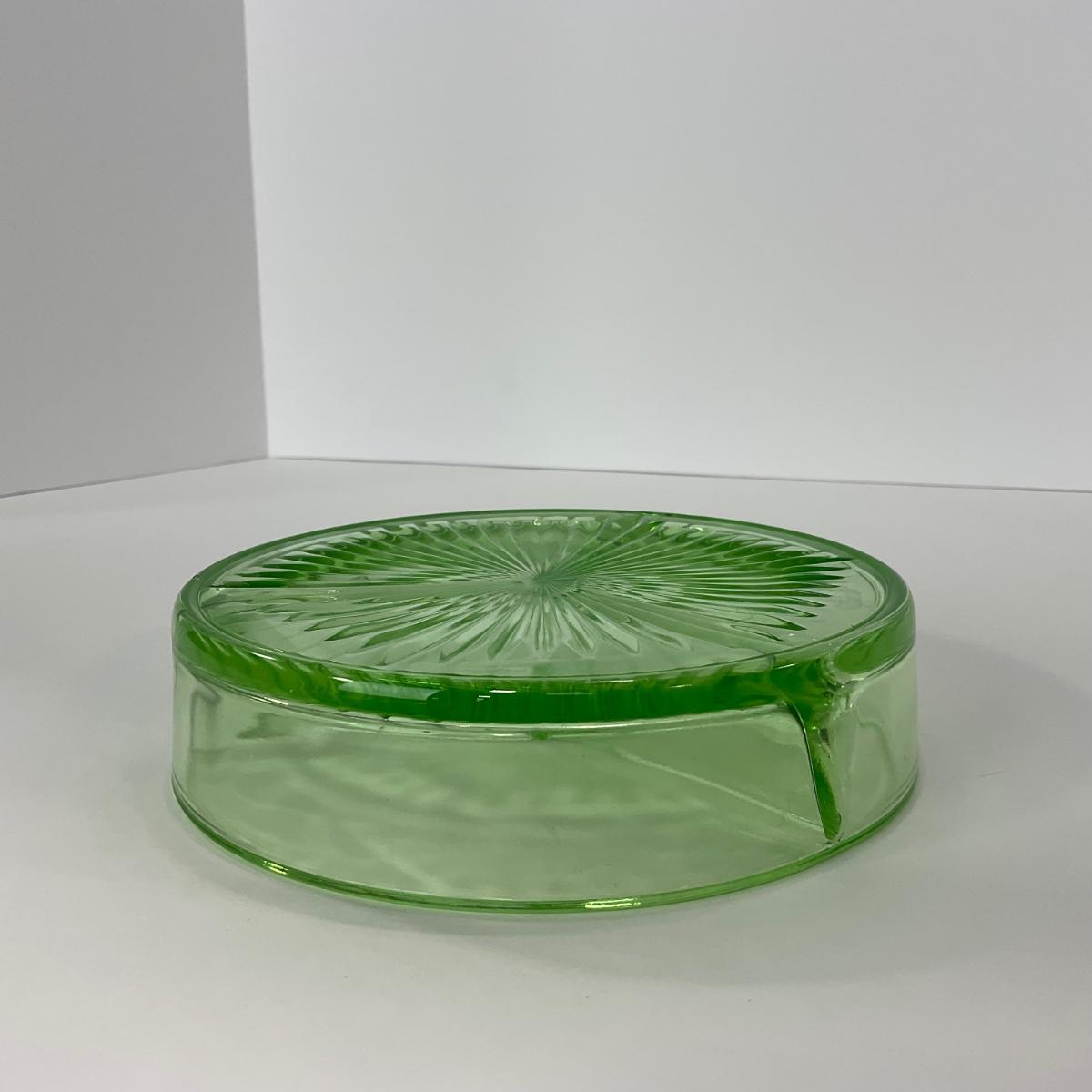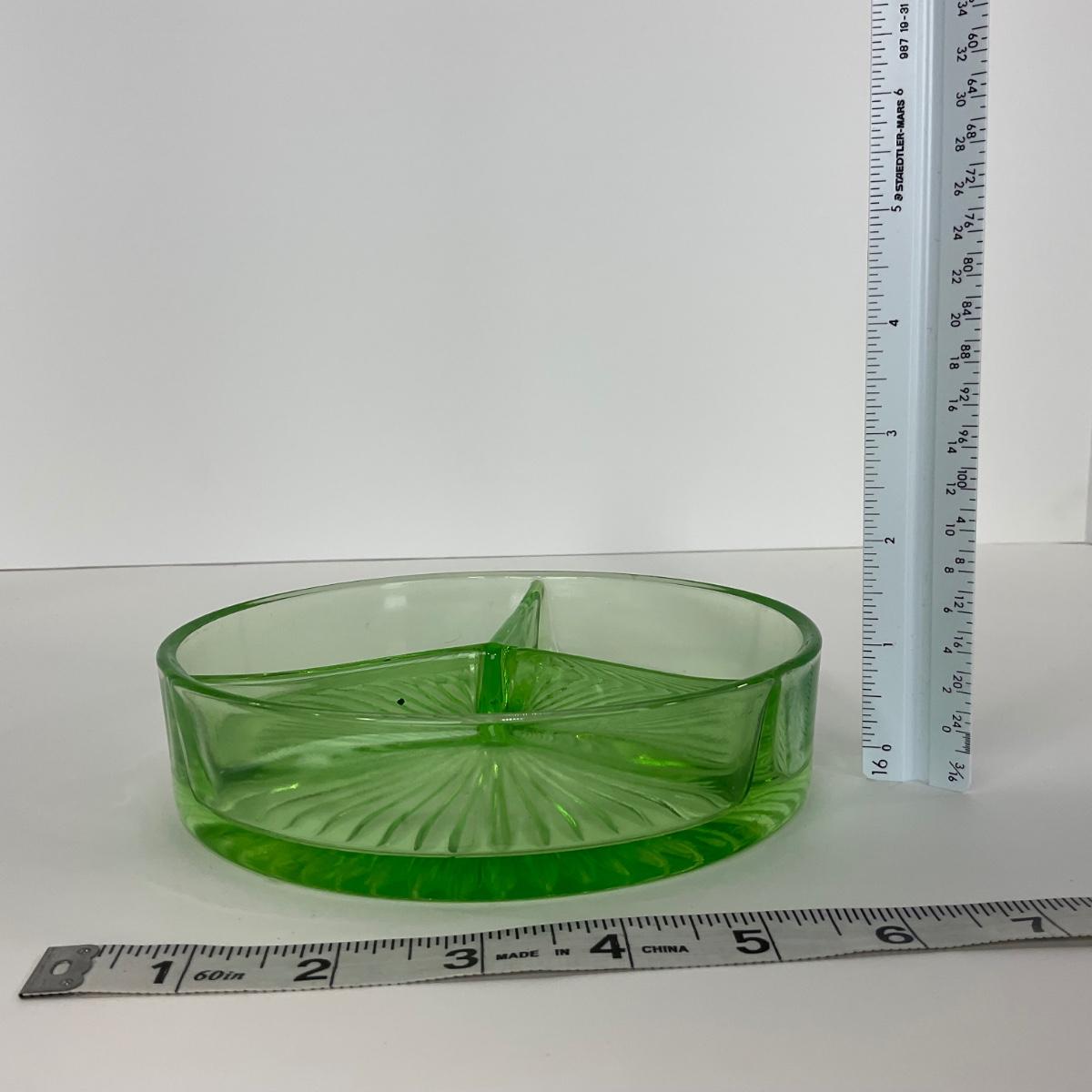 -103- URANIUM | Green Depression Three Part Divided Round Dish