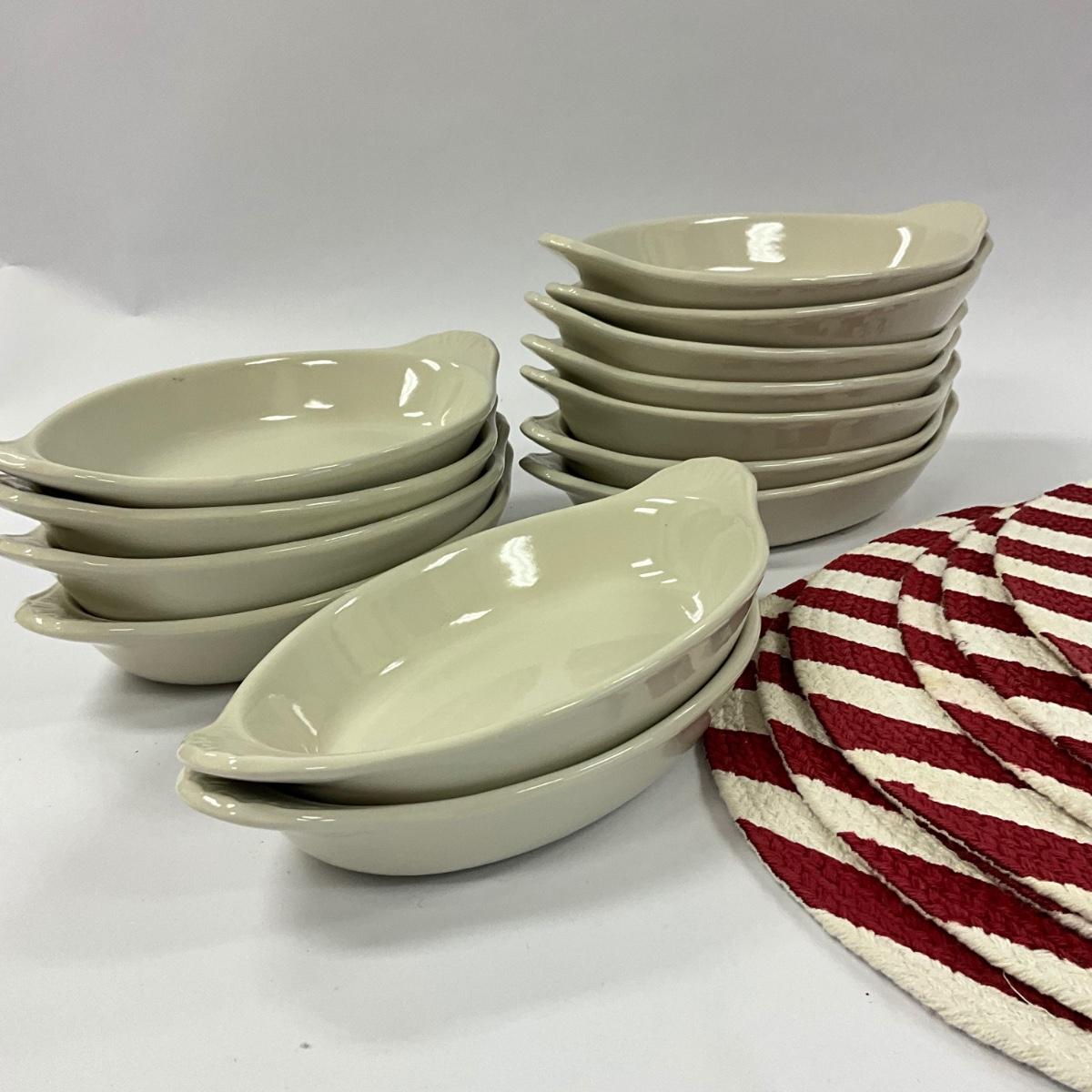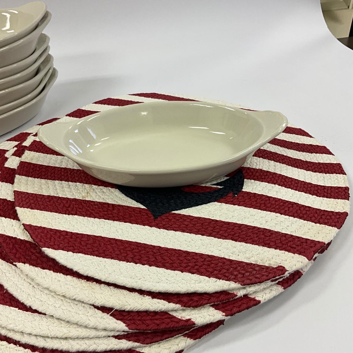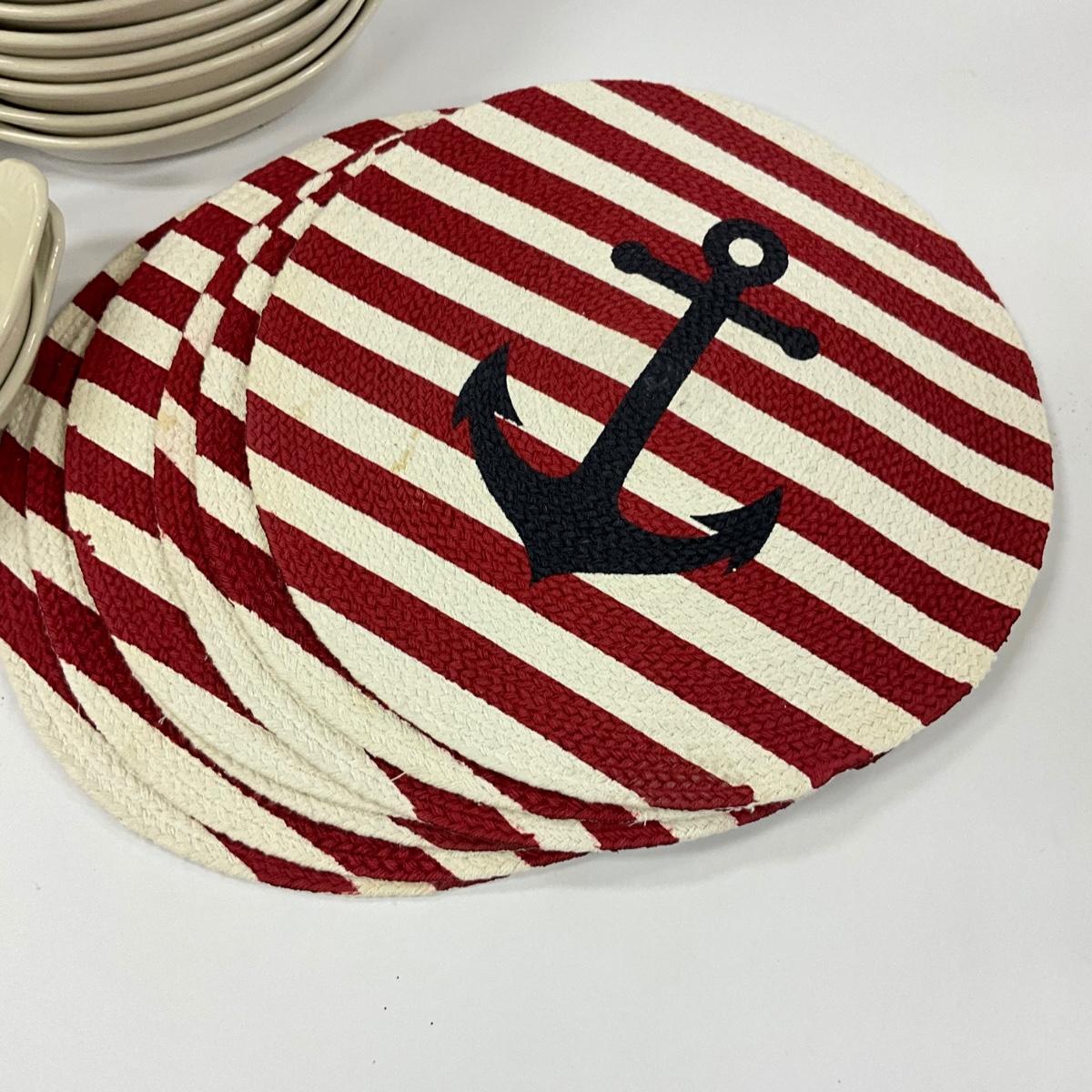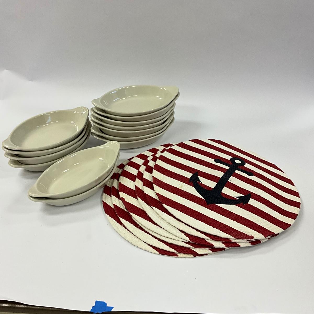 1032 Set of 13 Gratin Hall Ironstone Dishes with Anchor Placemats