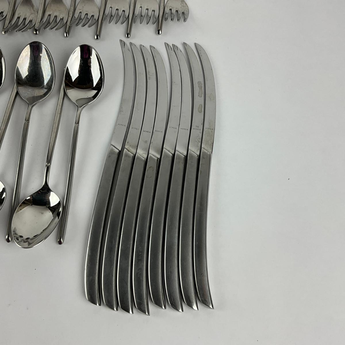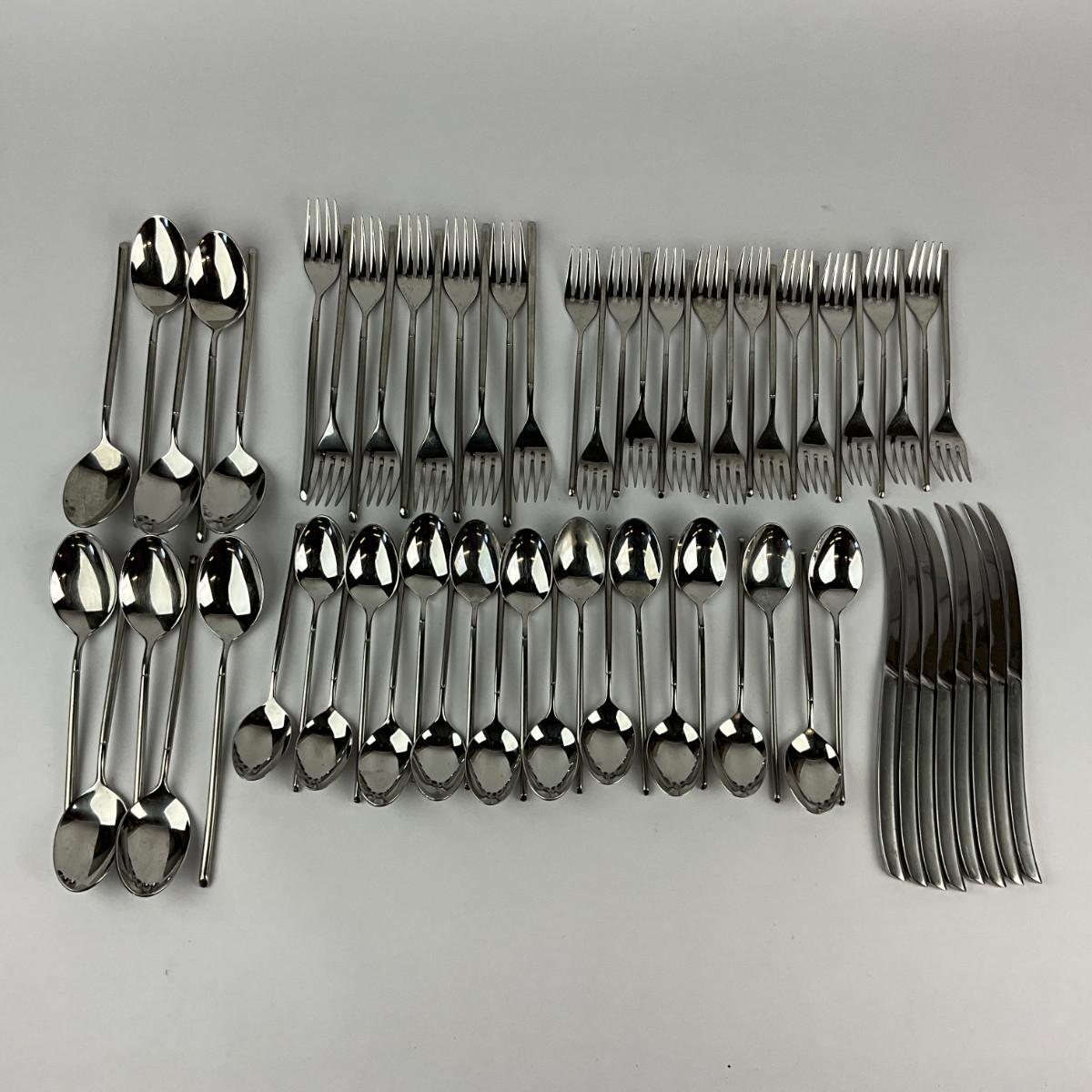 10 forks, 18 salad forks, 20 tea spoons 10 table spoons 8 knives